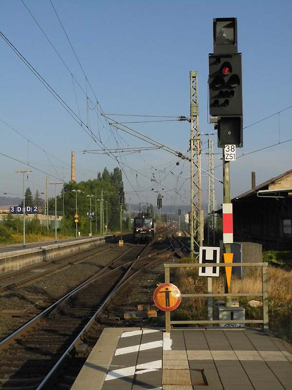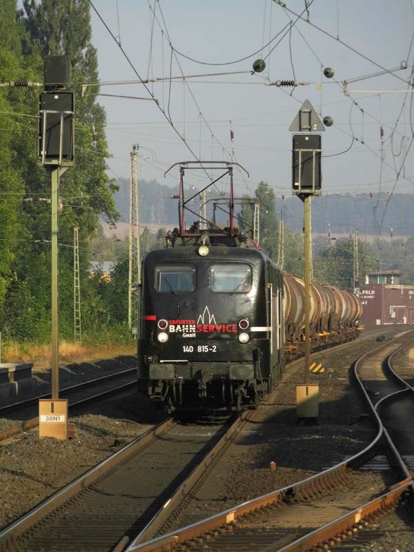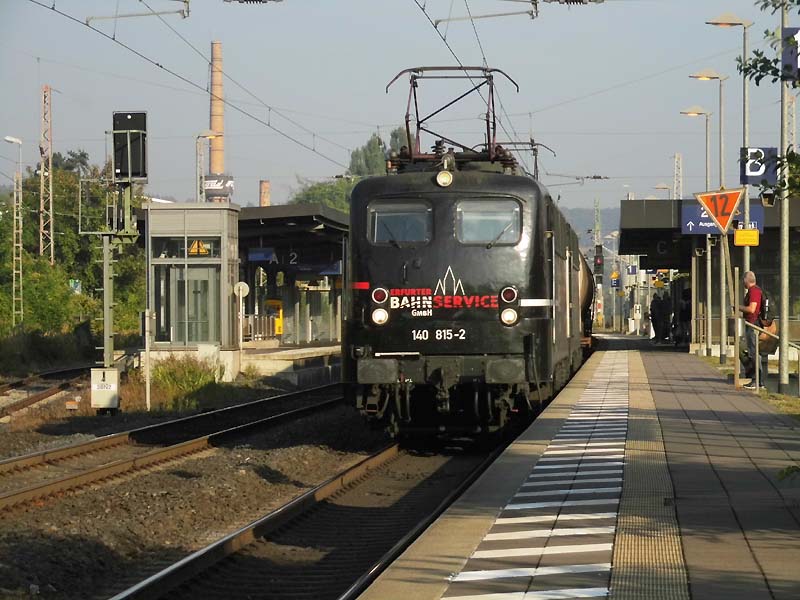 Nun musste aber Gleis 1 wieder freigemacht werden, denn der RE2 nach Hannover sollte am dortigen Bahnsteig halten. Also ziehen 140 815 und 140 811 hurtig die leeren Kesselwagen aus dem Bahnhof, um gleich auf die richtige Seite in Richtung Göttingen zu wechseln. Quelle:/Fotos: Thomas Förster | |
