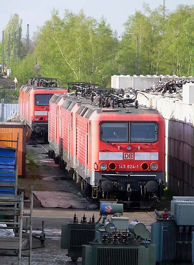 Bender-Update, 11.04.2011 143 022 ++ 11.04.2011143 824 ist auch bald dran – zuvor scheinen aber erst einige kleinere Transformatoren (im Vordergrund) in ihre Bestandteile zerlegt zu werden (vor allem das begehrte Kupfer …) Quelle:/Fotos: Markus Tigges | |
