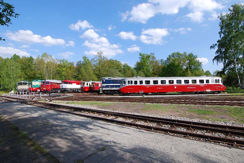 Die Exposition stellt alle bekannte Dampf-, Diesel- und Elektrische-Baureihe ehemalige CSD – Tschechoslowakische Staatsbahn vor. Zu sehen sind da auch verschiedene Teile, wie Dieselmotor, Achsen usw. Weil klassischen Nostalgiefahrten sind in Tschechien immer noch nicht möglich, bereit Museum für diese und nächste Wochenende (16./17. und 23./24. Mai) kurze Rangierenfahrten mi Dampflokomotive 354.195 und 414.096. Die erste wurde im 1925 gebaut für CSD und erst im 1978 abgestellt und ab 2004 ist wieder betriebsfähig. Diese Lokomotive kann interessieren auch für Österreicher und Polen, weil Grundstein diese Baureihe war in österreich-ungarn Monarchie, wo wurde als Baureihe 629 K.k.St.B. konstruiert und später beu ÖBB als 77 und in Polen bei PKP als OKm 11 gefahren. Dampflokomotive 414.096 mit Spitznamen Heligon wurde schon 1906 in Maschinen-Fabrik Staatseisenbahn-Gesellschaft, Víde?, (StEG) wie Baureihe 73 österreichische K.k.St.B. gebaut. Seit September 2019 ist wieder betriebsfähig. Diese Baureihe fuhr nach 1918 in vielen europäischen Staaten, nicht nur in Tschechoslowakei und Österreich, sondern auch in Polen (als Tp 15), Rumänien, Italien und ehemaligen Jugoslawien.