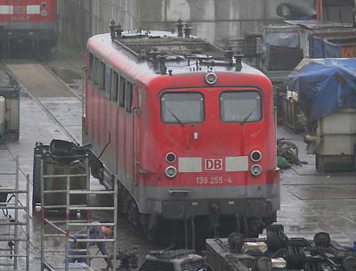 Bender, 28.09.2010 Nun ist auch der dritte Sechsachser, die 151 044, endgültig zerlegt. Auch hier gehen die Drehgestelle als Ersatzteile zurück an die DB.151 044 ++ 27.09.2010 Als nächste steht 139 255 an, um die sich heute (28.09.) gekümmert wurde – Dachaufbauten inkl. Stromabnehmer wurde abgenommen und seitlich wurde das Trafoöl abgelassen. Bei dem miesen Wetter regnets zwar von oben rein, interessiert aber keinen mehr ….. Quelle:/Fotos: Markus Tigges, 28.09.2010 | |