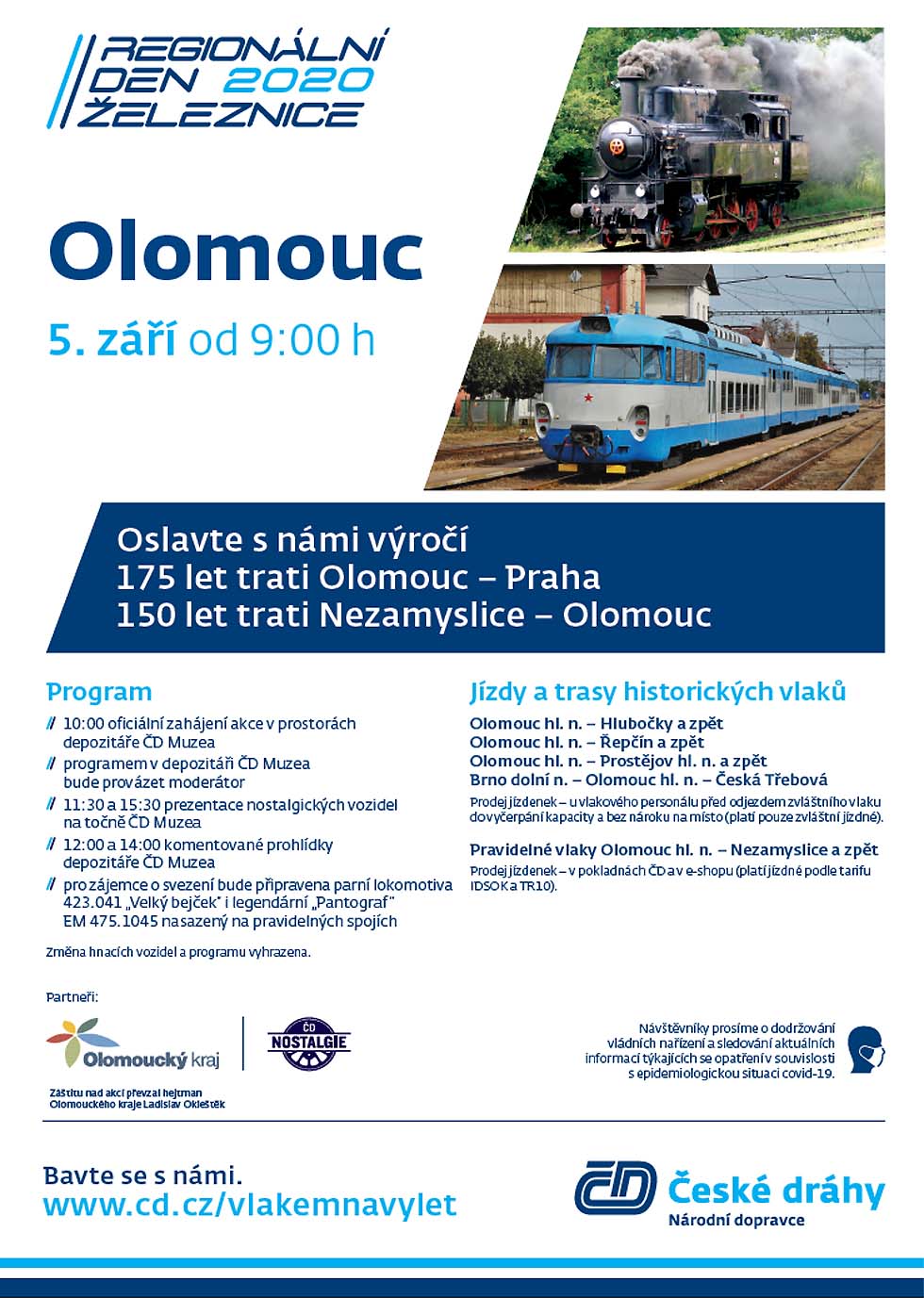 Am ersten Samstag im September findet in Olomouc der traditionelle Regionale Eisenbahntag statt. Das diesjährige Gedenken an den Tag der Eisenbahner wird anlässlich der Jubiläumsfeierlichkeiten der Linien Olomouc - Prag und Olomouc - Nezamyslice stattfinden. Neben einem Besuch im CD-Museum, in dem Führungen durch das örtliche Depot oder eine Ausstellung mit Eisenbahnmodellen vorbereitet werden, können sich Interessierte auch auf Fahrten mit historischen Zügen freuen. Gleichzeitig wird ein Sonderzug auf der Strecke Brno - Olomouc - Ceska Trebova verkehren. An diesem Tag wird auch der legendäre 'Pantograph' eingesetzt. Der Regional Railway Day am Samstag in Olomouc erinnert an zwei Jahrestage. Die Eisenbahn Olomouc - Prag feiert 175 Jahre und Nezamyslice - Olomouc 150 Jahre. Das Feierprogramm zum Tag der Eisenbahner beginnt um zehn Uhr morgens, wenn die Veranstaltung im CD Museum in Olomouc-Hodolany offiziell eröffnet wird. Tagsüber gibt es Führungen, Präsentationen nostalgischer Fahrzeuge auf dem Plattenteller oder eine Ausstellung von Eisenbahnmodellen. Liebhaber nostalgischer Fahrten kommen auch auf ihre Kosten. Vom Hauptbahnhof Olomouc fahren Sonderzüge nach Hlubocky, Repcín und Prostejov. Sie werden von der Dampflokomotive 'Velky bejcek' (423.041), den historischen Triebwagen 'Hurvínek' (M131.101) und 'Verak' (M120.417), der Lokomotive 'Pilstyk' (T466.0007) und der Elektrolokomotive 'Bobina' (E499.085) geführt. Um 8:10 Uhr fährt auch ein Sonderzug vom unteren Bahnhof in Brno ab, der kurz vor 10 Uhr in Olomouc ankommt und nach der Veranstaltung um 17:00 Uhr weiter nach Ceska Trebová fährt. Die große Attraktion dieses Zuges wird der Einsatz der slowakischen Elektrolokomotive 'Gorilla' (ES499.0002) sein. Am Samstag erscheint auch der legendäre 'Pantograph' (EM 475.1045) auf den Gleisen, die auf regulären Fahrten von Olomouc nach Nezamyslice und zurück eingesetzt wird. Lage des CD-Museums: Wenn Sie durch die Unterführung unter dem Hauptbahnhof in Olomouc fahren, der in den Bezirk Hodolany mündet, befindet sich der Eingang zum Museum auf der linken Seite hinter dem Depot-Tor. Ein detailliertes Programm des regionalen Eisenbahntages in Olomouc mit Fahrplänen für Sonderzüge und Informationen zu Fahrkartenpreisen finden Sie auf der Website der Tschechischen Eisenbahnen unter www.cd.cz/vlakemnavylet. Der Tag der Eisenbahn erinnert an den 27. September 1825, als die Dampflokomotive des Erfinders Georg Stephenson auf einer 40 km langen Strecke zwischen den englischen Städten Stockton und Darlington in Betrieb genommen wurde. Es war eine revolutionäre Veränderung, die Pferdekutschen ersetzte, der Bau von Gleisen begann und der Transport von Gütern und Passagieren auf der Schiene startete seinen Siegeszug. Die erste Eisenbahn erschien 1832 auf unserem Territorium, als die erste Pferdekutsche zwischen Linz in Österreich und Ceske Budejovice gebaut wurde. Der erste Dampfzug kam dann vor 179 Jahren - 1839 - von Wien nach Breclav und anschließend auch nach Brno. Quelle:/Fotos: Ceske drahy, a.s. | |