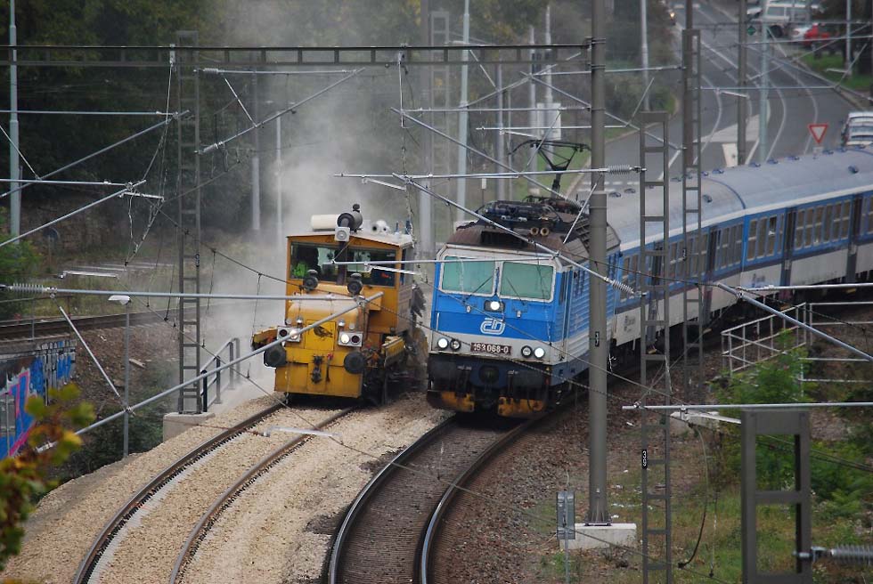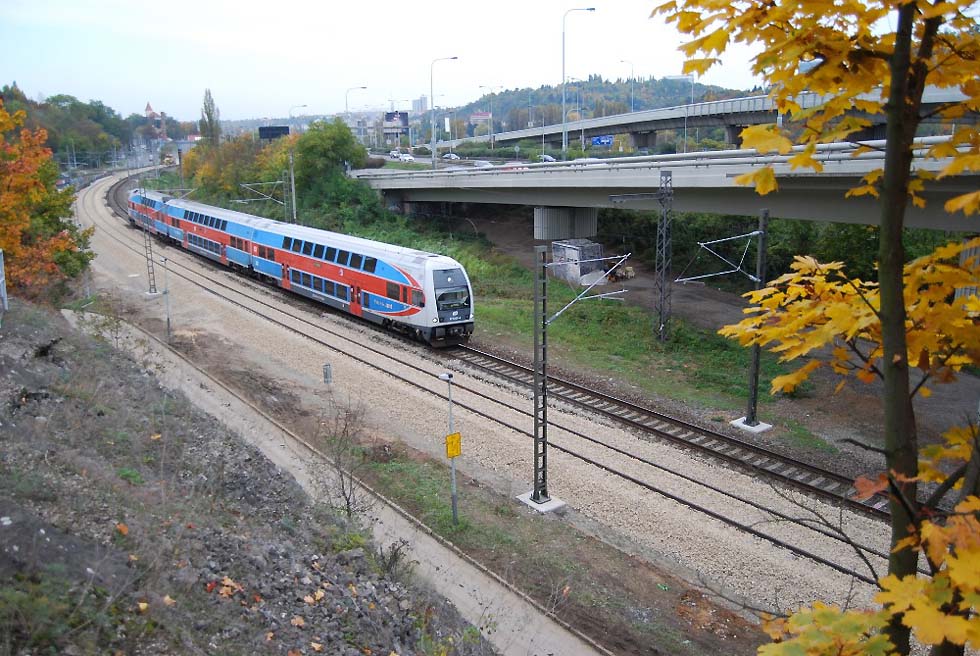 Die 39 Kilometer lange Strecke zwischen Praha-Smíchov und der Bezirksstadt Beroun ist zweigleisig, elektrizifiert (3 kV DC) und mit alten elektromechanischen Stellwerken an den Bahnhöfen ausgestattet. Die Strecke führt durchs Berounka-Tal - ein stark besiedeltes Gebiet mit großer touristische Bedeutung (beliebte Wander- und Radwege so wie Sehenswürdigkeiten wie Burg Karlstejn). Die Strecke ist z.Z. mit über 200 Zügen pro Tag und mit einem 10-Minuten-Spitzentakt für die S-Bahn auf einigen Abschnitten schon jetzt überlastet. Das Modernisierung der Strecke deshalb kompliziert. Auf der ersten Etappe laufen derzeit Bauarbeiten seit 2019 und bis 2022. Modernisiert wird die 9 Kilometer lange Strecke in Prag von Praha-Smíchov (exklusiv) bis Praha-Radotín (inklusiv) von der Gesellschaft „Cernosice“, eine Gruppe von EUROVIA CS, STRABAG Rail, GJW Praha und EZ Praha. Dieser Teil einschließlich eines kurzen viergleisigen Abschnitts von Velká Chuchle nach Radotín, wurde bislang als zwei parallelen Strecke geführt. Nach den Baurbeiten wird dieser Teil mit einem Abzweig dann wie eine klassische viergleisige Strecke betreeben. Ein neuer Abzweig „Berounka“ wird auch im Dorf Mokropsy an der Haltestelle Cernošice-Mokropsy in einer weiteren Bauetappe (2024-2026) etabliert. Vom Abzweig Berounka bis zum Bahnhof Karlstejn gibt es eine weitere ca. 15 Kilometer lange Bauetappe (2023-2026). Dort werden vier Bahnhöfe und eine Haltestelle modernisiert. Die Bahnhöfe Dobrichovice und Revnice bekommen neu konzipierte Wendegleise für die S-Bahn, so dass der 10-Min-Takt in Zukunft bis Dobrichovice führen kann. Ein großes Bauwerk in dieser Etappe wird der Ersatz der 168 Meter langen Berounka-Brücke aus dem Jahr 1911 durch eine neue Konstruktion. In einer weiteren Bauetappe wird 2022-2024 der Abschnitt Karlstejn – Beroun modernisiert. Die modernisierte Strecke Praha – Beroun wird an allen Bahnhöfen und Haltestellen mit 200 Meter langen Bahnsteigen mit 550 mm Höhe ausgestattet. Auf der Strecke werden ESTW angelegt, die von der Zentrale (CDP) in Prag gesteuert werden. Die Oberleitung wird für einen Wechsel auf 25 kV 50 Hz AC vorbereitet und die höchste Geschwindigkeit von 100 km/h auf 140 km/h erhöht. Wegen der Überlastung der Strecke und den Plänen eines verkürzten S-Bahn-Takts, hobt es schon jetzt Pläne zwischen Praha und Beroun eine parallele NBS zu bauen. Die ca. 26,3 Kilometer lange Strecke soll 2028-2035 gebaut werden. Aufgrund der starken Besiedlung und NSG im Berounka-Tal wird die Strecke mit einem 24,7 Kilometer langen Tunnel geplant, der mit zwei Tunnelröhre in TBM-Methode gebaut werden soll. Der Tunnel wird in Prag in den Bahnhof Praha-Smíchov führen und kurz vor dem Ende ist eine Abzweigung für den Güterverkehr in Richtung Paha-Krc konzipiert. Die NBS ist für 200 km/h projektiert und die Reisezeit Praha-Smíchov – Beroun soll künftig dann 12 Minuten betragen. Heute fährt ein Schnellzug 32 Minuten. Die Reisezeit von Praha-Smíchov bis nach Plzen wird sich von derzeit 1 St. 8 Minuten auf dann 44 Minuten verkürzen. Sprava zeleznic (Tschechischer Netzbetreiber) plant auch weitere Modernisierung der alten klassische Böhmischen Westbahn Praha – Fuhrt im Wald von Plzen bis zur Staatsgrenze. Von Plzen bis Staatsgrenze sind für Jahre 2022 bis 2029 drei Bauetappen (Plzen – Stod, Stod – Domazlice, Domazlice – Grenze CZ/D) vorgesehen. Zwischen Plzen und Domazlice wird eine NBS (zweigleisig, elektrifiziert 25 kV 50 Hz AC) bis 200 km/h projektiert, die Strecke von Domazlice bis nach Grenze wird modernisiert und auf eine Höchstgeschwindigkeit von 115 km/h adaptiert. Auf die Bahn von Praha nach Plzen und Cheb fahren Express-Züge nach München und Cheb. In der Geschichte war diese Strecke die wichtigste Strecke von Tschechien (Tschechoslowakei) in den Westen mit Zielbahnhöfen z.B. in Zürich, Nürnberg, Stuttgart, Frankfurt oder Paris. Die Fotos von Baurbeiten wurden zwischen Bahnhof Praha-Smíchov und Abzweig Barrandov in August und Oktober gemacht.