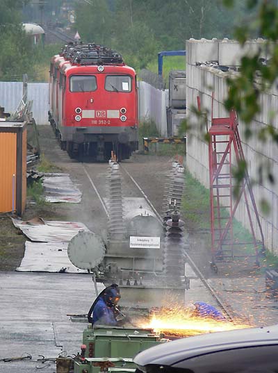 Bender, 06.07.2011110 426 ++ 04.07.2011 Nachdem 110 426 Mo/Di zerlegt wurde, steht heute Morgen die 110 352 als nächste an. Wird aber noch was dauern, da wieder andere Kleinteile zur Zerlegung anstehen ... Quelle:/Fotos: Markus Tigges | |