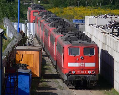 Damit wird der Blick frei auf den schweren 6-Achser in Form von 151 010, die als nächster zur Zerlegung ansteht.