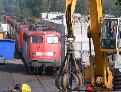 Bender, 04.09.2010Die ehemalige Braunschweiger 110 505 hat den Vollstrecker und damit das sichere Ende ihrer über 40-jährigen Einsatzzeit vor Augen, aufgenommen am 04.09.2010. Dahinter steht mit 151 010 nach 151 054 (1999, Unfall), 151 120 (2003, Unfall) und 151 137 (2008, ausgebrannt) die vierte 151 an, die beim Bender zerlegt wird ! Allerdings ist 151 010 die erste regulär ausgemusterte, die in Opladen verschrottet wird. Quelle:/Fotos: Markus Tigges, 04.09.2010 | |