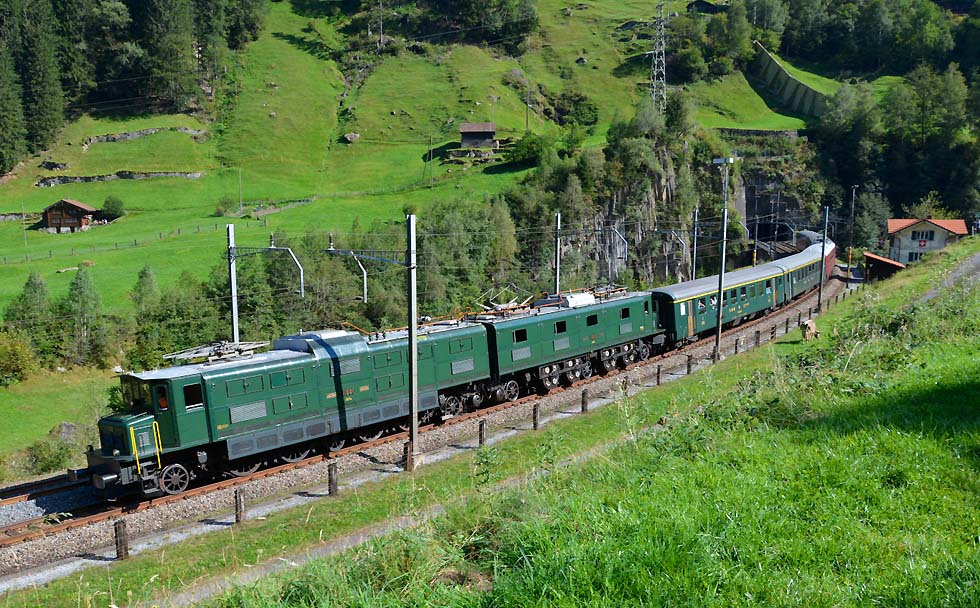 Unter der Regie von SBB Historic pendelten am Samstag bei Kaiserwetter zwischen Erstfeld und Göschenen die Extrazüge mit historischen Wagen im Einzelnen gezogen von Ae 6/6 11411 „Zug“, Ae 8/14 11801 und Ce 6/8 14253 „Krokodil“. Des weiteren wurde von Luzern kommend auch der RAe TEE II 1053 als TransEuropExpress „Gottardo“ eingesetzt. Unterwegs wurden die Extrazüge traditionell vom Wassener Fahnenschwinger Xaver Andermatt und seinen Freunden begrüßt. Außerdem fuhren planmäßig der saisonal von 1. Mai bis Ende Oktober verkehrende „Gotthard Panorama Express“ gezogen von Re 4/4 11200 (SBB) und im Stundentakt der „Treno Gottardo“ in Form von RABe 526 Traverso der Südostbahn (SOB). Umrahmt wurden die Gotthard-Bahntage von einer Fahrzeugausstellung, u. a. mit dem Rettungszug der SBB, Markt- und Infoständen, sowie Attraktionen für die ganze Familie in Erstfeld. Außerdem gab es noch im 57km langen Gotthard-Basistunnel das Tunnelerlebnis mit einer Schnellzugvorbeifahrt am mit Panzerglas gesicherten Tunnelfenster. Insgesamt waren die beiden Tage ein gelungener Auftakt und aufgrund der zahlreichen Besucher ein Anreiz für SBB Historic zu noch hoffentlich folgenden Gotthard-Bahntagen in den kommenden Jahren.