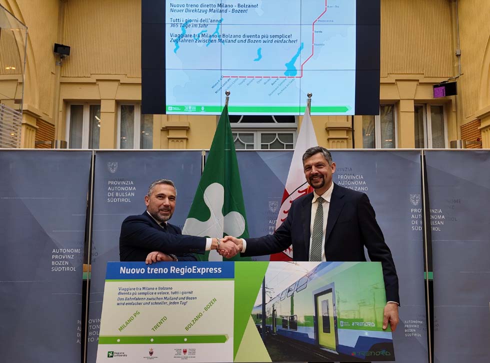 14.01.2025 Neuer RegioExpress Mailand-Bozen vorgestellt.. Regionen rücken zusammenSeit Mitte Dezember verbindet ein täglicher Zug Mailand und Bozen – Landesrat Daniel Alfreider und Assessor Franco Lucente (Lombardei) haben die neue Verbindung am 13. Jänner in Bozen vorgestelltSeit dem 15. Dezember fährt ein neuer RegioExpress-Zug, der moderne Caravaggio-Zug von Trenord, täglich vom... |