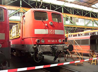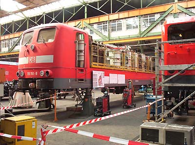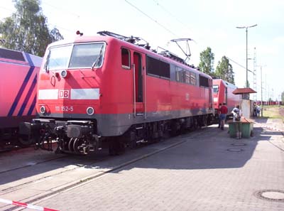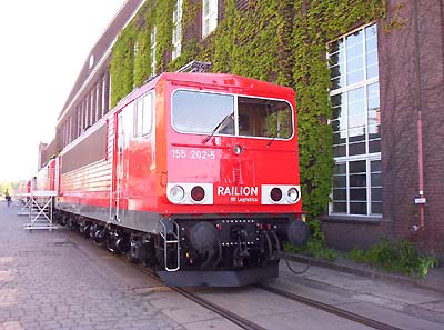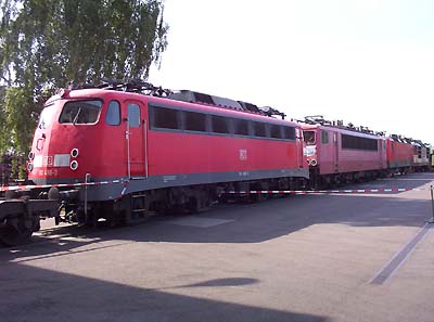 Am 10. Juni fand im AW Dessau ein Tag der offenen Tür statt. Zu sehen waren u.a.die 120 102, eine unbekannte 155, 151 145, 111 048, 151 151, 101 066, E44 044, 111 152, Fahrmotorprüfstand mit Motor von 151, 110 498 vor Halle und eine fast fertige 155 202. 110 498 steht mit einer 155 und weiteren Loks im AW-Gelände frisch lackiert und fast fertig: 155 202 111 152 E 44 044 101 066 Fahrmotorprüfstand mit Motor von 151 151 151 151 145 111 048 120 102 eine unbekannte 155