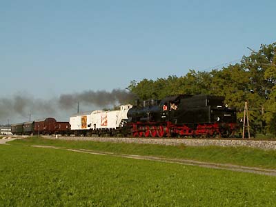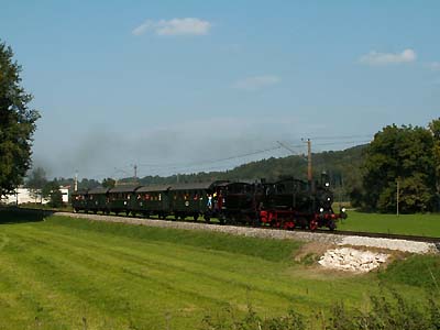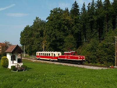 30. September / 01. Oktober 2006: Am 30.09. sowie am 01.10. fanden in Salzburg bei der Salzburger Lokalbahn die Feierlichkeiten zum 120 Jahr Jubiläum statt. Da am 30.09. fast alle Planzüge der SLB mit Nostalgiefahrzeugen gefahren wurden, besuchte ich natürlich auch dieses Fest. Neben den Planzügen standen auch einige Dampfsonderzüge sowie Fotogüterzüge auf dem Programm. Alles in allem war es ein sehr gelungener Tag, dem Team der SLB das für die Planung dieses Events verantwortlich war gebührt großes Lob! SLB E60 + B306 als Z30 bei Ziegelhaiden SLB E11 mit Z302 bei Acharting SLB 770.86 + 70 083 mit Sdz904 bei Pabing SLB ET6 + C158 + BC 109 als Z34 bei Acharting ÖGEG 657 2770 mit Z304 bei Pabing TAG7 mit Sdz906 bei Oberndorf SLB V83 mit Z305 bei Acharting SLB ET 58 + 57 + 56 + 55 als Z36 bei Acharting SLB ET33 als Z23 in Lamprechtshausen SLB ET32 als Z721 bei Bürmoos SLB ET10 + BCL 162 + CDF 116 als Z40 bei Pabing SLB ET33 als Z50 bei OberndorfText und Bilder: Robert Zirknitzer |