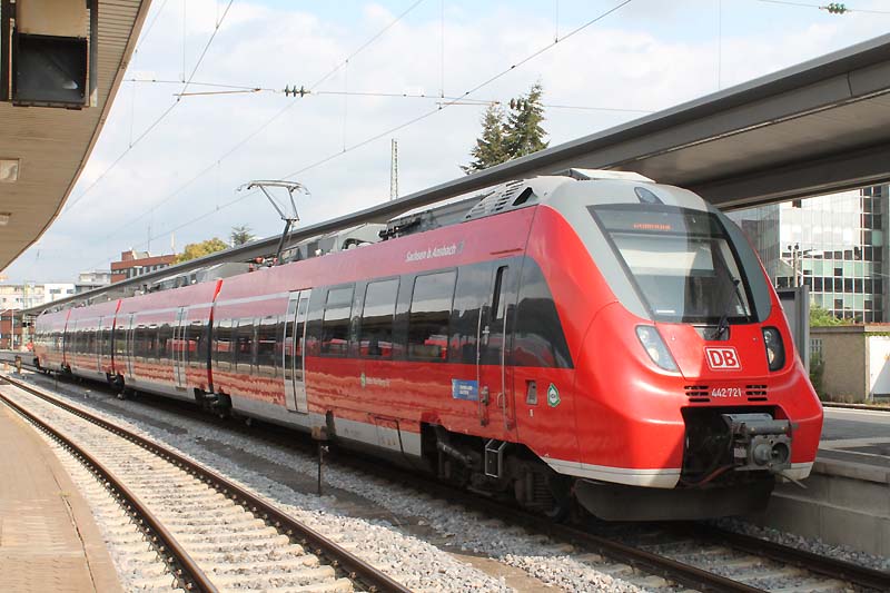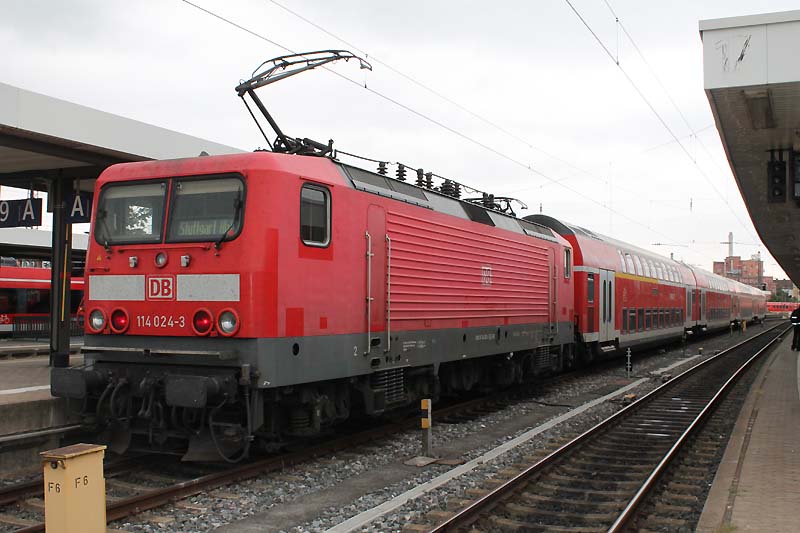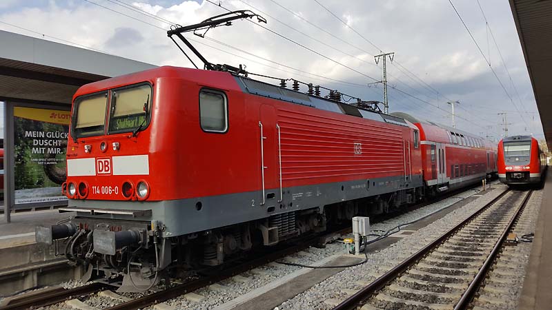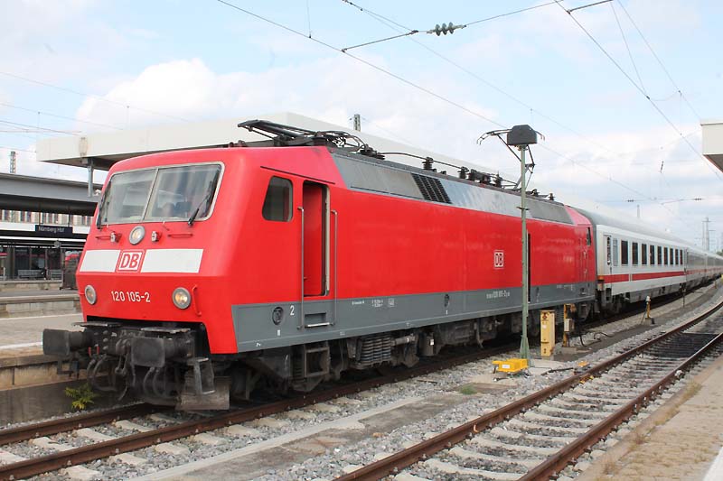Der Nürnberger Hauptbahnhof zählt zu den wichtigsten Fernverkehrs Bahnhöfen wie der Münchner Hauptbahnhof. Täglich reisen 180000 Fahrgäste nach Stuttgart oder nach München weiter. Im Westen verbirgt sich das Bahnbetriebswerk. Dort sind unteranderem auch die Baureihe 111 und die Baureihe 143 beheimatet und werden von dort vor verschiedenen Zugleistungen eingesetzt und eingeplant. Derzeit hat der Betriebshof Nürnberg 16 aktive Lokomotiven der Baureihe 111 und 13 aktive 143 im Bestand. Sie bespannen die S Bahn Linien nach Roth und nach Neumarkt in die Oberpfalz. Auch die elektrischen Triebwägen der Baureihe 442 sind in Nürnberg beheimatet und leisten dort ihre Dienste. ![]() Das sich hin und wieder eine Baureihe 151 sehen läßt ist relativ selten geworden. Diese Maschinen waren das Zugpferd für jeden Güterzug der zu fahren war. Am 30.08.2018 pausiert die Nürnberger 151 036-1 in der Abstellung von DB Cargo und wartet auf den nächsten Einsatz. ![]() Am 30.08.2018 bespannte 101 022-2 den IC 2024 nach Hamburg Altona. ![]() Auf Gleis 18 des Nürnberger Hauptbahnhof wartet die Stuttgarter 114 024-3 auf die Rückfahrt nach Stuttgart Hbf. ![]() Eine Nürnberger 143 247-5 mit ihrer S 2 im Hauptbahnhof von Nürnberg. ![]() Auch die Intercitys aus München haben im Nürnberger Hbf eine kleine Verschnaufpause. Wie am 30.08.2018 als die Münchner 120 105-2 auf die Weiterfahrt wartete. ![]() Am 30.08.2018 präsentiert sich die Münchner 111 053-5 sich von ihrer schönsten Seite als sie ihren Zug nach Treuchtlingen bespannte. ![]() Auch die Maschinen der Railpool werden vor Regionalbahnen eingesetzt. Wie 193 802-6 als sie einen Doppelstock bespannte hier im Nürnberger Hauptbahnhof. ![]() Das man eine Probefahrt in Nürnberg beobachten kann das kommt recht selten vor. Am Donnerstag des 30.08.2018 hatte 193 805-7 einen neuen Vectron mit Messwagen am Zughacken und hat im Gleisvorfeld einen kleinen Aufenthalt eingelegt. ![]() 193 357-1 mit Messwagen im Nürnberger Hbf. ![]() Nicht nur auf der Werdenfelsstrecke rund um Garmisch mamstert es sondern auch in Franken. Am 30.08.2018 hatte 442 721 Dienst und wartet nun auf die Ausfahrt ![]() Auch der Betriebshof Stuttgart in Baden Württemberg gibt den Maschinen der Baureihe 111 Auslauf: Sie bespannen noch die n-Wagen Garnitur zwischen Stuttgart und Nürnberg. Am 30.08.2018 bespannte die Stuttgarter 111 043-6 eine Regionalbahn und wartet nun auf die Rückfahrt nach Stuttgart. ![]() Am 30.08.2018 verlässt nun die Nürnberger 111 123-6 den Hauptbahnhof. ![]() Hier wartet 111 043-6 mit dem richten Scherenstromabnehmer am Fahrdraht auf die Rückfahrt nach Stuttgart. ![]() Am 30.08.2018 bespannte die ehemalige Münchner 500 Jahre Reinheitsgebot Werbe 111 123-6 einen Regionalexpress und wartet im Nürnberger Hauptbahnhof auf die Ausfahrt. ![]() Die In Nürnberg beheimatete 146 240-7 stellte ihren Regionalexpress nach München auf Gleis 3 bereit. Da Bauarbeiten zwischen München Hbf und Freising sind enden und beginnen die Regionalzüge in Freising. ![]() Hier schiebt zum Schluss die Nürnberger 143 119-6 ihre S-Bahn nach Feucht nach. ![]() Auch die Münchner Maschinen kommen mehrmals mit ihren Regionalzügen nach Nürnberg. Wie am 30.08.2018 als 111 188-9 einen Regionalexpress aus München in die Frankenmetropole nach Nürnberg Hbf brachte. ![]() Das auch die etwas schnelleren Renntrabbis der Baureihe 114 nach Nürnberg kommen ist nicht mehr selten. Sie bespannen wie ihre Schwestern der Baureihe 143 auch die Regionalbahnen von Stuttgart nach Nürnberg. Am 30.08.2018 bekam 114 006-0 vom Werk Stuttgart Auslauf und bespannte einen Regionalzug nach Nürnberg. Text und Bilder: Florian Riedl |