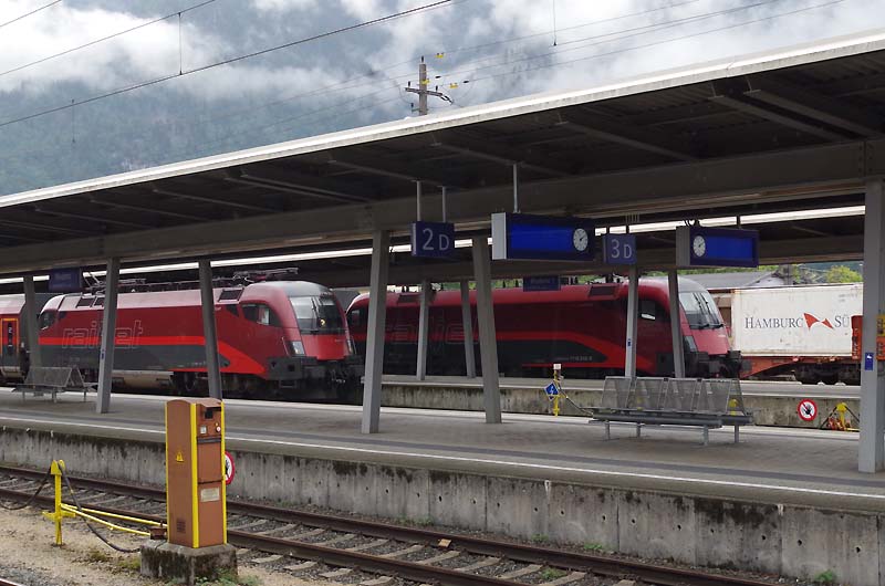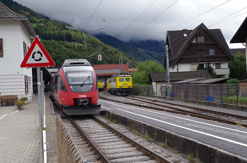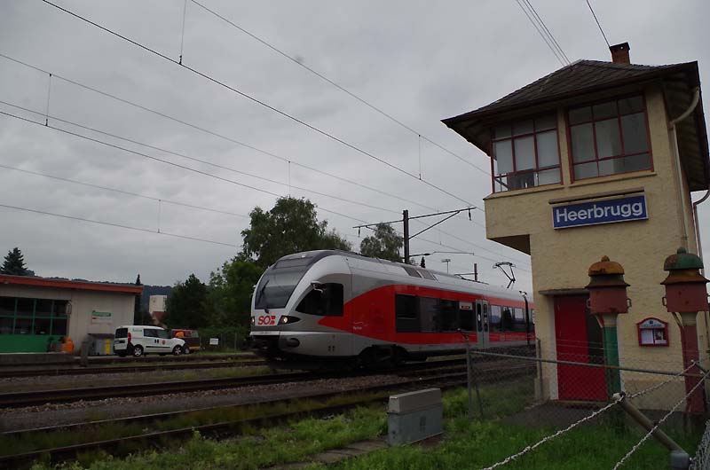 Sommerzeit – Urlaubszeit, es geht zum wandern ins Paznaun. Aber zwischendrin kann man ja auch mal zum Arlberg, Züge fotografieren... Bei der Ankunft das lange Gesicht – 14 Tage Generalbaustelle auf Ost- und Westrampe, Strecke zu, SEV. Nix mit Arlberg. Auf dem Weg zu einem Treffen mit einem Freund in Hohenems / Vorarlberg (zwischen Bregenz und Feldkirch) kann man aber wenigstens den regen Zugverkehr im Montafon verfolgen (auch mal ´ne Fotostory wert, mal sehen). In Bludenz dann kurz mal schauen, was sich am Ende des SEV so tut. Der Freund verspätet sich zum Abendessen, also noch Zeit. Was tun ? Es ist so ziemliches Sauwetter, trüb und diffuses Licht. Man könnte ja mal grad über den Rhein und kurz in die Schweiz, da läuft ´ne Strecke parallel zum Rhein. In dem Land soll ja reger Zugverkehr herrschen, noch nie dagewesen, eine halbe Stunde Zeit macht ja bestimmt einen Zug oder zwei.... Der Zöllner am Grenzübergang fragt: Haben Sie was einzuführen in die Schweiz ? Ja, Neugier. Sag ich ihm aber besser nicht. Und siehe da, nach Gefühl gefahren (immer 90 Grad vom Rhein und gradaus weiter) lande ich am Bahnhof von Heerbrugg und alle Fotos sind in gut 30 Minuten Schweiz entstanden, an einem „Unterwegsbahnhof“ einer eingleisigen Strecke. In der Schweiz ticken die Uhren in Sachen Bahn anders?! – das glaube ich -jetzt- gerne. Derselbe Zöllner wie bei der Einreise gut eine Stunde vorher steht jetzt bei der Ausreise wieder da. Und fragt: haben Sie was zu verzollen? Auf meine Antwort - die Kamera liegt noch auf dem Beifahrersitz - „Wenn jede Menge Eisenbahnbilder aus einer halben Stunde Schweiz zollpflichtig sind, ja“ runzelt er nicht die Stirn, sondern winkt mich mit einem Lächeln weiter... ![]() Schruns-Montafon, 4024 089 startet nach Bregenz ![]() Schruns, 1110 524 hat Ruhepause ![]() Schruns, Schwere Lok vorschriftsmäßig gesichert ![]() Schruns, ET 10.122 rastet auch ![]() Schruns, Gruppenbild mit Diesel und weiter nach Bludenz ![]() Bludenz, wg. Baustelle nicht viel los ![]() Bludenz, aber 1116 201 u. 246 stehen wenigstens Spalier ![]() Heerbrugg 15. 48 Uhr, noch nicht mal am Bahnsteig und Thurbo 720.8 kommt auf den Chip ![]() 15.52 Uhr, SOB 526 062 in Gegenrichtung nach St. Gallen ![]() und Nachschuß bei der Abfahrt nach Norden ![]() 15.57 Uhr SBB 511 037 als RE nach Chur ![]() .....und Nahaufnahme, der Lokführer winkte noch erfreut ![]() beim Nachschuss das nächste Objekt fürs Objektiv ![]() im Vorfeld steht am Kopfgleis 185 589 Martin Luther von Rheincargo ![]() Zwischen die Zugfolge gehen offensichtlich noch Güterzüge...16.11 Uhr, der nächste RE nach Wil ![]() im Nachschuss am stilvollen alten Banhofsgebäude ![]() Schon wieder am Auto, 16.17 Uhr, SOB 526 061 naht zur Zugkreuzung.... ![]() ...mit Thurbo 770 3 in Richtung Norden ![]() Bei der Ausfahrt mit dem schönen alten Stellwerk an der Ostseite des Bhf. ![]() ...und noch mal in Nahaufnahme, um 16.20 Uhr ab ins Auto und zur Verabredung in Vorarlberg. Nach 30 Min. 6 Züge: Wow! Text und Bilder: Holger Fuhr |