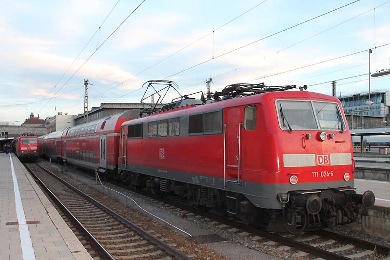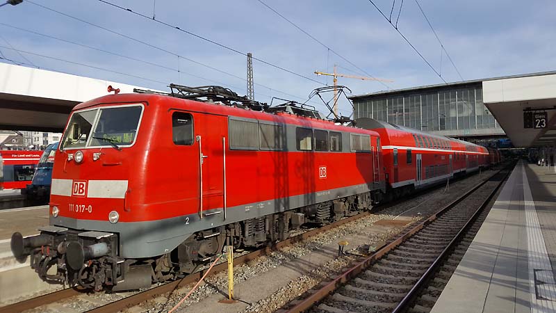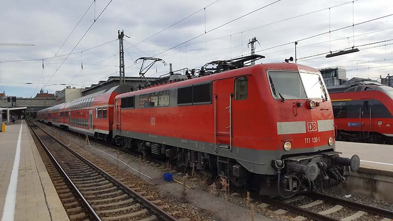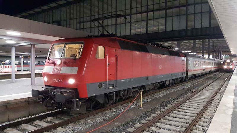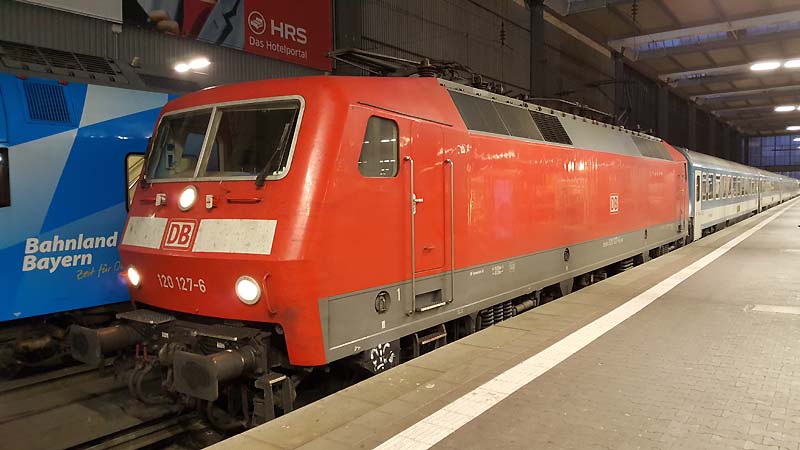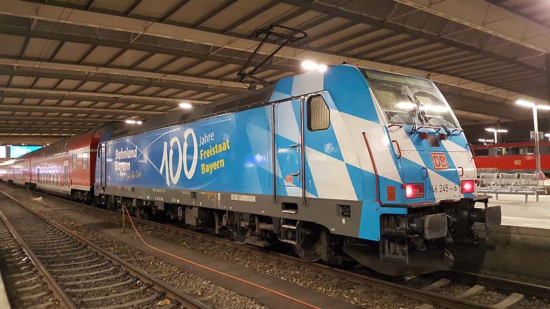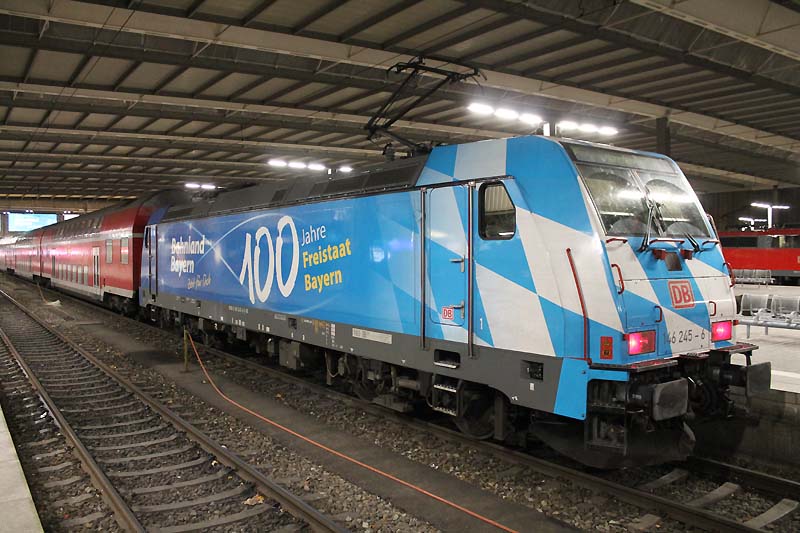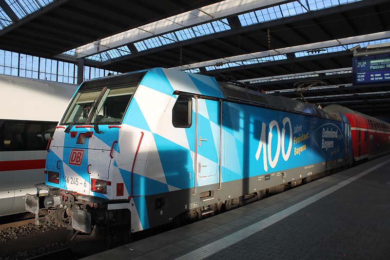 ![]() Am 02.11.2018 bespannte die Münchner 111 044-4 einen Regionalexpress nach Ingolstadt Hbf und wartet auf Gleis 2auf die Rückfahrt nach München Hbf. ![]() Am Nachmittag des 05.November.2018 bespannte die Nürnberger 146 245-6 (100 Jahre Freistaat Bayern) ihren Regionalexpress 4074 nach Passau Hbf. ![]() Noch fahren sie aber wie lang' Am 05.11.2018 bespannte die Münchner 120 118-5 einen Intercity. ![]() Am Abend des 05.11.2018 stand 111 036-0 mit einem Regionalzug im Münchner Hbf zur Rückfahrt nach Ingolstadt Hbf bereit. ![]() Auch der Betriebshof München schickte ihre 111 052-7 am 05.11.2018 nach Passau Hbf und wartet mit dem Regionalexpress 4082 auf die Ausfahrt aus dem Münchner Kopfbahnhof. ![]() Mit RE 4090 wartet nun die Nürnberger 146 245-6 mit dem Logo Bahnlandbayern 100 Jahre Freistadt Bayern auf die Rückfahrt nach Passau Hbf. Dort wird sie auch Feierabend haben. ![]() Wenn mal eine geplante Lok nicht zur Verfügung steht weshalb auch warum greift man zur Baureihe 120 zurück. Am Montagabend des 05.11.2018 übernahm die Münchner 120 118-5 den IC 2094 nach Ulm für die 103 245-7 die derzeit im Ausbesserungswerk Dessau zur Radsatzbehandlung steht und bald wieder diese Leistung fahren kann. ![]() Am 05.11.2018 hatte die Münchner 111 036-0 Dienst und bespannte einen Regionalexpress nach Nürnberg Hbf ![]() Am Montagabend des 05.11.2018 bespannte die Münchner Lok 111 188-9 einen Regionalexpress nach München Hbf. Bevor sie aber Feierabend hatte wird sie noch einmal nach Nürnberg fahren. Ihre letzte Leistung für diesen Tag war der RE 59108 der über Dachau und Petershausen nach Nürnberg Hbf führte. Nach Ankunft in Nürnberg um 00:17 Uhr wird sie dort in Franken übernachten und in der Abstellung abgestellt werden. ![]() Nach dem die Nürnberger 146 245-5 den Passauer Hauptbahnhof um 18:22 verlassen hatte machte sie sich wieder auf den Rückweg nach München Hbf. Am 05.11.2018 hatte die Maschine leider 15 Minuten Verspätung mitgebracht und kam erst um 20:50 (soll Ankunft 20:35) in München an. Da der Aufenthalt 20 Minuten trug konnte sie dann um 21:24 den Münchner Hbf wieder in Richtung Passau verlassen. ![]() Am 06.11.2018 bepannhte die Nürnberger 146 247-2 (Vernetzt in die Zukunft) Ihren Regionalexpress 4856 nach Nürnberg hbf und wird um 11:44 den Münchner hbf verlassen. ![]() Die Baureihe 111 ist derzeit in München noch recht gut vertreten vor ihren Planzügen. Am 06.11.2018 trafen sich die beiden Münchner 111 201-0 die ihren Regionalexpress 4678 nach Ingolstadt auf Gleis 26 bereitgestellt hatte und 111 052-7 die ihren Regionalzug aus Passau in die Landeshauptstadt von München brachte sich treu zur Seite. Leider hatte 111 052-7 einen technischen Defekt und musste in das Werk München einrücken zur Reparatur. Aber lange blieb der Doppelstock nicht ohne Lok. Denn die Lokleitung des Betriebshofes München schickte gleich die ehemalige Bahnlandbayern 111 017-0 zum Hauptbahnhof und übernahm dort die Rangierfahrt in die Abstellung. ![]() Hier übernimmt 111 017-0 den leeren Reisezug den die 111 052-7 aus Passau am 06.11.2018 nach München Hbf brachte. ![]() Auch die Nürnberger haben außer den neueren Drehstromlokomotiven noch die gute alte Baureihe 111 in ihrem Bestand. Am 06.11.2018 bespannte die ehemalige Münchner 111 130-1 die nun bei DB Regio in Nürnberg beheimatet ist einen RE nach Ingolstadt Hbf. ![]() Die Nürnberger 111 130-1 wartete am 06.11.2018 auf Gleis 30 auf die Ausfahrt nach Nürnberg Hbf. ![]() Am 06.11.2018 verlässt die Münchner 111 017-0 die Landeshauptstadt um nach Passau zu fahren. ![]() Am 06.11.2018 verlässt die in München beheimatete 111 017-0 die Haupthalle von München und nimmt Fahrt nach Passau Hbf auf. ![]() Auch für die 111 035-2 ging es in dieselbe Richtung aber nur bis Landshut Hbf. Dort wird sie wieder ihre Fahrtrichtung wechseln und nach München zurückkommen. ![]() Am 06.11.2018 um 14:41 hatte 111 027-9 Einfahrt in den Münchner Hbf. ![]() Auch die Regionalbahnen die zwischen Landshut und München am Tag fahren werden von den 111er vom Betriebshof München übernommen. Am 06.11.2018 wird 111 035-2 ihre Regionalbahn 59269 in wenigen Minuten zurück nach Landshut Hbf fahren. ![]() Am Dienstagabend stellte die Nürnberger 146 242-3 den Regionalexpress 4074 nach Passau auf Gleis 25 für die Reisenden bereit. ![]() 111 201-0 brachte am 06.121.2018 ihren Regionalexpress wieder nach München zurück. ![]() Gegen 17:00 brachte 115 198-4 ihren IC Leerzug von München-Pasing in die Hauptbahnhof von München. Die a, 05.11.1958 im Dienstgestellte Lok konnte am 05.11.2018 ihren 60. Geburtstag feiern. Herzlichen Glückwunsch zu 60 Jahre aktive Zeit bei der Deutschen Bahn AG ![]() Am 06.Noveber.2018 wartet die Münchner 111 055-0 auf die Rückfahrt nach Ingolstadt. ![]() Auf Gleis 17 steht zum Einsteigen bereit IC 2094 nach Ulm Hbf. Für die noch im Ausbesserungswerk eingerückte 103 245-7 sprang am 06.11.2018 die Münchner 120 115-1 ein. ![]() Am Starnberger Bahnhof stand die ehemalige ADAC für Menschen Unterwegs Münchner 111 024-6 mit der RB 5528 nach Garmisch-Partenkirchen. ![]() Die in München beheimatete 111 031-1 bespannte am Abend des 06.11.2018 Ihren Regionalexpress 4879 nach Mittenwald und wird dort auch Feierabend haben. Sie wird erst am nächsten Tag zurück nach München kommen. ![]() Am Abend des 06.11.2018 stellte die 115 198-1 den IC 2094 für die Münchner 120 115-1 auf Gleis 17 bereit. Da Derzeit die 103 245-7 auf Grund von Radsatztausch im Werk Dessau bleiben muss übernehmen diese Dienste derzeit die Baureihe 120 oder sogar 111. ![]() Um 06:40 hatte 120 127-6 mit ihrem CNL aus Budapest einfahrt in den Münchner Hbf. ![]() Nach dem Mühldorf nun die blauen VT 628 423-6 und 628 424-3 im Bestand hatte wurde auch überlegt ob nicht ein Blauer Bahnlandbayern Steuerwagen nicht schlecht wäre. Natürlich passt die Farbe Blau zwischen den Roten Schienenfahrzuge perfekt rein und man entschloss sich diesem Doppelstock S