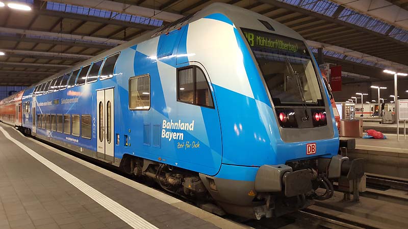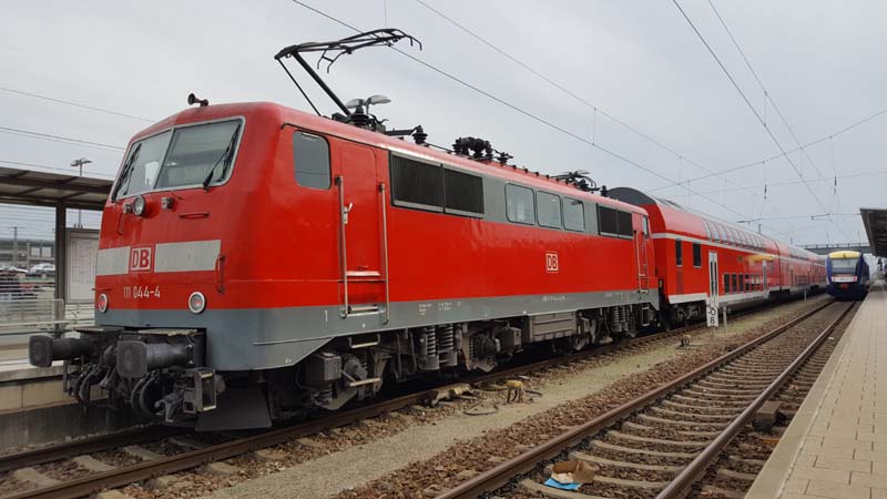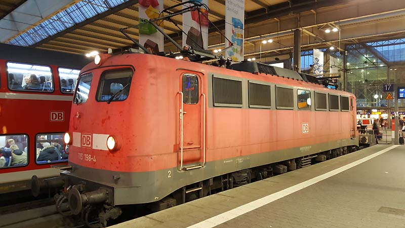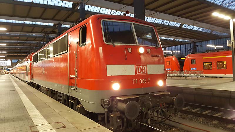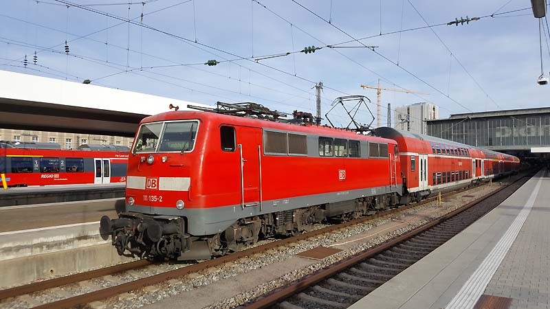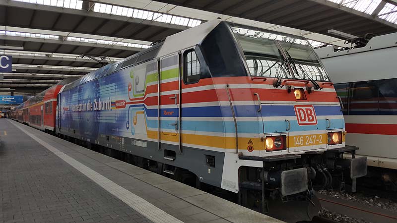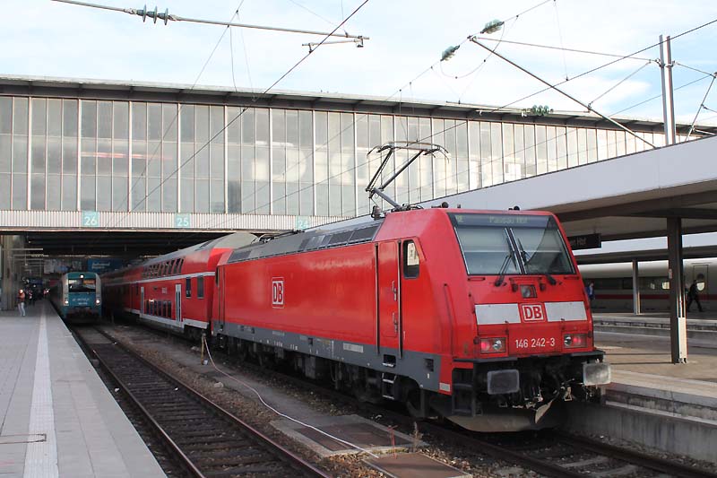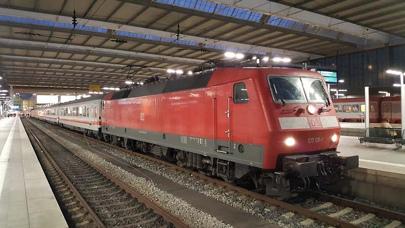 ![]() Am 02.11.2018 bespannte die Münchner 111 044-4 einen Regionalexpress nach Ingolstadt Hbf und wartet auf Gleis 2auf die Rückfahrt nach München Hbf. ![]() Am Nachmittag des 05.November.2018 bespannte die Nürnberger 146 245-6 (100 Jahre Freistaat Bayern) ihren Regionalexpress 4074 nach Passau Hbf. ![]() Noch fahren sie aber wie lang' Am 05.11.2018 bespannte die Münchner 120 118-5 einen Intercity. ![]() Am Abend des 05.11.2018 stand 111 036-0 mit einem Regionalzug im Münchner Hbf zur Rückfahrt nach Ingolstadt Hbf bereit. ![]() Auch der Betriebshof München schickte ihre 111 052-7 am 05.11.2018 nach Passau Hbf und wartet mit dem Regionalexpress 4082 auf die Ausfahrt aus dem Münchner Kopfbahnhof. ![]() Mit RE 4090 wartet nun die Nürnberger 146 245-6 mit dem Logo Bahnlandbayern 100 Jahre Freistadt Bayern auf die Rückfahrt nach Passau Hbf. Dort wird sie auch Feierabend haben. ![]() Wenn mal eine geplante Lok nicht zur Verfügung steht weshalb auch warum greift man zur Baureihe 120 zurück. Am Montagabend des 05.11.2018 übernahm die Münchner 120 118-5 den IC 2094 nach Ulm für die 103 245-7 die derzeit im Ausbesserungswerk Dessau zur Radsatzbehandlung steht und bald wieder diese Leistung fahren kann. ![]() Am 05.11.2018 hatte die Münchner 111 036-0 Dienst und bespannte einen Regionalexpress nach Nürnberg Hbf ![]() Am Montagabend des 05.11.2018 bespannte die Münchner Lok 111 188-9 einen Regionalexpress nach München Hbf. Bevor sie aber Feierabend hatte wird sie noch einmal nach Nürnberg fahren. Ihre letzte Leistung für diesen Tag war der RE 59108 der über Dachau und Petershausen nach Nürnberg Hbf führte. Nach Ankunft in Nürnberg um 00:17 Uhr wird sie dort in Franken übernachten und in der Abstellung abgestellt werden. ![]() Nach dem die Nürnberger 146 245-5 den Passauer Hauptbahnhof um 18:22 verlassen hatte machte sie sich wieder auf den Rückweg nach München Hbf. Am 05.11.2018 hatte die Maschine leider 15 Minuten Verspätung mitgebracht und kam erst um 20:50 (soll Ankunft 20:35) in München an. Da der Aufenthalt 20 Minuten trug konnte sie dann um 21:24 den Münchner Hbf wieder in Richtung Passau verlassen. ![]() Am 06.11.2018 bepannhte die Nürnberger 146 247-2 (Vernetzt in die Zukunft) Ihren Regionalexpress 4856 nach Nürnberg hbf und wird um 11:44 den Münchner hbf verlassen. ![]() Die Baureihe 111 ist derzeit in München noch recht gut vertreten vor ihren Planzügen. Am 06.11.2018 trafen sich die beiden Münchner 111 201-0 die ihren Regionalexpress 4678 nach Ingolstadt auf Gleis 26 bereitgestellt hatte und 111 052-7 die ihren Regionalzug aus Passau in die Landeshauptstadt von München brachte sich treu zur Seite. Leider hatte 111 052-7 einen technischen Defekt und musste in das Werk München einrücken zur Reparatur. Aber lange blieb der Doppelstock nicht ohne Lok. Denn die Lokleitung des Betriebshofes München schickte gleich die ehemalige Bahnlandbayern 111 017-0 zum Hauptbahnhof und übernahm dort die Rangierfahrt in die Abstellung. ![]() Hier übernimmt 111 017-0 den leeren Reisezug den die 111 052-7 aus Passau am 06.11.2018 nach München Hbf brachte. ![]() Auch die Nürnberger haben außer den neueren Drehstromlokomotiven noch die gute alte Baureihe 111 in ihrem Bestand. Am 06.11.2018 bespannte die ehemalige Münchner 111 130-1 die nun bei DB Regio in Nürnberg beheimatet ist einen RE nach Ingolstadt Hbf. ![]() Die Nürnberger 111 130-1 wartete am 06.11.2018 auf Gleis 30 auf die Ausfahrt nach Nürnberg Hbf. ![]() Am 06.11.2018 verlässt die Münchner 111 017-0 die Landeshauptstadt um nach Passau zu fahren. ![]() Am 06.11.2018 verlässt die in München beheimatete 111 017-0 die Haupthalle von München und nimmt Fahrt nach Passau Hbf auf. ![]() Auch für die 111 035-2 ging es in dieselbe Richtung aber nur bis Landshut Hbf. Dort wird sie wieder ihre Fahrtrichtung wechseln und nach München zurückkommen. ![]() Am 06.11.2018 um 14:41 hatte 111 027-9 Einfahrt in den Münchner Hbf. ![]() Auch die Regionalbahnen die zwischen Landshut und München am Tag fahren werden von den 111er vom Betriebshof München übernommen. Am 06.11.2018 wird 111 035-2 ihre Regionalbahn 59269 in wenigen Minuten zurück nach Landshut Hbf fahren. ![]() Am Dienstagabend stellte die Nürnberger 146 242-3 den Regionalexpress 4074 nach Passau auf Gleis 25 für die Reisenden bereit. ![]() 111 201-0 brachte am 06.121.2018 ihren Regionalexpress wieder nach München zurück. ![]() Gegen 17:00 brachte 115 198-4 ihren IC Leerzug von München-Pasing in die Hauptbahnhof von München. Die a, 05.11.1958 im Dienstgestellte Lok konnte am 05.11.2018 ihren 60. Geburtstag feiern. Herzlichen Glückwunsch zu 60 Jahre aktive Zeit bei der Deutschen Bahn AG ![]() Am 06.Noveber.2018 wartet die Münchner 111 055-0 auf die Rückfahrt nach Ingolstadt. ![]() Auf Gleis 17 steht zum Einsteigen bereit IC 2094 nach Ulm Hbf. Für die noch im Ausbesserungswerk eingerückte 103 245-7 sprang am 06.11.2018 die Münchner 120 115-1 ein. ![]() Am Starnberger Bahnhof stand die ehemalige ADAC für Menschen Unterwegs Münchner 111 024-6 mit der RB 5528 nach Garmisch-Partenkirchen. ![]() Die in München beheimatete 111 031-1 bespannte am Abend des 06.11.2018 Ihren Regionalexpress 4879 nach Mittenwald und wird dort auch Feierabend haben. Sie wird erst am nächsten Tag zurück nach München kommen. ![]() Am Abend des 06.11.2018 stellte die 115 198-1 den IC 2094 für die Münchner 120 115-1 auf Gleis 17 bereit. Da Derzeit die 103 245-7 auf Grund von Radsatztausch im Werk Dessau bleiben muss übernehmen diese Dienste derzeit die Baureihe 120 oder sogar 111. ![]() Um 06:40 hatte 120 127-6 mit ihrem CNL aus Budapest einfahrt in den Münchner Hbf. ![]() Nach dem Mühldorf nun die blauen VT 628 423-6 und 628 424-3 im Bestand hatte wurde auch überlegt ob nicht ein Blauer Bahnlandbayern Steuerwagen nicht schlecht wäre. Natürlich passt die Farbe Blau zwischen den Roten Schienenfahrzuge perfekt rein und man entschloss sich diesem Doppelstock S
