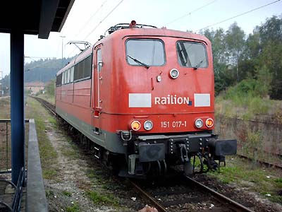 Die 151 151 drückt den Zug aus dem Bahnhof hinaus Richtung ehem. Grenze (am Falkenstein)