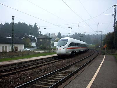 Noch bevor der Güterzug Ausfahrt erhält, muss der ICE 1515 nach München vorbeigelassen werden.