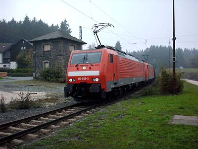 Die beiden Loks 189 029 als Vorspann und 189 011 bringen Ihren Güterzug von Probstzella her über den Berg. Sie erhielten keine Schubunterstützung.