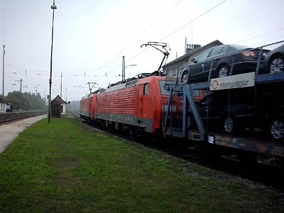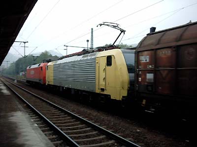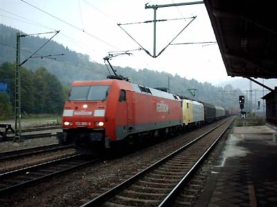 Die am Vormittag in Pressig bereits einmal gesehene 152 060 wird wiederum auf Vorspannlok vor einem Güterzug bespannt mit der ES 64 F095 über den Berg geschickt. Der Zug hält an und wartet, dass sich die Schublok in Form der 151 151 an den Zug setzen wird. (Nächste Mail mit den nächsten 3 Bildern)