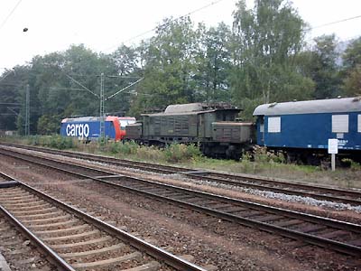 Ziel unserer Fahrt nach Probstzella war natürlich auch die 194 580, die in Probstzella überwiegend in der Nacht Ihren Dienst verrichtet. Leider haben wir kurz vorher erfahren, dass diese auf Grund eines Hauptschalterschadens nicht betriebs-bereit abgestellt ist. Daneben wurde die Re 482 031 der SBB "geparkt".