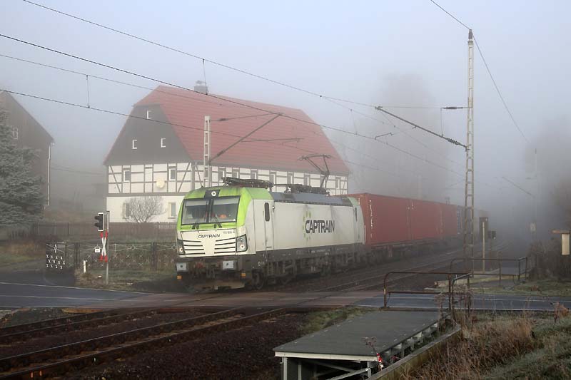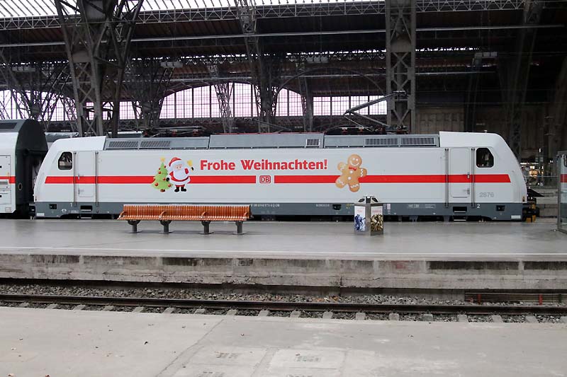![]() 04.12.18 Leipzig Hbf: 147 566 +146 563 ![]() 05.12.18 Kurort Rathen: 143 895 mit einer S 1 ![]() 05.12.18 Kurort Rathen: 293 308 mit einem Bauzug ![]() 05.12.18 Struppen: 193 896 mit einem Containerzug ![]() 05.12.18 Struppen: 193 894 mit Kesselwagen ![]() 05.12.18 Struppen: 193 293 mit EC 173 ![]() 05.12.18 Struppen: 386 040 mit einem Containerzug ![]() 05.12.18 Struppen: 186 433 mit Kesselwagen ![]() 05.12.18 Struppen: 232 673 ![]() 05.12.18 Struppen: 232 233 mit einem Getreidezug ![]() 05.12.18 Struppen: 372 006 + 372 007 + 372 010 ![]() 05.12.18 Struppen: 193 289 mit EC 389 ![]() 05.12.18 Struppen: 383 007 ![]() 05.12.18 Struppen: 185 649 mit Kesselwagen ![]() 05.12.18 Struppen: 193 872 mit Kesselwagen ![]() 05.12.18 Struppen: 146 010 mit einer S 1 ![]() 05.12.18 Struppen: 193 298 mit EC 175 ![]() 05.12.18 Struppen: Ein desinteressierter Zaungast ![]() 06.12.18 Leipzig Hbf: 115 261 ![]() 06.12.18 Leipzig Hbf: 146 014 mit einem RE nach Dresden ![]() 06.12.18 Leipzig Hbf: 363 685 mit 120 120 und einen PbZ ![]() 06.12.18 Leipzig Hbf: 146 576 wünscht '?Frohe Weihnachten'? ![]() 06.12.18 Leipzig Hbf: 223 144 schiebt einem RE nach Chemnitz ![]() 06.12.18 Leipzig Hbf: 641 027 als RB 23 nach Geithain ![]() 06.12.18 Leipzig Hbf: Einkaufspassage im Hauptbahnhof ![]() 06.12.18 Stötteritz, Hölzhäuser Straße: Der Niederflur-Gelenktriebwagen Tw 1014 vom Typ Solaris Tramino gehört zu den neusten Straßenbahnen der Leipziger Verkehrsbetriebe. Der zehnachsige Vierteiler hat eine Länge von 37,63 Metern und ein Fassungsvermögen von 220 Fahrgästen bei 75 Sitzplätzen. ![]() 07.12.18 Dresden, Südvorstadt: Immer noch sind in Dresden einige Tatra-Großraumtriebwagen unterwegs. Das Bild zeigt Tw 224 229, Baujahr 1977, und Tw 244 020, Baujahr 1979, in der Wendeschleife Südvorstadt. Beide Tw wurden Mitte der 1994/95 modernisiert und auf Thyristorsteuerung umgebaut. ![]() 07.12.18 Dresden Hbf: 193 293 mit EC 176 07.12.18 DD Hbf ![]() 07.12.18 Dresden Hbf: 146 559 mit IC 2042 ![]() 07.12.18 Dresden Hbf: 186 435 ![]() 07.12.18 Dresden Hbf: 383 006 ![]() 07.12.18 Dresden Hbf: 143 828 mit einer S 3 ![]() 08.12.18 Heidenau: 371 004 mit RE 5276 ![]() 08.12.18 Heidenau: 185 578 mit Kesselwagen ![]() 08.12.18 Heidenau: 186 136 mit einem Autotransportzug ![]() 08.12.18 Heidenau: 193 296 mit EC 173 ![]() 08.12.18 Heidenau: 146 010 ![]() 08.12.18 Heidenau: 146 013 ![]() 08.12.18 DD-Strehlen: E03 001 mit DPF 6465. Am Zugende läuft 103 113 ![]() 08.12.18 DD-Strehlen: E03 001 mit DPF 6465. Am Zugende läuft 103 113 ![]() 08.12.18 DD-Strehlen: 193 291 mit EC 174 ![]() 08.12.18 DD-Strehlen: 189 016 + 189 009 als Wagenlok sowie ein Güterzug ![]() 08.12.18 DD Hbf: 146 567 mit IC 2048 ![]() 08.12.18 DD Hbf: 193 290 mit EC 379 ![]() 08.12.18 DD Hbf: 76109 ![]() Ich wünsche allen Leserinnen und Lesen eine besinnliche Weihnachtszeit und ein gesundes neues Jahr. Text und Bilder: Uwe Pfeiffer |