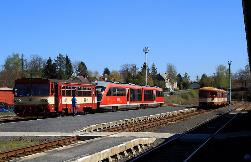Eigentlich wollte ich zu den Feiertagen weit weg fahren. Aber letztlich blieb ich zu Hause. Es gab Tagestouren zu gesuchten Loks und auf Grund des Wetters zu einigen schönen Plätzen in Tschechien und vor der Haustür. ![]() Auf dem Weg ins Landesinnere wird in Liberec geschaut, was sich im Bahnhof tut. Oftmals kreuzen bunte Straßenbahnen mein Blickfeld. ![]() Auf dem Weg ins Landesinnere wird in Liberec geschaut, was sich im Bahnhof tut. Oftmals kreuzen bunte Straßenbahnen mein Blickfeld. ![]() 193 739 in Kolin abgestellt ![]() 362 112 mit R 981 bei Horky u Caslavi ![]() 242 272 über die Ostertage in Havlickuv Brod abgestellt ![]() Ebenso 242 246 mit Wagenzug ![]() 363 030 mit R 982 in Havlickuv Brod ![]() Dann traf 362 112 ihrem R in Havlickuv Brod ein ![]() In der CD Cargo-Abstellgruppe stand 230 003 ![]() 230 056+230 105 fahren in die Abstellung ![]() 230 055+230 041 als Lv bei Okrouhlice ![]() 230 055+230 041 als Lv bei Okrouhlice ![]() 383 010 mit Mondi-Containerzug (mit Holz beladen) ![]() 362 166 mit R 983 ![]() 362 174 mit R 982 ![]() 383 010 als Lv am Hp Horky u Caslavi ![]() 362 019 mit R 987 bei Vorbeifahrt am Hp Horky u Caslavi ![]() 163 215 mit leeren Kohlecontainern in Kolin ![]() 122 014 in Kolin ![]() 130 035 in Nymburk ![]() 130 007 mit Gaskesselzug nach Kralupy nad Vltavou in Nymburk ![]() Versuchsring Velim/Cerhenice ![]() Versuchsring Velim/Cerhenice ![]() 471 007 in Pecky ![]() 151 007 mit EC 117 in Pecky ![]() 193 206 mit RJ 1012 bei Nova Ves u Kolina ![]() 193 227 mit RJ 1045 bei Nova Ves u Kolina. Konnte leider nicht die Straße überqueren. ![]() 681 006 bei Nova Ves u Kolina ![]() 350 016 mit verspätetem EC 278 bei Nova Ves Kolina ![]() 362 160 mit R 987 bei Kutna Hora Malin ![]() 362 024 mit R 980 in der Gegenrichtung ![]() Als Ersatz für eine 362 kam Os 5915 mit 754 043 (Reservelok PJ Havl. Brod) gefahren ![]() R 989 mit 362 161 ![]() In Rumburk standen Ostersonntag 810 181 nach Mikulasovice dolni nadrazi, 642 035 von der Nationalparkbahn und 714 023 mit Anhang (erste Tagesleistung war der Fahrradzug Decin-Mikulasovice dolni nadrazi) ![]() 754 061 mit R 1107 in Rybniste (pendelte auf Grund von Bauarbeiten zw, Rumburk und Mlada Boleslav) ![]() Ein Blick auf das Kraftwerk Turoszow, welches gegnüber meines Wohnortes steht. ![]() Abschluß zu den Ostertagen war ein Bild mit 232 253 und einem Leerkalkpendel bei Radomierzyce (Pl) am Ostermontag Text und Bilder: Jörg Flecks |
