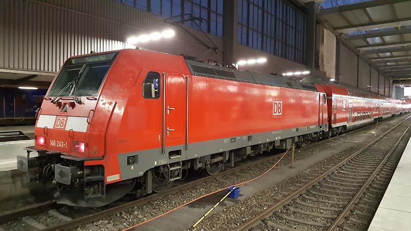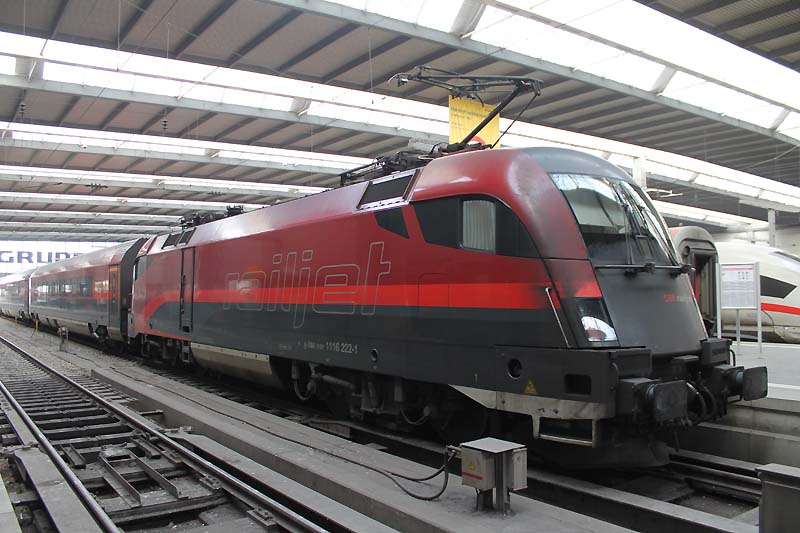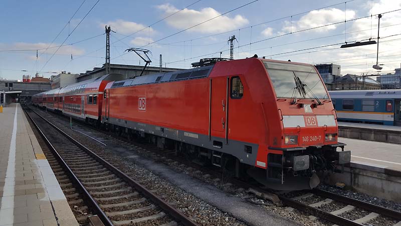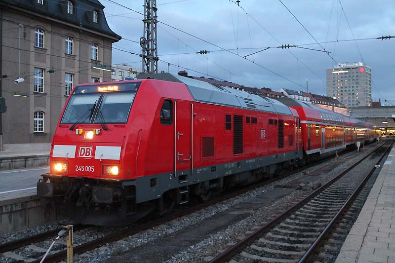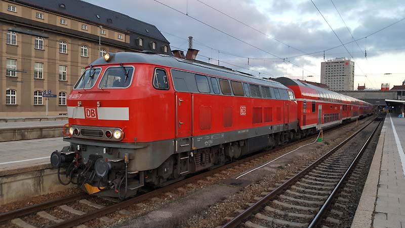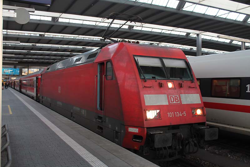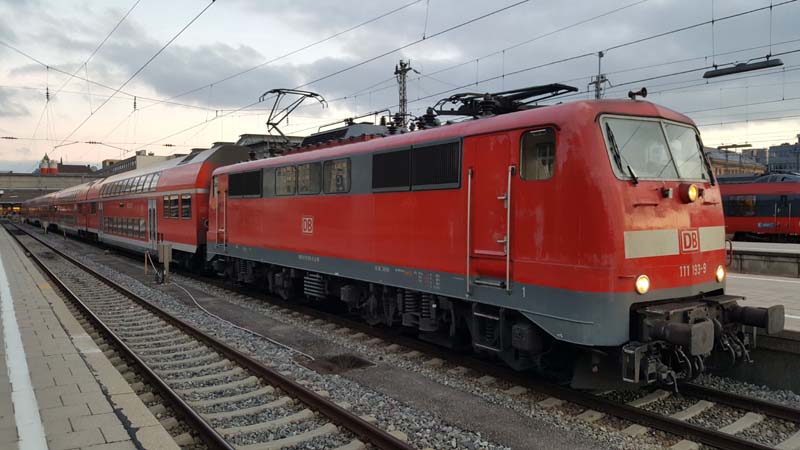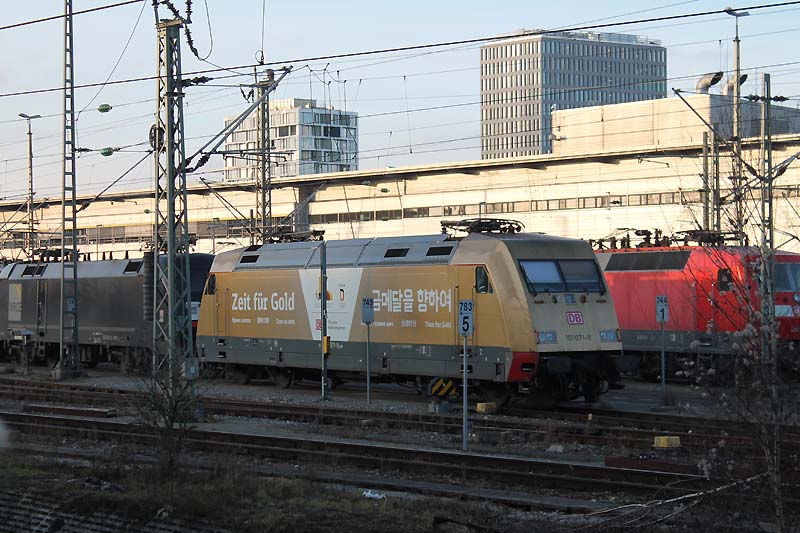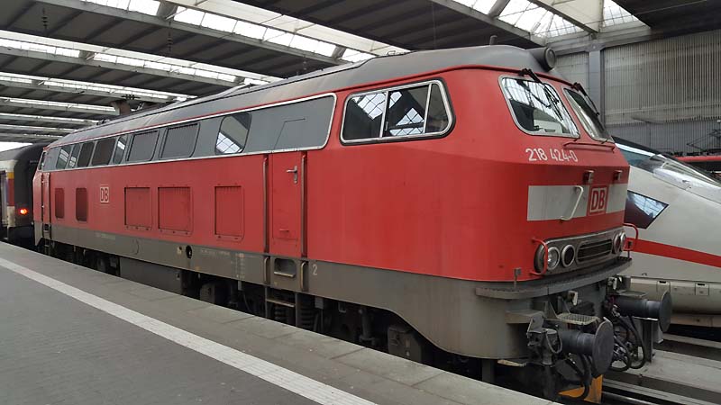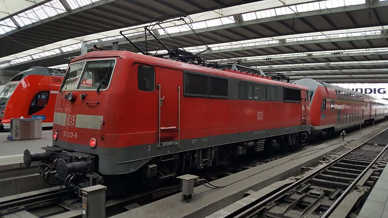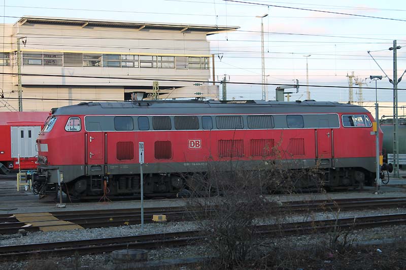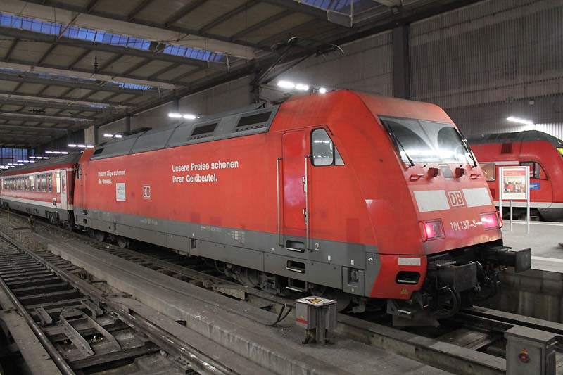 Auch nach dem Fahrplanwechsel sind die Dieseltriebwagen der Baureihe 628 der Südostbayernbahn im Linienstern Mühldorf unterwegs. So wie auch am 29.12.2019 als VT 628 586 auf die Rangierfahrt in das Betriebswerk wartet. ![]() Auch diese Triebwagen des Sylt Shuttle sind beim Mühldorfer Lokpersonal immer gern gesehen. VT 628 501 wird in wenigen Minuten in das Bahnbetriebswerk von Mühldorf fahren und dort für die Regionalbahn 27060 bereitstellt werden. ![]() Der Sylt Shuttle Plus VT 628 501 wartet am 28.12.2019 auf die Rangierfahrt in das Bahnbetriebswerk von Mühldorf. ![]() Seit längerer Zeit besitzt das Eisenbahnunternehmen RailAdventure diesen Aussichtswagen. Am 28.12.2019 war dieser Luxon Wagen auf einem Abstellgleis abgestellt und wartet auf die nächste Sonderreise. ![]() Am 28.12.2019 war 139 558-1 vom Münchner Eisenbahnunternehmen RailAdventure auf einem Abstellgleis im Münchner Hbf abgestellt und wartet auf den nächsten Einsatz. ![]() Am 26.01.1965 erhielt E 40 1558 ihre Abnahme und wurde dem Bahnbetriebswerk Hannover zugeteilt. Sie erhielt den Mechanischen Teil von Krauss Maffei in München Allach und die elektrische Ausrüstung von den Siemens Schuckert Werke. Vom 26.01.1965 bis Sylvester 31.12.1965 war sie in chromoxidgrün in Hannover beheimatet bevor sie am 01.01.1968 nach Seelze kam und sie am 26.11.1986 in ozeanblau/beige um lackiert wurde. Die Lok blieb nun bis zur IS 703 in der ozeanblau/beige Farbe bis die Deutsche Bahn dann alle ihrer Lokomotiven in Verkehrsrot um lackieren ließ. Während ihrer Zeit lernte sie die Betriebshöfen Bebra, Offenburg, Mannheim und München kennen wo sie auch im Brennerverkehr eingesetzt wurde. Doch der Bedarf an vorhandenen Güterzuglokomotiven mit elektrischer Bremse für den Brennerverkehr fehlte und man baute die Maschinen in die Baureihe 139 um. So wurden 40 E 10 die hatte man nicht extra ausgemustert sondern den Lokkasten auf die Drehgestelle der E 40 gesetzt. Daraus wurde dann die Baureihe 139 den die 110er hatte eine elektrische Bremse. Nun konnte man auch diese 139er die in München beheimatet waren auf der Kochelseebahn antreffen und sie beobachten bei ihrer Arbeit. Ihr letztes Betriebswerk war Nürnberg und da war sie vom 20.02.2002 bis zur ihrer Ausmusterung die dann am 21.02.2009 erfolgte. Doch man wollte die Lok nicht verschrotten und man stellte sie beim Stillstandsmanagment erstmal ab. Das neu gegründete Eisenbahnunternehmen RailAdventure wurde auf die abgestellte Lok aufmerksam und erwarb sie schließlich. Mit LED lichtern versehen und kleineren Umbauten in der Lok und mit neuer Farbe steht die 55 Jahre alte Lokomotive bei Rail Adventure heute noch im aktiven Dienst und leistet ihre Überführungsfahrten mit Bravour. Herzlichen Glückwunsch 139 558-1 zum 55. Geburtstag. ![]() Auch die Baureihe 111 ist nach dem Großen Fahrplanwechsel noch recht viel unterwegs sowie auf der Strecke München-Passau. Am 28.12.2019 bespannte die Münchner 111 027-9 zusammen mit 111 031-1 (als Schluss Lok) den Regionalzug 4070 nach Passau Hbf. ![]() Am 28.12.2019 hatte ein Railjet Einfahrt in den Münchner Hbf. ![]() Auch die Kemptner Lokomotiven der Baureihe 218 kommen nach dem Planwechsel mit ihren EC 191 noch nach München Hbf. Am 28.Dezember.2019 bespannte 218 424-0 diesen Eurocity und erreichte den Münchner Hauptbahnhof. ![]() Auf Gleis 20 wartet ein TWINDEXX mit der Regionalbahn 59096 nach Nürnberg auf die Ausfahrt. ![]() Das solche Lokomotiven Unterwegs sind da man einfach nur noch stolz sein. Am 28.12.2019 war 139 558-1 vom Eisenbahnunternehmen RailAdventure zusammen mit den Aussichtswagen Luxon auf einem Abstellgleis abgestellt und warten auf den nächsten Einsatz. ![]() Auch nach dem Großen Fahrplanwechsel auf der Strecke München-Passau kann man nach wie vor die Baureihe 111 beobachten bei ihrer Arbeit. Am 28.12.2019 bespannten die beiden Münchner 111 027-9 und 111 031-1(am Zugschluss) den RE 4070 nach Passau. ![]() Am 28.12.2019 hatten 111 027-9 und 111 031-1 (am Zugschluss) Dienst und werden um 12:24 ihren Regionalexpress 4070 nach Passau fahren. ![]() In wenigen Minuten wird 111 031-1 den Münchner Hbf in Richtung Passau verlassen. ![]() Mit einer Aktiven Dienstzeit von 43 Jahren ist 111 031-1 immer noch bei DB Regio gut im Geschäft. Doch leider sind ihre Nachfolgerinnen die Baureihe 146 dicht auf den Fersen und übernehmen auch schon mal vereinzelt ihren Umlauf zwischen München und Passau. Am 28.12.2019 warten 111 031-1 zusammen mit 111 027-9 mit ihren RE 4070 auf die Rückfahrt nach Passau. ![]() Nicht nur die Baureihe 111er sind in München anzutreffen sondern auch die Drehstromlok 146. Am 28.12.2019 wartet 146 240-7 mit ihren Regionalexpress auf die Rückfahrt nach Nürnberg die in wenigen Minuten erfolgen wird. ![]() ET 440 703-7 mit der nicht schönen Graffiti Besprühung wartet am 28.12.2019 auf die Rückfahrt nach Passau Hbf. ![]() Bei einem schönen blauen Himmel wartet 139 558-1 auf weitere Einsätze. ![]() Von der Donnersbergerbrücke aus hat man einen wunderbaren Blick auf die Abgestellten Triebfahrzeuge der Rail Adventure. Am 28.12.2019 konnte man 103 222-6 auf dem Abstellgleis antreffen als sie sich etwas ausruhte ![]() Nach wie vor ist die 103 222-6 für 280 km/h zugelassen. 103 222-6 war zunächst für das Forschung und Technologie Zentrum in Minden vorgesehen und deutschlandweit für Versuchs und Messfahrten im aktiven Dienst unterwegs. Zum 30. November 1989 war sie aus dem regulären Fahrzeugbestand ausgeschieden und in die 750 003 umgezeichnet worden. Die DB Systemtechnik als Nachfolger des FTZ setzte diese Einsätze fort und hat die Beheimatung der Lokomotive in Minden beibehalten. Doch 2005 wurde sie in 103 222-6 um bezeichnet. Als Nachfolger war ab 2014 die 182 506 vorgesehen. Mittlerweile ist auch eine DB 182 eingesetzt worden. 103 222-6 wurde für 551 000 € an das Eisenbahnunternehmen RailAdventure versteigert. Seit 2014 hat die Maschine erneut eine Hauptuntersuchung mit Neulackierung im Corp