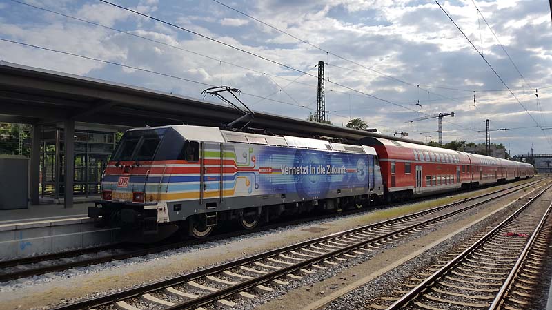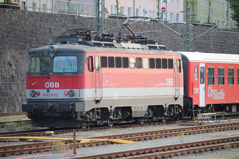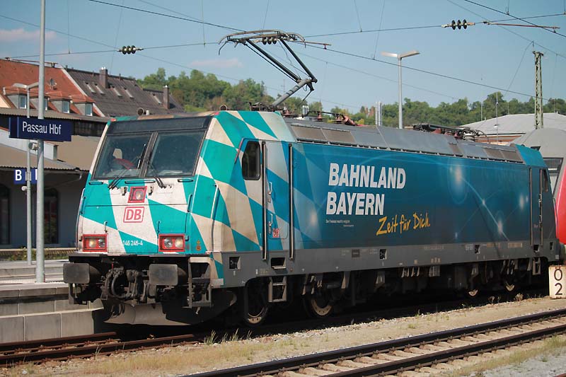 ![]() Am Sonntagnachmittag wartet die Nürnberger 152 046-9 in der Abstellung auf neue Einsätze. ![]() Auch die Nürnberger 146 246-4 hatte am sonnigen Sonntag Dienst und bespannte ihren RE 4079 nach München Hbf. ![]() Solche Lokomotiven kommen nur recht selten nach Passau oder haben mit einem langen Güterzug Durchfahrt durch den Passauer Hbf. Am 17.Mai.2020 wartet 470 501-7 der Gysev Verkehrsunternehmen auf die Überführungsfahrt nach Linz. Dort wird sie in der Werkstatt eine Nachschau erhalten. ![]() Am ehemaligen Österreicher Haus war am 18.05.2020 die Werbelokomotive der Kaiserin Sissi abgestellt und wartet auf die Rückfahrt nach Linz Hbf um dort in die Werkstatt ein rücken zu können. ![]() Am 17. Mai.2020 bespannten die beiden Münchner 111 027-9 und 111 031-1 die als Schluss Lok dient ihren Regionalexpress 4081 nach München Hbf. ![]() Wie man sieht stehen die 111er des Betriebshofes München noch gut um Dienst bei DB Regio. Doch leider werden sie jetzt langsam aufs Abstellgleis gefahren oder dienen nur noch als Ersatzteilspender für andere 111er. 111 031-1 wurde am 03.06.1976 in München abgenommen und ist bis heute im aktiven Dienst bei DB Regio. Am 17. Mai.2020 bespannte 111 031-1 ihren Regionalexpress 4081 nach München Hbf. ![]() Beim Strahlender Sonne wartet nun 111 031-1 auf die Rückfahrt nach München. ![]() Am 17.05.23020 verlässt ein VT 628 490 der Südostbayernbahn den Passauer Hbf in Richtung Mühldorf in Oberbayern. ![]() Am Rotzeigenden Signal warten am 17.05.2020 gleichzwei 1116er auf die Rangierfahrt in den Güterbahnhof. ![]() Auf Gleis 3 hatte am 17.05.2020 ein zweiteiliger ET 440 Einfahrt in den Passauer Hbf. ![]() Am 17.05.2020 bespannte 193 662-4 einen Langen Güterzug nach Österreich. Diese Lok ist Eigentümer der MRCE Dispolok GmbH in München und Lokomotion Gesellschaft für Schienentraktion setzt vor diversen Güterzügen ein. ![]() Mit einem langen Erzzug durch fahren die beiden Mannheimer 185 368-8 und einer weiteren am 17.05.2020 den Passauer Hbf. ![]() VT 628 423-6 hatte am 17.05.2020 die Regionalbahn 27240 nach Mühldorf und verlässt pünktlich den Passauer Hbf um 19:06. ![]() Nach einer sehr langen Zeit kommen nun auch wieder diese Lokomotiven nach Passau. In der Abstellung des Passauer Hbf wartet 1142 612-1 auf die Rückfahrt nach Linz Hbf. ![]() In der letzten Abendsonne des 17.05.2020 wartet 1142 612-1 auf die Rückfahrt nach Linz die erst am nächsten Tag erfolgen wird. ![]() Am Abend des 17. Mai.2020 hatte 111 227-5 Dienst und brachte ihren RE 4082 nach Passau. 111 227-5 war die letzte gebaute Regio Lok wo die Deutsche Bundesbahn erhielt. Sie wurde am 10.10.1984 abgenommen und dem Betriebshof München zugeteilt. Ihre mechanische Ausrüstung erhielt sie von Henschel & Sohn in Kassel und die elektrische Ausrüstung von Brown, Boveri & Cie AG in Mannheim (BBC). ![]() Am Abend des 17.05.2020 brachte die Münchner 111 227-5 ihren Regionalexpress 4082 nach Passau. Mit beiden Einholstromabnehmer wartet nun die Münchnerin auf die Rückfahrt nach München die erst am nächsten Tag erfolgen wird. ![]() Auf Grund einer Weichen Störung hatte der Regionalexpress 4074 der am 20.05.2020 aus 111 027-9 und 111 031-1 besteht 20 Minuten Verspätung und hatte erst gegen 16:55 Einfahrt auf Gleis 6. ![]() Auf Grund von einer Weichenstörung hatte der Regionalexpress 4074 mit den beiden Münchner 111 027-9 und 111 031-1 erst gegen 17:00 Einfahrt in den Passauer Hbf. ![]() Am 20.05.2020 bespannte die Münchner 111 027-9 zusammen mit 111 031-1 ihren RE 4074 und brachte ihn leider mit 20 Minuten Verspätung nach Passau. 111 027-9 wurde am 22.04.1976 abgenommen und dem Betriebshof München übergeben. Vom 22.April.1976 bis jetzt leistet die Lok zuverlässig ihre Dienste und erhielt am 26.10.2018 im Heimatwerk München eine IS 930 (Sehr vereinfachte Auslaufuntersuchung, die im Heimat-Betriebshof ausgeführt werden kann, Laufkilometerstand bleibt dabei unverändert, so dass die Lok den Grenzwert früher erreicht). ![]() Die Münchner 111 031-1 wartet am 20.05.2020 nun auf Gleis 6 auf die Rückfahrt nach München mit ihrem Regionalexpress 4081. ![]() Am 20.05.2020 verlässt ein Triebwagen der Baureihe 628 533 der Südostbayern den Passauer Hbf mit der Regionalbahn 27236 nach Mühldorf. ![]() Am 20.05.2020 bespannte 471 005-3 der Raabertalbahn einen langen Güterzug und brachte ihn aus Österreich nach Passau. ![]() Die Mannheimer 185 344-9 bespannte am 20.058.2020 einen klangen Holzzug nach Österreich. ![]() Nach getaner Arbeit fährt am 20.05.2020 der Gysev Vectron 471 005 in Richtung Abstellung. ![]() Am 20.05.2020 fährt 471 005 als Leerzug zu ihrem zugewiesenen Abstellplatz zum ehemalige Österreicherhaus und wird in Passau übernachten. ![]() Ein Maskottchen darf in einem Drehstrom Fahrzeug einfach nicht fehlen. Am 20.05.2020 fuhr der kleine Maulwurf aus der Sendung mit der Maus im Führerstand der Nürnberger 146 247-2 nach Passau mit. ![]() Auch die Nürnberger 146 247-2 hatte am 20. Mai.2020 Ihre Aufgabe den Regionalexpress 4076 nach Passau zu bespannen und wartet nun auf Gleis 5 auf das umsetzten auf Gleis 3. ![]() 146 247-2 hatte am 20.05.2020 Dienst und bespannte den RE 4076 aus München Hbf. ![]() Mit beiden Einholmstromabnehmer am Fahrdraht wartet 146 247-2 auf das Rangieren auf Gleis 3. Da die neuen Lokomotiven per Rechner unterstützt werden hebt sich der zweite Stromabnehmer selbsttätig wenn man den Führerstand deaktiviert. ![]() An den ehemaligen Abstellgleisen des ehemaligen Österreicherhaus ruhte sich 119 008-0 der RheinCargo GmbH & Co. KG aus und wartet nun auf den nächsten Einsatz. ![]() Am ehemaligen Österreicher Haus stand am 20. Mai.2020 der Gysev Vectron 193 235-9 abgerüstet und wartet auf die nächste Zugleistung. Text und Bilder: Florian Riedl |