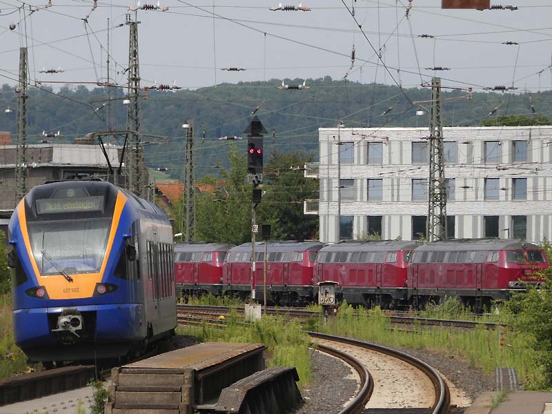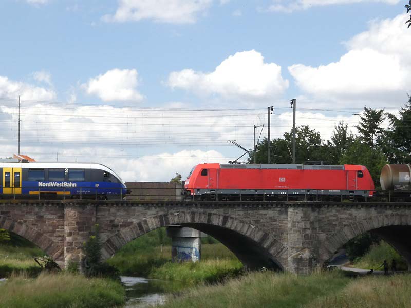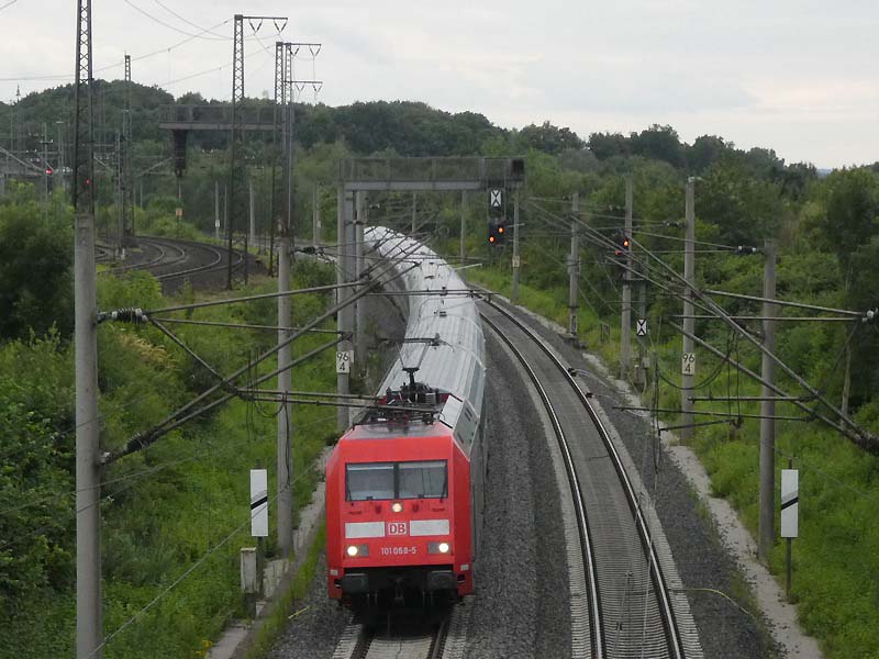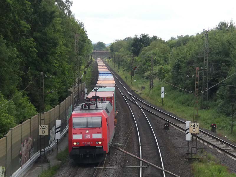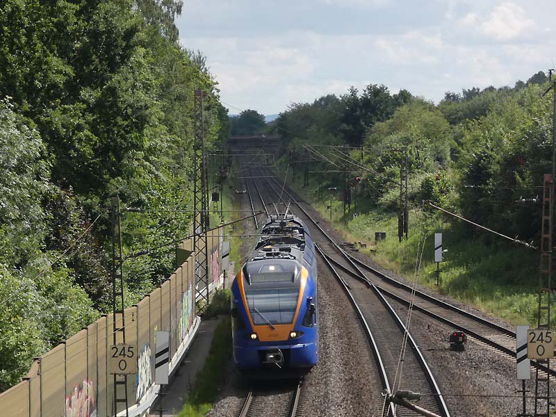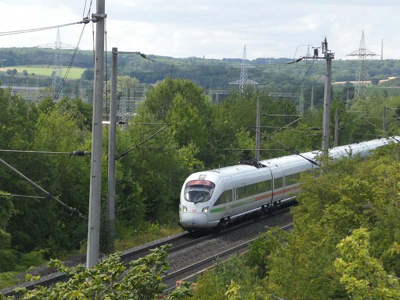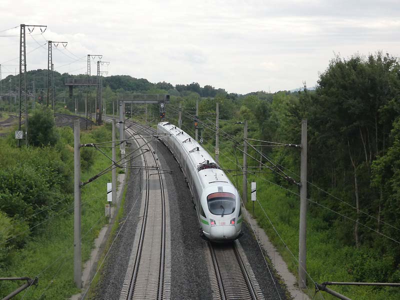 ![]() 152 167-3 mit Containerzug hat jetzt noch 2,2 km bis zum Bahnhof Göttingen, 03.07.2020 ![]() 427 003 Cantus um 16:41. In Richtung Süden gibt es genügend Licht bis nach 18:00, während südwärts fahrende Züge nach 16:30 in der Kurve bereits im Schatten liegen. Göttingen, 03.07.2020 ![]() 185 680-6 Railpool mit Werbung für die FH Aachen. Göttingen, 03.07.2020 ![]() 482 011-4 ChemOil in Richtung Norden. Göttingen, 03.07.2020 ![]() 152 066-7 mit leeren Containertragwagen in Richtung Süden um 15:26. Göttingen, 16.07.2020 ![]() 427 054 Cantus als RB7 nach Eschwege kommt vom Überwerfungsbauwerk. Dieser Standort wird erreicht, in dem man von der Brücke Schieferweg in Richtung Kleingartenanlage geht und 2 x rechts abbiegt. ca. 300 m Fussweg. Göttingen, 28.07.2020 Siekhöhe mit Schnellfahrstrecke km 101,2 - 102,4. Zur Siekhöhe kommt man ebenfalls, wenn man den oben genannten Weg entlang der Kleingartenanlage nutzt, aber nur 1 x rechts abbiegt. Den Tunnel unterqueren und nach wenigen Metern sieht man links eine Schranke. Links neben dieser Schranke führt ein schmaler Fussweg auf die Siekhöhe. Guter Blick auf die Stadt und Umgebung, sowie auf das Überwerfungsbauwerk. ![]() ICE-4 bei km 102,4 am Südende der Siekhöhe, Göttingen, 28.07.2020 ![]() ICE 411 xxx Siekhöhe km 102,4, Göttingen, 28.07.2020 ![]() IC auf dem Viadukt Tiefenbrunn, ca. 3 km von der Siekhöhe entfernt. Göttingen, 28.07.2020 ![]() ICE-4 auf dem Viadukt Tiefenbrunn, Göttingen, 28.07.2020 ![]() ICE-4 bei km 101,4 an der Siekhöhe. Stadt und Überwerfungsbauwerk sind im Hintergrund zu sehen. Göttingen, 28.07.2020 ![]() Cantus auf dem Überwerfungsbauwerk in Richtung süden unterwegs. Das 2. Gleis verbindet die Schnellfahrstrecke mit der Nord-Süd-Strecke. Göttingen, 28.07.2020 Niedernjesa und Obernjesa liegen bei km 239 und 238 an der Nord-Süd-Strecke südlich von Göttingen ![]() 427 554 Cantus als RB 8 nach Kassel bei Obernjesa km 238,6, 23.07.2020 ![]() 193 760 ELL mit Containerzug bei Obernjesa, 23.07.2020 ![]() 152 066-7 mit leeren Waggons, Obernjesa, 23.07.2020