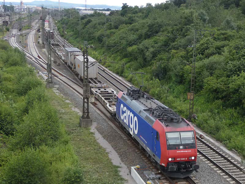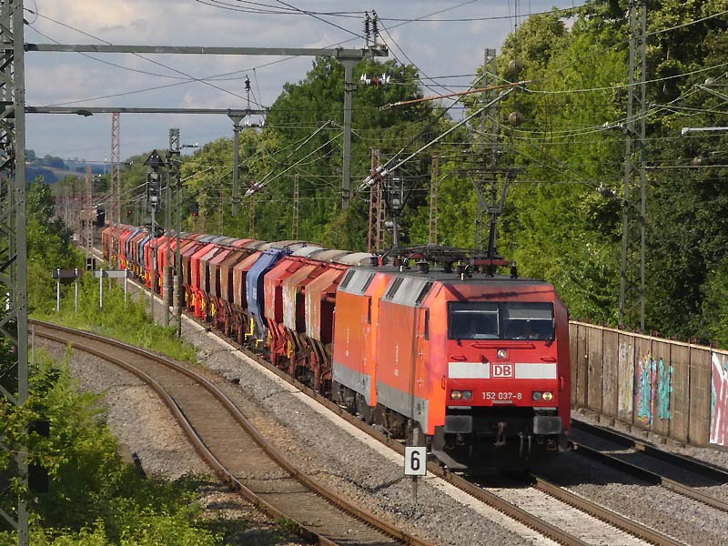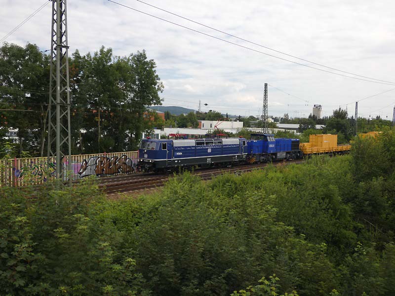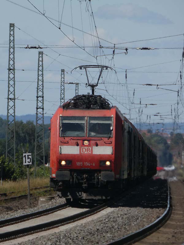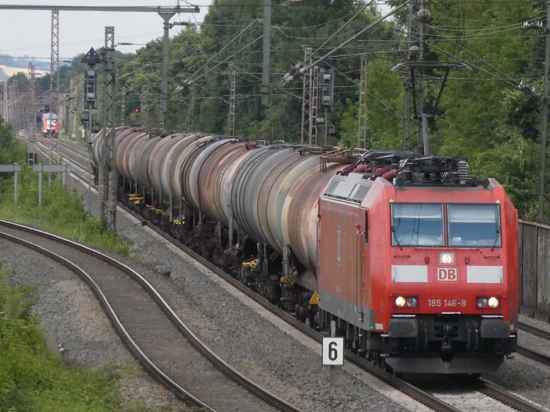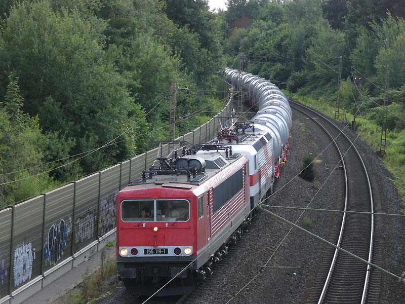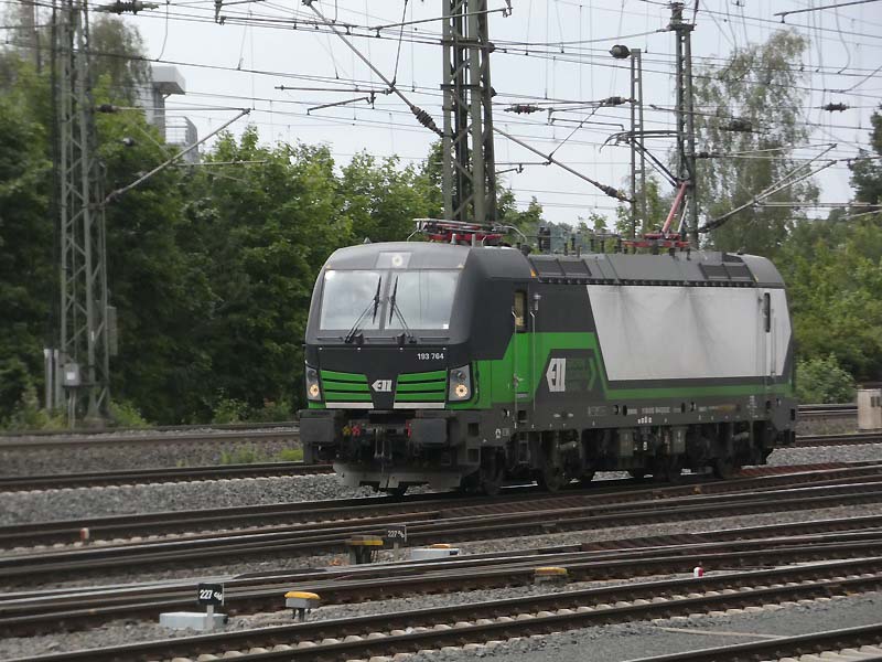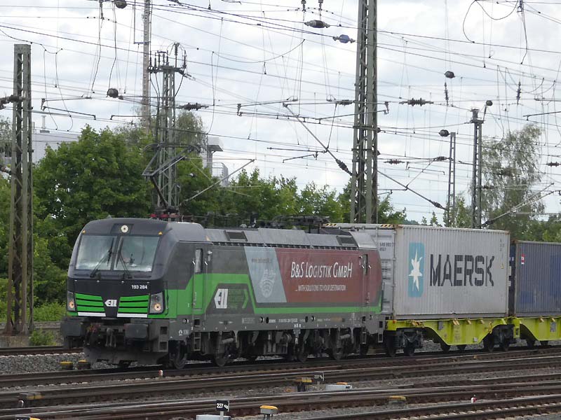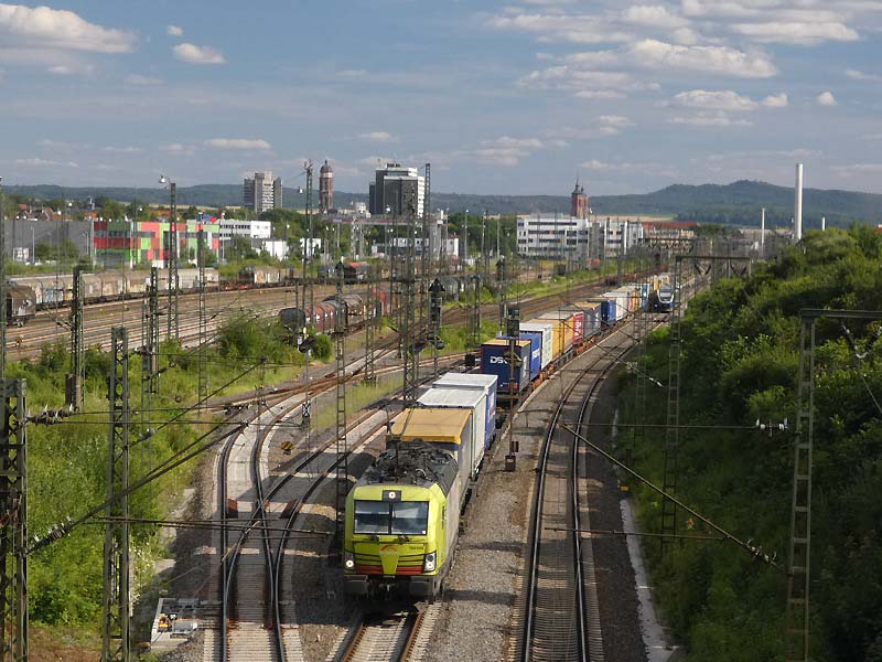 Anbei ein Ausflug an verschiedene Bildstandorte der Nord-Süd-Strecke und der Schnellfahrstrecke Hannover - Würzburg, im Raum Göttingen von Nord nach Süd. Die km der Nord-Süd-Strecke beginnen im Stadtgebiet Göttingen bei km 104,8 in Göttingen Weende und enden im Bf am Prellbock von Gleis 3 mit km 108,0. Ab dort wird bis Frankfurt/Main rückwärts gezählt. Die Strecke von Ffm endet in Göttingen bei km 247,2. Die daneben verlaufende Schnellfahrstrecke Hannover - Würzburg liegt in Göttingen Weende bei km 96,2 und zieht sich bis km 102-4 neben der Siekhöhe. Göttingen Weende Friedrich-Ebert-Strasse km 104,8 der Nord-Süd-Strecke. Es kann in beiden Richtungen fotografiert werden. Nach Norden gibt es eine Gerade in Richtung Bovenden und den Abzweig nach Paderborn. Nach Süden liegt der nördl. Bereich des Gbf in einer Kurve. Entlang der Strasse lassen sich Aufnahmen aus unterschiedlicher Höhe machen. ![]() 193 841-4 Boxxpress Göttingen Weende, 12.07.2020 ![]() 146 532-7 Metronom. Göttingen, 12.07.2020 ![]() 193 266 TXL mit Kesselzug, 12.07.2020 ![]() 146 515 Metronom am Abzweig nach Paderborn, Göttingen, 11.07.2020 ![]() 185 666-5 Lokomotion mit Klv-Zug, Göttingen, 12.07.2020 ![]() 152 037-8 und 2. 152 mit Ganzzug Schüttgutwaggons. Im Gbf wird die vordere Lok umlaufen und dann gekuppelt den Schub übernehmen. Dieser Zug kommt Sonntags zwischen 16 - 17 in Göttingen an. Göttingen, 12.07.2020 ![]() 193 960 WLC begegnet Autozug in Göttingen Weende, Göttingen, 12.07.2020 ![]() 152 074-1 mit kurzem Autozug, Göttingen, 12.07.2020 ![]() 185 146-8 vor Kesselzug, Göttingen 14.07.2020 ![]() 193 759 mit Holzzug begegnet Kesselzug, Göttingen, 14.07.2020 ![]() 187 304-1 Railpool in der Nordkurve am Gbf, Göttingen, 14.07.2020 ![]() 187 009-6 SETG LZ in Richtung Norden, Göttingen, 14.07.2020 ![]() 193 642 MRCE mit freundlichem Gesicht, Göttingen, 14.07.2020 ![]() 212 347-9 mit Schwesterlok, Göttingen, 14.07.2020 ![]() 243 822-4 und 155 119 mit Kalilaugenzug in der Nordkurve des Gbf, Göttingen, 17.07.2020 ![]() 243 822-4 mit 155 119 mit leeren Waggons auf der Rückfahrt, Göttingen, 18.07.2020 ![]() 192 014 RTB Cargo mit ARS-Altmann Zug, Göttingen, 18.07.2020 ![]() 181 204-9 SEL - Rügen - mit Diesellok ESG 8 - Schwabensprinter - vor schwerem Bauzug, Göttingen, 17.07.2020 ![]() 181 204-9 SEL - Rügen - mit Diesellok ESG 8 - Schwabensprinter - vor schwerem Bauzug, Göttingen, 17.07.2020 Göttingen Weende Friedrich-Ebert-Strasse Schnellfahrstrecke Hannover - Würzburg km 96,2 An dieser Stelle kommt man nur schlecht an die Namen oder Nummern der ICE. Bei den Lokbespannten IC's ist es einfacher. Zwischen 16:09 - 16:35 fahren 3 Züge mit Loks durch. 16:09 ICE 1196 nach Berlin 16:18 IC 2082 nach Hamburg 16:35 IC 2375 nach Karlsruhe Freitags und Sonntags gibt noch einige IC's extra. ![]() ICE-T 411 xxx in Göttingen Weende, Göttingen, 25.07.2020 ![]() 401 xxx Göttingen Weende, 25.07.2020 ![]() 101 126-1 mit ICE 1196 nach Berlin, Göttingen, 25.07.2020 ![]() 101 027-1 mit IC 2082 nach Hamburg, Göttingen, 25.07.2020 ![]() 101 050 mit IC 2375 nach Karlsruhe, Göttingen, 25.07.2020 ![]() Doppelter 411 xxx in Richtung Norden, Göttingen, 27.07.2020 ![]() 101 068-5 um 13:29 in Richtung Norden, Göttingen, 27.07.2020 ![]() 411 xxx auf dem Weg zum Bf Göttingen, 27.07.2020 Göttingen Gbf Brücke Rinschenrott km 106,0 der Nord-Süd-Strecke und km 97,4 der Schnellfahrstrecke. Die Brücke wird als Rad- und Fußgängerbrücke genutzt, keine Autos. Erreichbar vom Baumarkt Globus aus. ![]() 152 079-0 mit Ganzzug, Göttingen, 07.07.2020 ![]() Versammlung am Ablaufberg von 4 Loks der Br 140 EBS 140 772, 789, 811 und 815. 192 005 EVB in der Abtellung. Göttingen, 07.07.2020 ![]() 482 020-5 sbb Cargo, Göttingen, 07.07.2020 ![]() 193 204 SETG Mozart in der Abstellung, Göttingen, 11.07.2020 ![]() Gbf um 18:30 mit Blick auf die Stadt. Die weissen Gebäude am Ende des Gbf markieren den nächsten Fotostandort hinter dem Restaurant Amavi. Göttingen, 12.07.2020 ![]() 401 xxx auf dem Weg zum Bf hinter der nächsten Kurve. Göttingen, 13.07.2020 ![]() 401 xxx hat soeben den Bf in Richtung Norden verlassen, Göttingen, 13.07.2020 ![]() ICE-4 9203 auf Testfahrt in Richtung Bf Göttingen, 13.07.2020 ![]() 101 032-1 mit IC 2082. Göttingen, 13.07.2020 ![]() ICE-4 412 xxx in Richtung Norden. Göttingen, 13.07.2020 ![]() 185 052-8 vor Containerzug am Gbf Göttingen, 13.07.2020 ![]() ICE-4 412 xxx kurz vor dem Bf Göttingen, 14.07.2020 ![]() 193 550 TXL mit KLV-Zug. Göttingen, 23.07.2020 ![]() 193 814 SETG - Der Bartgeier - in der Abstellung. Göttingen, 27.07.2020 Gbf km 107,4 und SFS km 98,8 hinter dem Restaurant Amavi und Goethe-Institut. 3 weisse Bürogebäude. ![]() 151 025-4 Göttingen, 02.07.2020 ![]() 193 726 ELL RTBcargo mit ARS-Altmann-Zug. Göttingen, 02.07.2020 ![]() 185 107-0 mit Ganzzug Schiebewandwagen für VW. Göttingen, 03.07.2020 ![]() 193 284 B&S Logistik mit Containerzug südwärts. Göttingen, 03.07.2020 ![]() 185 205-2 -Das ist grün-. Göttingen, 03.07.2020 ![]() 159 204 HHPI ist Lz in Richtung Süden unterwegs. Göttingen, 06.07.2020 ![]() 402 020-2 ist wiederholt Solo unterwegs. Göttingen, 07.07.2020 ![]() 185 539-4 TXL. Göttingen, 09.07.2020 ![]() 143 124-6 FWK mit 2. 143 vor Kalilaugenzug. Göttingen, 09.07.2020 ![]() 193 764 ELL Lz südwärts. Göttingen, 09.07.2020 ![]() 159 202 HHPI wartet im Gbf auf neue Arbeit. Göttingen, 12.07.2020 ![]() 111 210 Railadventure in Richtung Norden, Göttingen, 13.07.2020 ![]() 186 383 HSL mit Ganzzug Schüttgutwaggons. Göttingen, 14.07.2020 ![]() 185 595-6 Freightliner DE. Göttingen, 14.07.2020 ![]() 243 822-4 und 155 119 FWK mit Kalilaugenzug. Göttingen, 15.07.2020 ![]() 218 402-6 RP - Pidder Lüng - auf der SFS nordwärts. Göttingen, 15.07.2020 ![]() 101 030-5 BKK Göttingen, 18.07.2020 ![]() 185 409-0 Raildox mit STRABAG Bauzug. Göttingen, 21.07.2020 Brücke über der Godehardstrasse km 99,2 SFS. Die Brücke erreicht man, indem man im Bf 