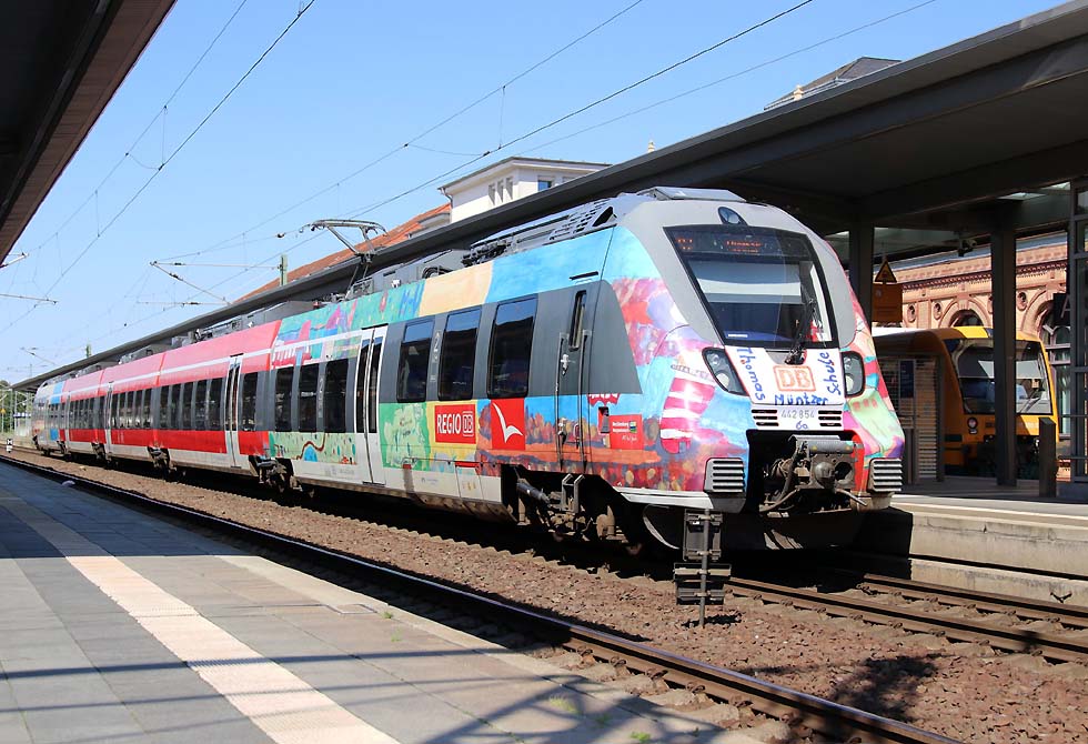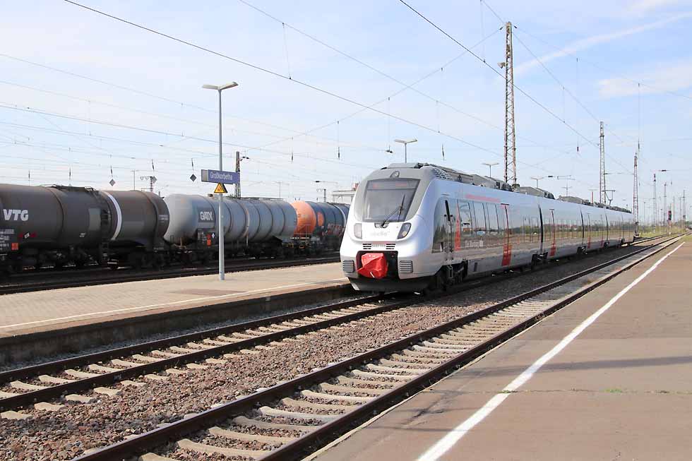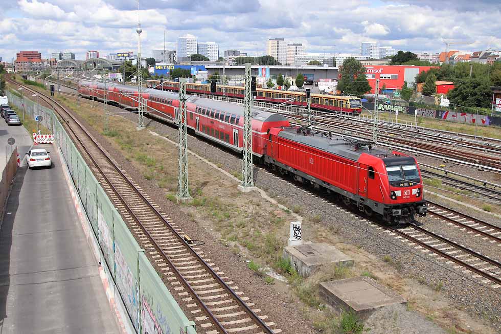 ![]() 01.08.20 Großkorbetha: 37 0001 + 187 500 ![]() 01.08.20 Großkorbetha: 02 193845 auf Rangierfahrt ![]() 01.08.20 Großkorbetha: 9442 314 ![]() 02.08.20 Berlin Hbf: 04 182 024 mit einem RE 1 ![]() 03.08.20 Potsdam Bf Rehbrücke: 646 042 als eine RB 33 ![]() 03.08.20 Potsdam Bf Rehbrücke: 442 325 + 442 133 als ein RE 7 ![]() 03.08.20 Potsdam Platz der Einheit: In der Jahren 1998 bis 2005 erhielt der Verkehrsbetrieb Potsdam (ViP) 16 30,5 Meter lange Straßenbahnen, Tw 401 - 416 vom Typ Siemens Combino in Einrichtungsausführung. In den Jahren 2017 - 2018 wurden die Wagen 409 bis 416 durch zwei zusätzliche Mittelteile auf rund 42 Meter verlängert. Da die Combino Produktion zwischenzeitlich beendet war, stammen die verbauten Mittelteile aus der aktuellen Avenio Serie was am Höhenunterschied deutlich erkennbar ist. Das Bild zeigt Tw 412 am Platz der Einheit. ![]() 03.08.20 Potsdam Park Sanssouci: 442 128 als eine RB 22 ![]() 04.08.20 Berlin Lichtenberg: 193 231 und ![]() 04.08.20 Berlin Lichtenberg: 193 721 ![]() 04.08.20 Berlin Lichtenberg: 481 198 im Bauzugeinsatz ![]() 04.08.20 Berlin Warschauer Str.: 147 015 mit einem RE 1 ![]() 04.08.20 Berlin Warschauer Str.: 'Reko' 481 091 + 481 099 + 481 040 ![]() 04.08.20 Berlin Warschauer Str.: 1002 021 rangiert 101 126 mit einer MET Garnitur ![]() 04.08.20 Berlin Friedrichstr.: 370 007 mit EC 246 ![]() 04.08.20 Berlin Tiergarten: 146 557 schiebt IC 2431 ![]() 04.08.20 Berlin Tiergarten: 9022 als ICE 877 ![]() 04.08.20 Berlin Tiergarten: 370 006 mit dem NJ 457 nach Wien ![]() 04.08.20 Berlin Tiergarten: 147 012 mit einer RB 14 ![]() 05.08.20 Berlin Greifswalder Str.: 151 007 ![]() 05.08.20 Berlin Hbf: 21 193 622 mit EC 247 ![]() 05.08.20 Berlin Schönefeld: 193 733 mit einem Containerzug ![]() 05.08.20 Berlin Schönefeld: 189 212 mit einem Güterzug ![]() 05.08.20 Berlin Schönefeld: Doppelkopf: Sowohl 4110 111 mit IC 2174 nach Dresden als auch 4110 110 mit IC 2271 nach Warnemünde machen Kopf in Schönefeld. ![]() 05.08.20 Berlin Schönefeld: 4110 111 als IC 2174 ![]() 05.08.20 Berlin Schönefeld: 145 082 alias 145-CL 002 ![]() 05.08.20 Berlin Schönefeld: 187 306 ![]() 05.08.20 Berlin Schönefeld: 193 508 mit einem Autotransportzug ![]() 05.08.20 Berlin Schönefeld: 193 583 mit Kesselwagen ![]() 05.08.20 Berlin Schönefeld: 159 102 mit Selbstentladewagen ![]() 05.08.20 Berlin Schönefeld: 264 007 mit einem Güterzug ![]() 06.08.20 Schwerin Hbf: 442 354 als eine RB nach Wismar, rechts 650 092 ![]() 07.08.20 Prora: 4736 302 ![]() 07.08.20 Ostseebad Binz Bf: 4736 302 als ein RE nach Stralsund ![]() 07.08.20 Ostseebad Binz Bf: 101 042 mit dem Wagenpark von IC 1958 ![]() 08.08.20 Rostock Hbf: 4110 113 1 als IC 2274 ![]() 08.08.20 Rostock, Neuer Markt: Tw 608 an der Haltestelle Neuer Markt. In den Jahren von 2011 und 2014 beschaffte die Rostocker Straßenbahn AG 13 Fahrzeuge in Einrichtungsbauart bei Vossloh Kiepe, heute Stadler Rail Valencia, in Multigelenkbauweise. Die Wagen sind 32 Meter lang und 2,65 Meter breit. Sie verjüngen sich zum Einstieg auf 2,30 Meter. Dadurch waren keine Umbauten der Haltestellen erforderlich. ![]() 09.08.20 Warnemünde: 442 337 auf der S 1 ![]() 09.08.20 Warnemünde: 415 022 als IC 2914, Ersatzzug für IC 2238 ![]() 09.08.20 Warnemünde: Fährschiff 'Copenhagen' mit einem 30 Meter hohen Rotorsegel (Flettner-Rotor) zur Stromerzeugung durch Windenergie ![]() 09.08.20 Warnemünde: Trotz der abgesagten Hansesail 2020 waren zum diesjährigen Termin einige Segelschiffe zu Gast in Rostock. Hier passiert der Dreimast-Gaffelschoner 'Albert Johannes' unter vollen Segeln die Hafeneinfahrt. ![]() 10.08.20 Trassenheide: 646 102 + 648 128 auf der Fahrt nach Zinnowitz ![]() 11.08.20 Wismar Bf: 193 382, dahinter 187 016 ![]() 11.08.20 Wismar Bf: 145 017 ![]() 11.08.20 Uelzen Bf: 402 024 ![]() 12.08.20 Bremen-Mahndorf: 146 560 mit IC 2432 ![]() 12.08.20 Bremen-Mahndorf: 146 570 mit IC 2430 ![]() 12.08.20 Bremen-Mahndorf: 152 190 mit einem Autotransportzug ![]() 12.08.20 Bremen-Mahndorf: 193 898 mit einem Autotransportzug ![]() 12.08.20 Bremen-Mahndorf: 411 017 als ICE 1082 ![]() 12.08.20 Bremen-Mahndorf: SPZ 719 302/720 302 ![]() 12.08.20 Bremen-Mahndorf: 151 017 mit Kesselwagen ![]() 12.08.20 Bremen-Mahndorf: 185 672 mit einem Autotransportzug ![]() 12.08.20 Bremen-Mahndorf: 193 997 ![]() 12.08.20 Bremen-Mahndorf: 264 004 mit Selbstentladewagen ![]() 12.08.20 Bremen-Mahndorf: 186 364 mit Kesselwagen ![]() 12.08.20 Bremen-Mahndorf: 193 210 mit einem Containerzug ![]() 12.08.20 Bremen-Mahndorf: 146 127 mit einem RE 1 nach Norddeich Mole ![]() 12.08.20 Bremen-Mahndorf: 402 029 als ICE 538 ![]() 12.08.20 Bremen-Mahndorf: 440 226 ![]() 12.08.20 Bremen-Mahndorf: 185 295 mit neuen Dostos für Israel Railways ![]() 12.08.20 Bremen-Mahndorf: Dosto-Steuerwagen der Israel Railways ![]() 12.08.20 Bremen-Mahndorf: 187 109 mit einem Güterzug Text und Bilder: Uwe Pfeiffer |