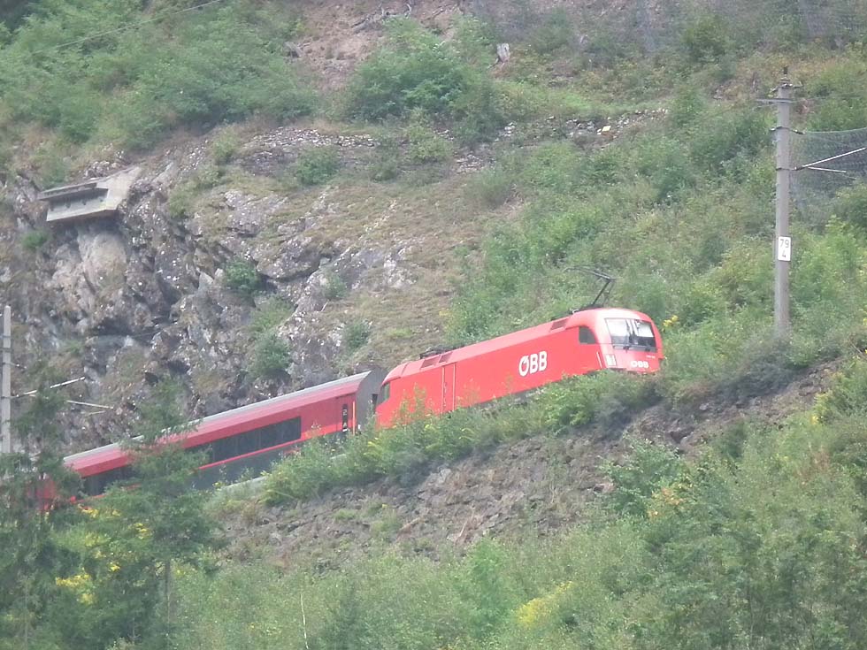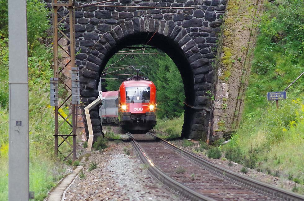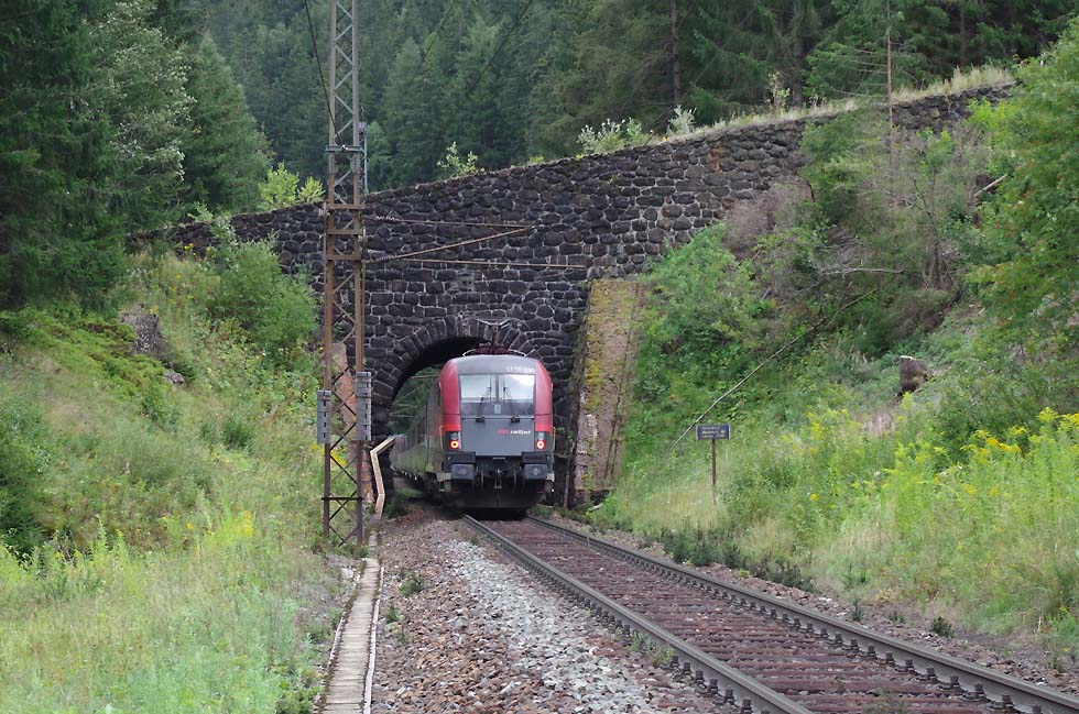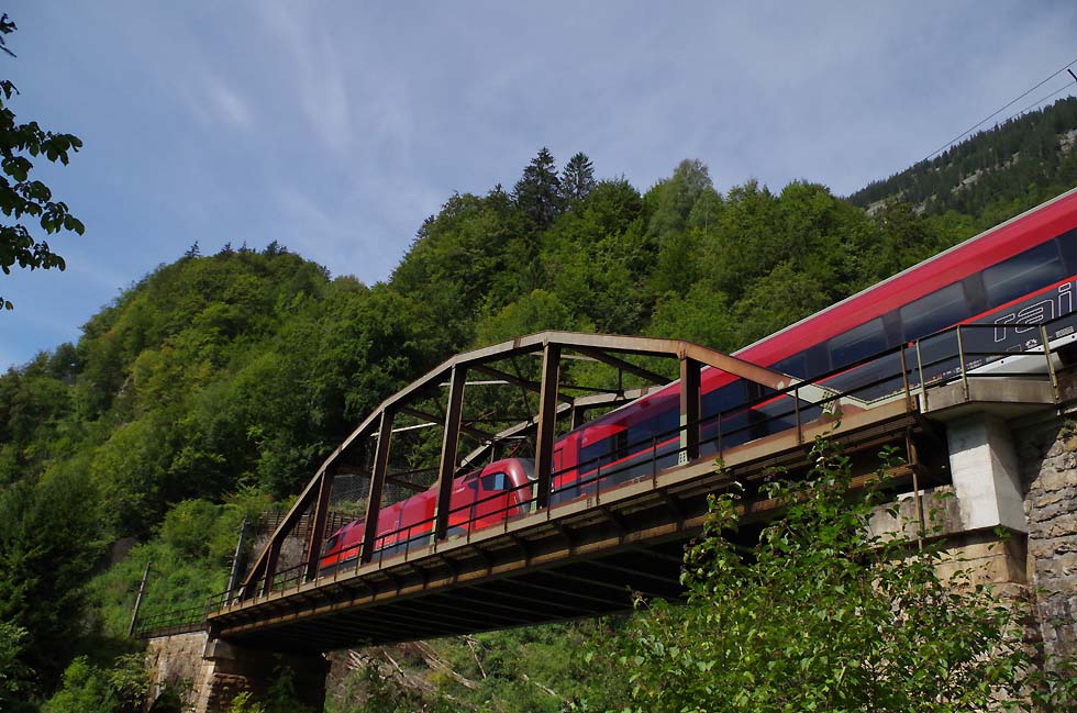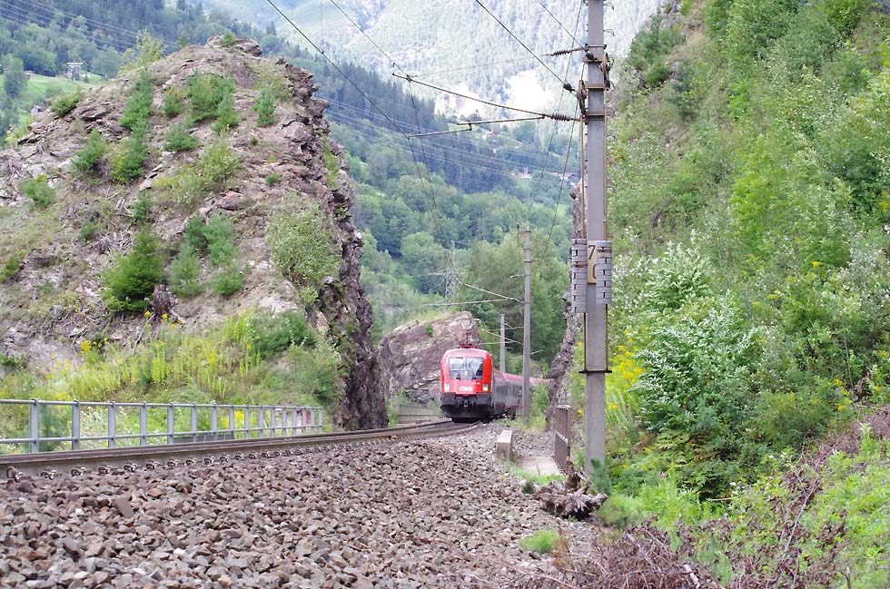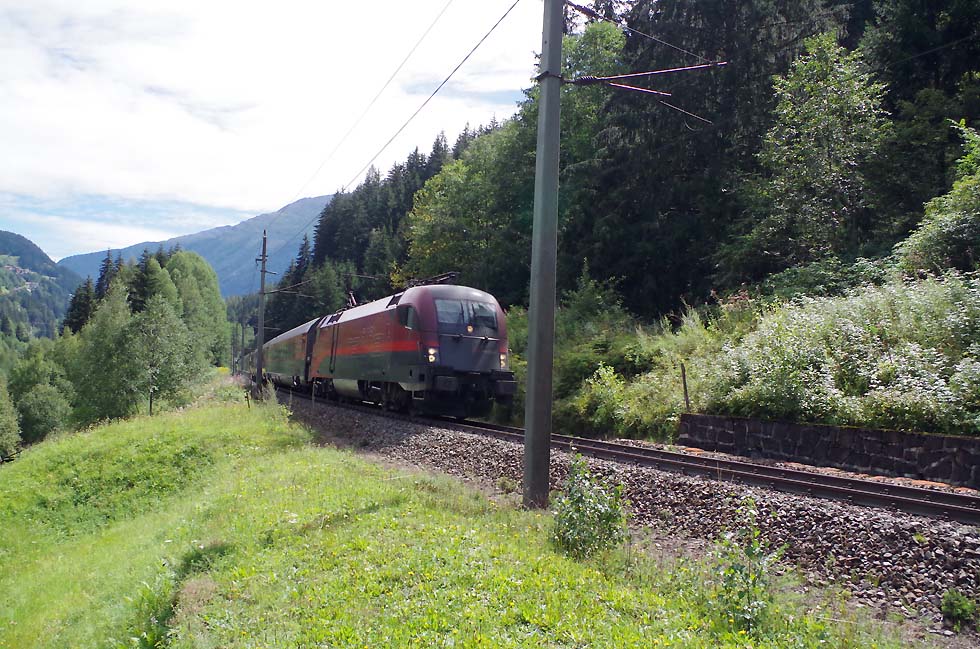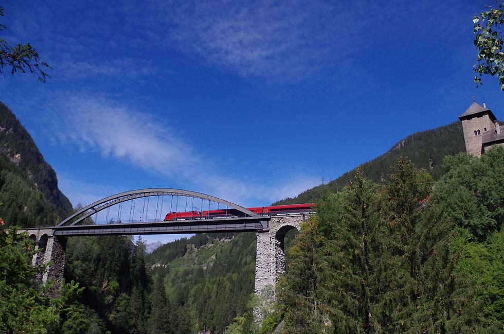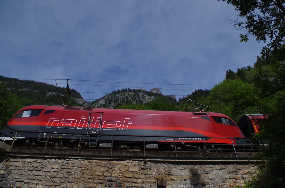 Der Arlberg ist zuweilen arg „Taurus-Lastig“. Was tun um das auszugleichen ? Den Taurus in der Landschaft stellen.... (oder in die...). Außerdem ist im Güterverkehr ja noch die gute alte (ja, sie werden langsam alt) 1044 / 1144 präsent. Und die eine oder andere Überraschung gibt es ja auch beizeiten. So also nachfolgend Schnappschüsse, Porträts und Totalen aus 14 Tagen hier und da, oder von ganzen Tagen, die Ost- und Westrampe der Arlbergbahn rauf und runter. ![]() ...das fängt ja gut an. Am ersten Tag in Landeck nicht schnell genug aus dem Auto, nur im Nachschuss 1142 613 mit Vorspann 1142 562 der StB bei Ausfahrt mit Container-Ganzzug Richtung St. Anton ![]() 1116 201 dafür in voller Pracht wenig später auch unterwegs in Richtung Ostrampe ![]() Anderes Ende in der Zugförderungsstelle Bludenz: 1063 050 hat Sonntagsruhe neben einem der beeindruckenden Schneepflüge der ÖBB ![]() 1144 028 zwei Gleise weiter auf Tuchfühlung mit dem Prellbock ![]() 1144 125 mit Vorspann 1144 046 und einem gemischten Güterzug wartet im Güterbahnhof auf die Weiterfahrt zur Westrampe ![]() ET 10.122 wartet am Bahnsteig auf neue Aufgaben... ![]() ..ebenso ET 10.121. Eigentümlicherweise habe ich im Montafon die 14 Tage nur ÖBB Talents fahren sehen ![]() 1116 193 mit einer Wiesel-Garnitur abgestellt auf der Ostseite ![]() Der Retrofit-Talent 4024 130 macht sich auf den Weg nach Lindau... ![]() ...4024 136 wird ihn auf dem Abschnitt A in Gleis 1 sodann beerben/vorrücken ![]() Das erste Mal nach Hintergasse, ein reiner Betriebsbahnhof an der Westrampe. Erstmal leider nur mit einem bergwärts fahrenden Railjet, 1116 221 schiebt... ![]() ...in den Tunnel. Man beachte die Außermittig verlegten Gleise ![]() Die in Bludenz schon fotografierten 1144er folgen unmittelbar danach. ![]() In Gegenrichtung der nächste Railjet macht sich mit seinen Fernlichtern im Tunnel rechtzeitig bemerkbar... ![]() ...1116 210 setzt sich wenige Augenblicke später gut in Szene ![]() Da das Wetter immer schlechter wird nach Langen, unters Bahnsteigdach, 11160 226 verläßt mit dem nächsten RJ eine Stunde später den Arlbergtunnel... ![]() ...und zieht sehr fotogen den Regen im Luftstrom des Dachstromabnehmers hinter sich her. ![]() Nächstes Meeting Ostrampe, hinter Pians eine 1116 mit der Dorkirche von Tobadill. Und-Glück gehabt, es zieht eine rote.... ![]() ...und es schiebt die eigentliche. Das war wohl der Steuerwagen kaputt... ![]() Neuer Fotopunkt: Klausbach Aquädukt, zwischen Strengen und Flirsch. Die Ostwärts schiebende 1116 230 offenbart das Potential... ![]() ...das 1116 122 Vorspann und Zuglok ? mit dem einzigen noch verkehrenden EC nach Zürich auf den nächsten drei Bildern voll ausschöpft. ![]() ![]() ![]() Nein, keine Modellbahn, Bhf. Strengen aus der Perspektive der anderen Talseite mit einem Doppel-RJ.... ![]() ...und 1116 218 als Porträt im Nachschuss. ![]() Zufallstreffer einer Werbelok vor einem RJ bei Pians ![]() Eine alte Stelle oberhalb der Zufahrt ins Paznaun hinter Pians, wiederum der EC mit 1116 1116. Die Stelle ist auch für eine Bildserie gut und einen Nachschuss auf die Trisannabrücke ![]() ![]() ![]() ![]() Und dann kommt, beim Abbauen, der offensichtlich verspätete Container-Ganzzug der StB vorbei.... ![]() ...und 1142 562 legt sich schön in die Kurve. Letztes Jahr zogen diesen Zug noch zwei ÖBB Tauri ![]() Die Trisannabrücke und ein RJ darauf darf nicht fehlen, hier mit Schloss Wiesberg.... ![]() ...und nochmal mit Tele. ![]() Und auch wieder eine Bewuchsfreie Stelle gefunden, um z.B. den Gegen-EC nach Wien im Morgenlicht zu knipsen.... ![]() und einen RJ in Gegenrichtung ![]() Bahntechnik im 21. Jahrhundert. ![]() Kein Wunder dass ein Railjet hier nicht schnell ist- zwischen Stregen und Flirsch... ![]() …und die Geräuschkulisse beim vorbeiziehen ist entsprechend! ![]() Szenenwechsel: nochmal Bhf. Hintergasse Richtung Bludenz: 1116 248 klebt am Berg und fährt gerade.... ![]() ...auf die Schanatobelbrücke ![]() So sieht das dann aus dem Tal aus. ![]() Und zum Schluss noch ein Zufallstreffer des 'Fehlfarben RJ' (der Steuerwagen ist gut eine Woche später wohl immer noch defekt...) im Berg bei Pians.... ![]() ...und das klassische Motiv: RJ auf der Trisannabrücke vom Talgrund. Text und Bilder: Holger Fuhr |
