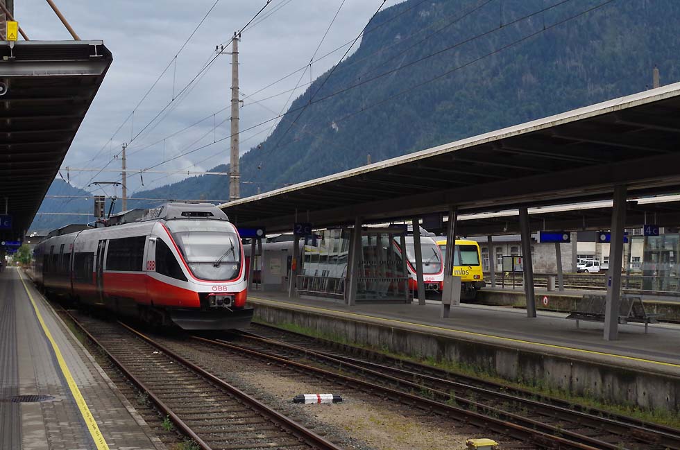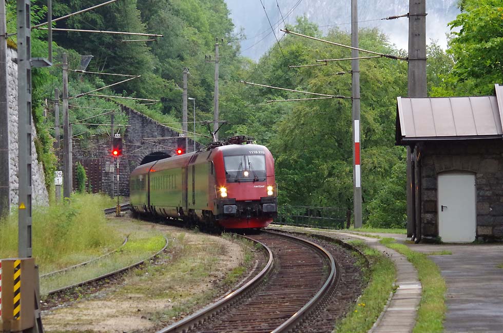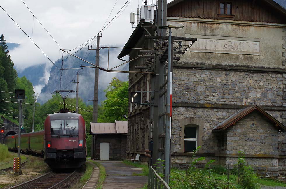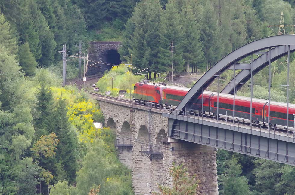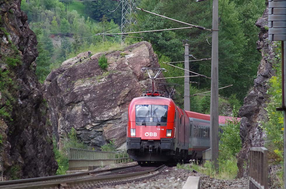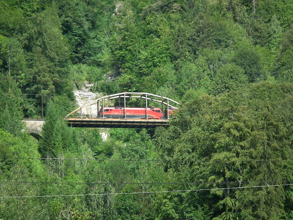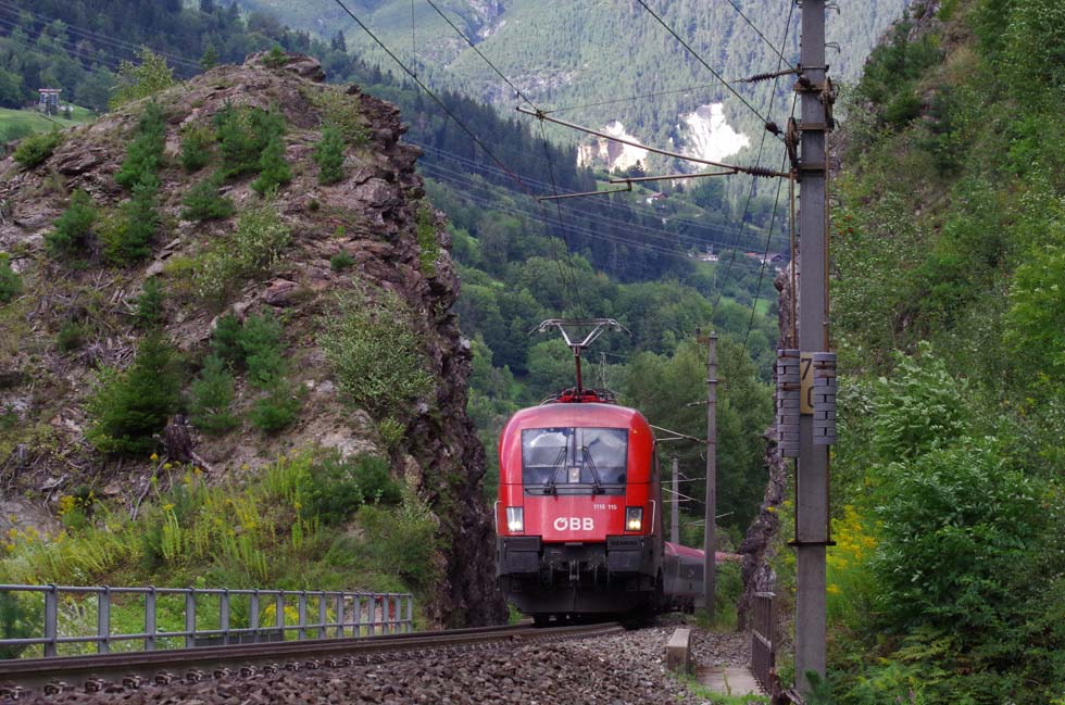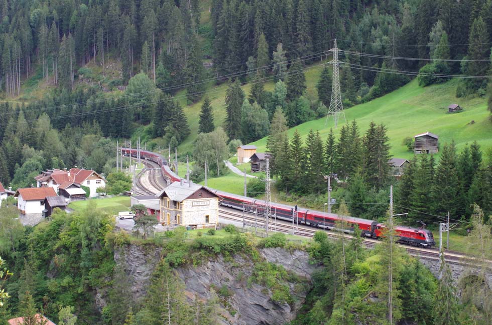 Der Arlberg ist zuweilen arg „Taurus-Lastig“. Was tun um das auszugleichen ? Den Taurus in der Landschaft stellen.... (oder in die...). Außerdem ist im Güterverkehr ja noch die gute alte (ja, sie werden langsam alt) 1044 / 1144 präsent. Und die eine oder andere Überraschung gibt es ja auch beizeiten. So also nachfolgend Schnappschüsse, Porträts und Totalen aus 14 Tagen hier und da, oder von ganzen Tagen, die Ost- und Westrampe der Arlbergbahn rauf und runter. ![]() ...das fängt ja gut an. Am ersten Tag in Landeck nicht schnell genug aus dem Auto, nur im Nachschuss 1142 613 mit Vorspann 1142 562 der StB bei Ausfahrt mit Container-Ganzzug Richtung St. Anton ![]() 1116 201 dafür in voller Pracht wenig später auch unterwegs in Richtung Ostrampe ![]() Anderes Ende in der Zugförderungsstelle Bludenz: 1063 050 hat Sonntagsruhe neben einem der beeindruckenden Schneepflüge der ÖBB ![]() 1144 028 zwei Gleise weiter auf Tuchfühlung mit dem Prellbock ![]() 1144 125 mit Vorspann 1144 046 und einem gemischten Güterzug wartet im Güterbahnhof auf die Weiterfahrt zur Westrampe ![]() ET 10.122 wartet am Bahnsteig auf neue Aufgaben... ![]() ..ebenso ET 10.121. Eigentümlicherweise habe ich im Montafon die 14 Tage nur ÖBB Talents fahren sehen ![]() 1116 193 mit einer Wiesel-Garnitur abgestellt auf der Ostseite ![]() Der Retrofit-Talent 4024 130 macht sich auf den Weg nach Lindau... ![]() ...4024 136 wird ihn auf dem Abschnitt A in Gleis 1 sodann beerben/vorrücken ![]() Das erste Mal nach Hintergasse, ein reiner Betriebsbahnhof an der Westrampe. Erstmal leider nur mit einem bergwärts fahrenden Railjet, 1116 221 schiebt... ![]() ...in den Tunnel. Man beachte die Außermittig verlegten Gleise ![]() Die in Bludenz schon fotografierten 1144er folgen unmittelbar danach. ![]() In Gegenrichtung der nächste Railjet macht sich mit seinen Fernlichtern im Tunnel rechtzeitig bemerkbar... ![]() ...1116 210 setzt sich wenige Augenblicke später gut in Szene ![]() Da das Wetter immer schlechter wird nach Langen, unters Bahnsteigdach, 11160 226 verläßt mit dem nächsten RJ eine Stunde später den Arlbergtunnel... ![]() ...und zieht sehr fotogen den Regen im Luftstrom des Dachstromabnehmers hinter sich her. ![]() Nächstes Meeting Ostrampe, hinter Pians eine 1116 mit der Dorkirche von Tobadill. Und-Glück gehabt, es zieht eine rote.... ![]() ...und es schiebt die eigentliche. Das war wohl der Steuerwagen kaputt... ![]() Neuer Fotopunkt: Klausbach Aquädukt, zwischen Strengen und Flirsch. Die Ostwärts schiebende 1116 230 offenbart das Potential... ![]() ...das 1116 122 Vorspann und Zuglok ? mit dem einzigen noch verkehrenden EC nach Zürich auf den nächsten drei Bildern voll ausschöpft. ![]() ![]() ![]() Nein, keine Modellbahn, Bhf. Strengen aus der Perspektive der anderen Talseite mit einem Doppel-RJ.... ![]() ...und 1116 218 als Porträt im Nachschuss. ![]() Zufallstreffer einer Werbelok vor einem RJ bei Pians ![]() Eine alte Stelle oberhalb der Zufahrt ins Paznaun hinter Pians, wiederum der EC mit 1116 1116. Die Stelle ist auch für eine Bildserie gut und einen Nachschuss auf die Trisannabrücke ![]() ![]() ![]() ![]() Und dann kommt, beim Abbauen, der offensichtlich verspätete Container-Ganzzug der StB vorbei.... ![]() ...und 1142 562 legt sich schön in die Kurve. Letztes Jahr zogen diesen Zug noch zwei ÖBB Tauri ![]() Die Trisannabrücke und ein RJ darauf darf nicht fehlen, hier mit Schloss Wiesberg.... ![]() ...und nochmal mit Tele. ![]() Und auch wieder eine Bewuchsfreie Stelle gefunden, um z.B. den Gegen-EC nach Wien im Morgenlicht zu knipsen.... ![]() und einen RJ in Gegenrichtung ![]() Bahntechnik im 21. Jahrhundert. ![]() Kein Wunder dass ein Railjet hier nicht schnell ist- zwischen Stregen und Flirsch... ![]() …und die Geräuschkulisse beim vorbeiziehen ist entsprechend! ![]() Szenenwechsel: nochmal Bhf. Hintergasse Richtung Bludenz: 1116 248 klebt am Berg und fährt gerade.... ![]() ...auf die Schanatobelbrücke ![]() So sieht das dann aus dem Tal aus. ![]() Und zum Schluss noch ein Zufallstreffer des 'Fehlfarben RJ' (der Steuerwagen ist gut eine Woche später wohl immer noch defekt...) im Berg bei Pians.... ![]() ...und das klassische Motiv: RJ auf der Trisannabrücke vom Talgrund. Text und Bilder: Holger Fuhr |