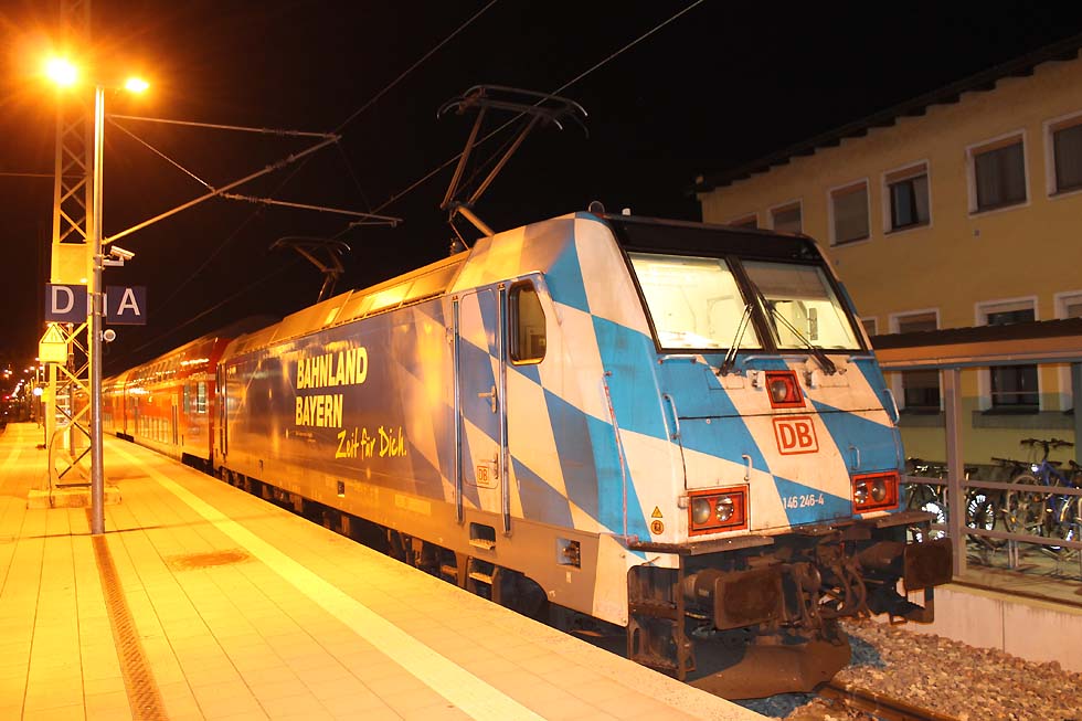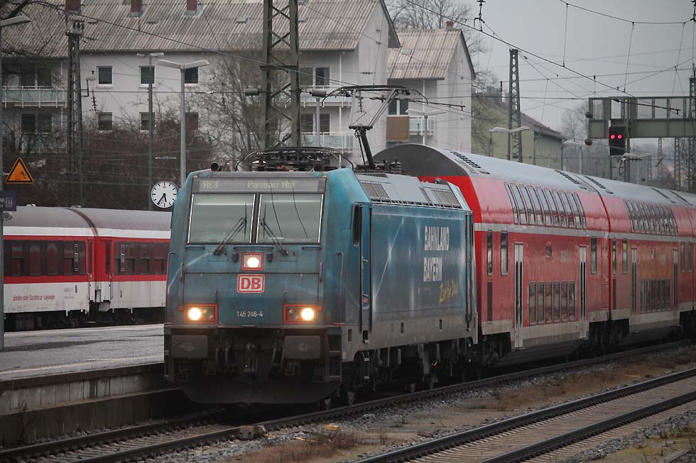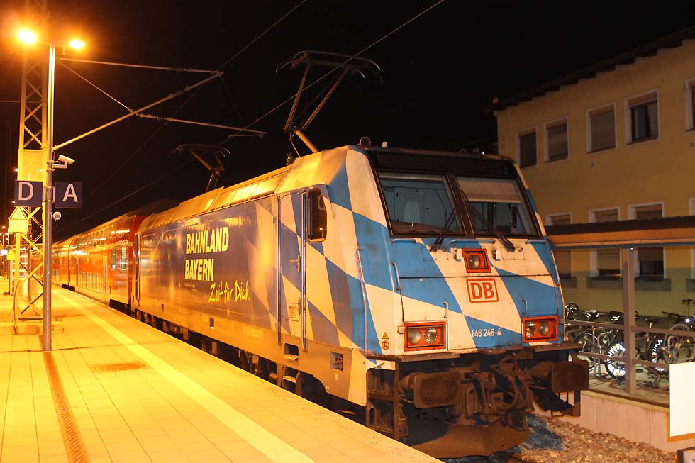 ![]() Am 11.03.2021 machte die Nürnberger 146 246-4 (Bahnlandbayern) mit ihren RE 4076 einen kleinen Abstecher nach Passau Hbf. ![]() Ihre Stammstrecke nach Passau Hbf fahren die Nahverkehrslokomotiven der Baureihe 111 nur noch recht selten. Mit der Inbetriebnahme der neuen Drehstromlok der 146 wurden die älteren Nahverkehrslokomotiven der Baureihe 111 vom Donau Isar Express verdrängt. Nur wenn keine 146er vorhanden ist erhalten die Nachfolgerlokomotiven von den Einheitslokomotive 110 die Strecke München - Passau und zurück. Am Donnerstag des 11. März.2021 hatte die Bahnlandbayern 146 246-4 vom Betriebshof Nürnberg ihren RE 4076 am Zughaken. ![]() Nach dem Gleiswechsel rangiert die Nürnberger 146 246-4 in das richtige Gleis und stellt den RE 4083 für die Reisenden bereit. Hier beim umsetzten. ![]() Am frühen Samstagmorgen hatte die Nürnberger 146 222-5 die erst seit 09.05.2020 im Betriebshof Nürnberg beheimatet ist den Regionalexpress 4063 nach München Hbf bespannt. ![]() Seit dem das Werk Nürnberg ihre neuen Drehstromlokomotiven der Baureihe 146 im Jahr 2006 erhalten hat ist diese Werbe Lok Bahnlandbayern nun die zweite die diese Folie trägt. Zuvor war es die Münchner 111 017-0 die ihre Bahnlandbayern Beklebung vom 22.11.2010 bis zum 20.09.2014 trug. 146 246-4 vom Betriebshof Nürnberg ist seit dem 17.09.2014 mit dieser Ganzreklame mit der Bahnlandbayern Aufschrift rund um Nürnberg unterwegs. Am 13.03.2021 bespannte 146 246-4 ihren RE 4058 aus München Hbf und hatte um 08:37 Uhr einfahrt auf Gleis 6 in den Personen Bahnhof von Passau. ![]() 146 246-4 vom Betriebswerk Nürnberg hatte am 13.03.2021 folgenden Umlauf ab Passau Hbf: RE 4058 (München Hbf ab 06:24 - 08:37 Passau Hbf), RE 4065 (Passau Hbf ab 09:19 - München Hbf 11:35), RE 4070 (12:24 München Hbf - 14:39 Passau Hbf), RE 4077 (Passau Hbf ab 15:19 - 17:37 München Hbf und 4084 (18:24 München Hbf - 20:39 Passau Hbf). ![]() In wenigen Minuten wird 146 246-4 mit ihren RE 4065 den Passauer Hbf verlassen und zurück nach München schieben. ![]() Am ehemaligen Österreicher Haus war am Donnerstagabend die MRCE Mehrsystem 189 990-5 abgestellt und wartet auf ihren nächsten Einsatz. ![]() Am Donnerstagabend so gegen 16:30 Uhr verlässt dieser Siemens Vectron der Baureihe 193 265-6 den Passauer Güterbahnhof und fährt in richtung Österreich. ![]() 193 753 bespannte am 11.03.2021 einen Güterzug und brachte ihn nach Passau Hbf. Hier durchfährt 193 753 mit ihren Zug am Haken den Passauer Poststeg. ![]() Aus Richtung Österreich brachte 1016 003 diesen Güterzug und hatte Durchfahrt durch den Passauer Personenbahnhof. ![]() Am Vergangenen Donnerstag des 11.03.2021 wartete diese Lokomotive der Baureihe 1110 524 mit Tschechische Wagen auf die weiterfahrt. ![]() Nach dem die 1110 524 der Regionalbahn ihre tschechischen Wagen umfahren hat wartet sie nun auf Gleis 8 der Abstellung auf die Rückfahrt nach Österreich. ![]() Da das Gleis nicht oft benutzt wird sieht man an dem Funken am Stromabnehmer der Lok. Mit dem Ausfahrt Signal im Passauer Hbf geht die Rückreise nach Österreich los. ![]() 1116 279 bespannte am 11.03.2021 einen langen Güterzug in Richtung Österreich. ![]() Auf Gleis 6 hatte am 11.03.2021 die Österreichische 1144 067-6 ihren Regionalexpress 1784 nach Passau bespannt und hatte um 17:11 einfahrt. ![]() Auf Gleis 5 wartet die Österreichische Regionalbahn 5937 auf die Rückfahrt nach Wels Hbf. ![]() Seit einiger Zeit kommen auch diese Elektro Triebwagen nach Passau wie am Samstag des 13.03.2021. Am 13.03.2021 hatte dieser Doppelstock Triebwagen der 4110 116 mit dem Intercity 95 der an Vortag um 20:21 Rostock verlassen hat um 08:24 Uhr in Passau einfahrt auf Gleis 2 ![]() Am 11.03.2021 hatte ein Mühldorfer VT 628 mit seiner Regionalbahn Einfahrt in den Passauer Hbf. ![]() Am 11. März.2021 verlässt ein VT 628 566 der Südostbayernbahn den Passauer Hbf in Richtung Mühldorf. ![]() Im Strömenden Regen warteten am 11.03.2021 diese Tschechische Wagen auf die Abholung die bald erfolgen wird. ![]() Ein Außergewöhnliches Triebfahrzeug besuchte am 13.03.2021 die Dreiflüssestadt von Passau Hbf. Nach einem Personalwechsel ging es in Richtung Güterbahnhof weiter. ![]() Am 19.03.2021 bespannte die Nürnberger 146 242-3 ihren Regionalexpress 4064 und hatte um 11:37 einfahrt Auf Gleis 6. Hier verlässt 146 242-3 ihr Gleis 6 und rangiert in die Richtung vom Passauer Güterbahnhof. ![]() Ein VT 628 629 der Südostbayernbahn hatte um 11:53 mit der Regionalbahn 27219 einfahrt in den Passauer Hbf. ![]() Nach dem Umsetzten rangiert 146 242-3 Ihren RE 4071 auf Gleis 3 für die Reisenden an den Bahnsteig. ![]() Am 19.03.2021 war 186 501-3 der Railpool GmbH in der ÖBB Abstellung des Passauer Hbf abgestellt und wartet auf die nächste Arbeit. ![]() Die 193 764-8 der European Locomotive Leasing bespannte am 19.März.2021 einen Langen Kesselwagen Zug nach Österreich. Die Lok trägt seit 2021 diese Folie mit der Frachtbahn Werbung. ![]() 185 047-8 hatte am 19.03.2021 einen langen Güterzug bespannt. ![]() Im Bahnhof Passau wartete am Freitag des 19.03.2021 eine Regionalbahn nach Mühldorf Obb. Der Mühldorfer 628 628-9 von der Südostbayernbahn wird mit Regionalbahn 27230 um 14:06 die Rückfahrt nach Mühldorf antreten. ![]() Am ehemaligen Österreicher Haus auf Gleis 140 angekommen wird sich 193 753 der European Locomotive Leasing Wien über das Wochenende ausruhen und auf die nächste Planleistung warten. ![]() Zum Abschlussdienst gehört auch die Kontrolle der Stromabnehmer dazu. Am 19.03.2021 wird 193 753-1der European Locomotive Leasing gerade abgerüstet. ![]() Auch die neueren Lokomotiven der Firma Stadler sieht man nun relativ Oft in Passau oder in Mühldorf wenn sie einen Güterzug überführen. Am 25. März.2021 pausiert 159 222-9 mit ihren Spitzname Lena in der Abstellung des Passauer Hbfs. ![]() Am ehemaligen Österreicher Haus war am 25.03.2021 die RTB Cargo Lokomotive von der Railpool abgestellt und wartet au