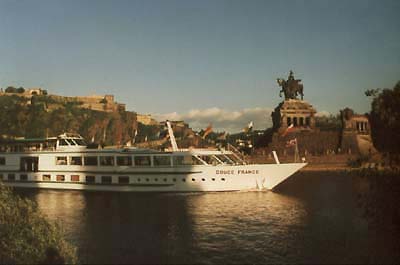 Pikanterie am Rande: genau vor Kaiser Wilhelm beziehungsweise seinem Denkmal wendet ein französisches Flusskreuzfahrtsschiff mit dem Namen "Douce France" [18408]. Unter Wilhelm I hätte das bestimmt diplomatische Verwicklungen gegeben!