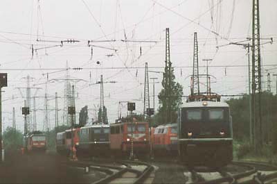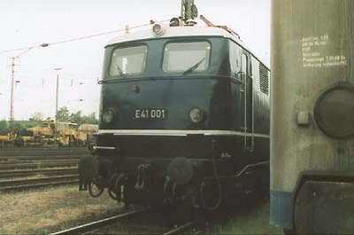 Ein Blick auf die wartenden Loks der Parade mit der anrückenden E41 001 lässt mich stutzen...