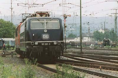"Ganz zufällig" kommen wir hinter dem Koblenzer Bahnhof vorbei, und da steht doch tatsächlich 181 201! Schnell einen Parkplatz suchen, und dann vom Parkdeck aus ein Foto.