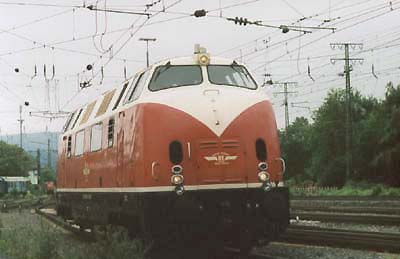 Der letzte Teilnehmer fuhr mit sonorem Grummeln vorbei - die neue V 200° der Brohltalbahn durfte den Ausputzer machen.