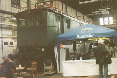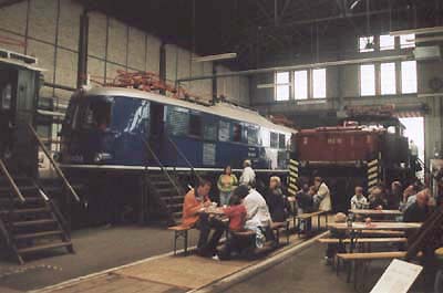 Jetzt wollten wir die anderen Fahrzeuge noch sehen. In der Halle machten sich 118 003 und E60 10 als Kulisse vor vielen Leuten nützlich.