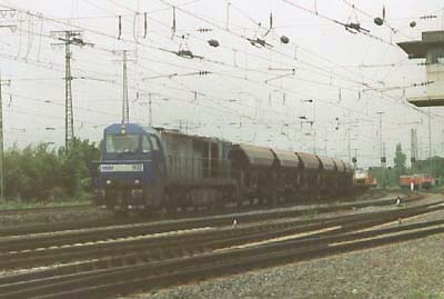 ...und dann zieht eine MaK G2000, die RAG 902, einen Ganzzug aus dem Bahnhof. So skurrile Loks nimmt man natürlich auch mit!
