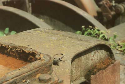 Ein im Gebüsch liegendes Drehgestell eines 430, wie mir scheint, beherbergt jetzt Zauneidechsen. Man ist Besuch gewöhnt, also liegt die Fluchtdistanz niedrig.