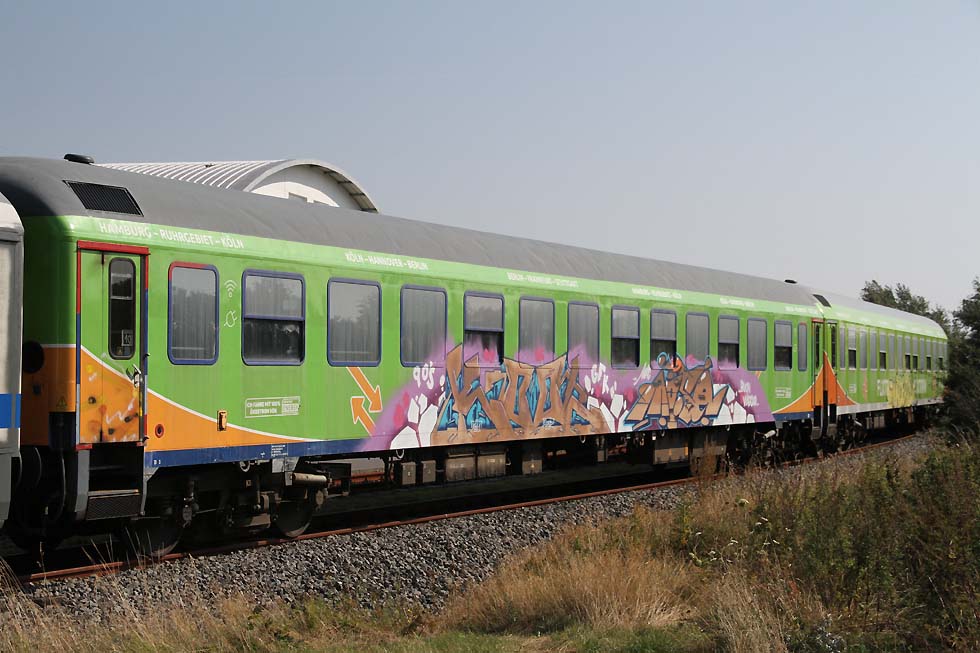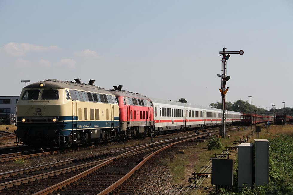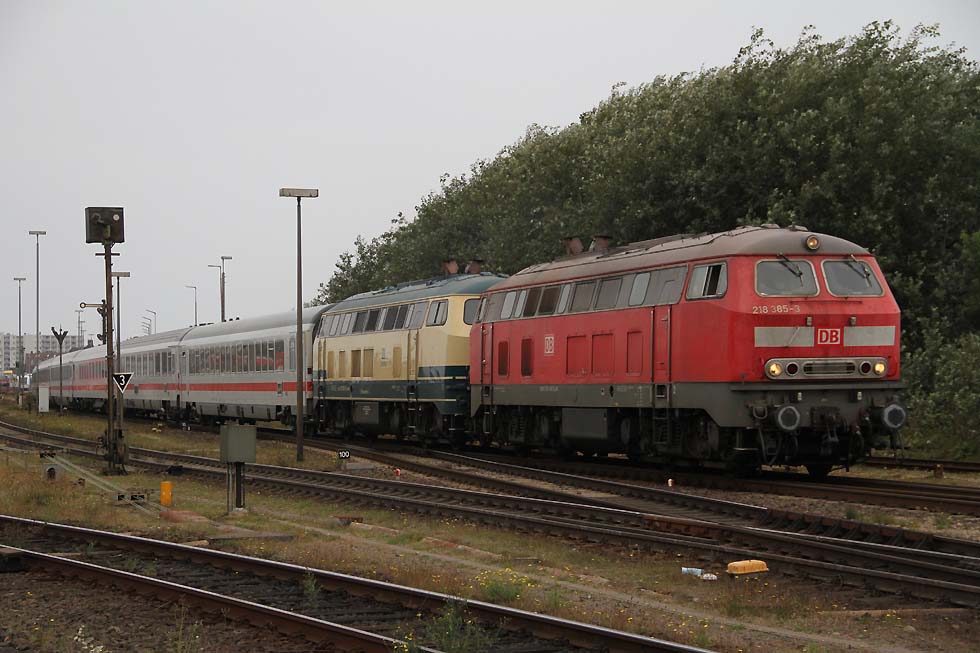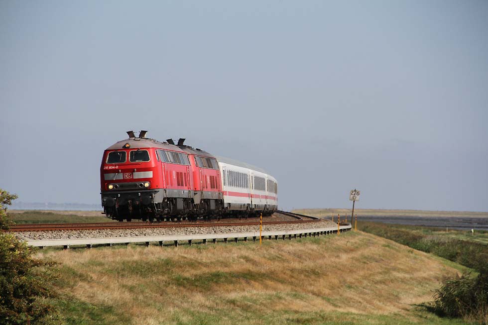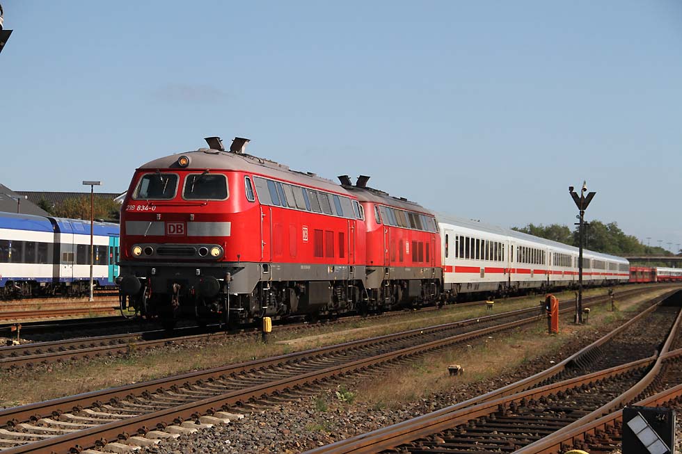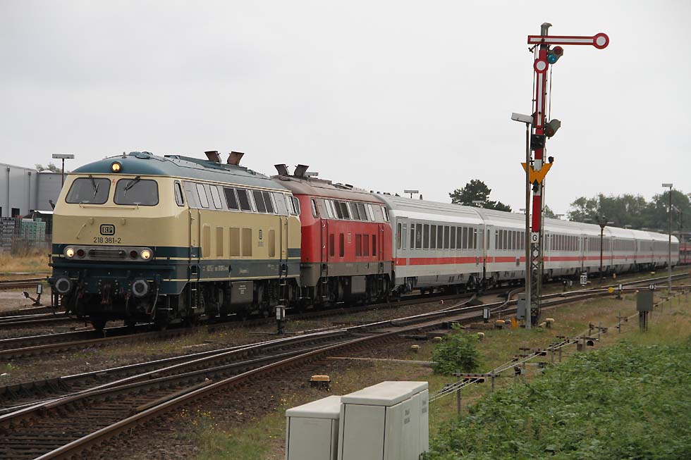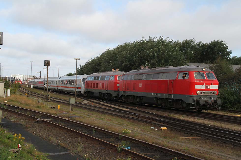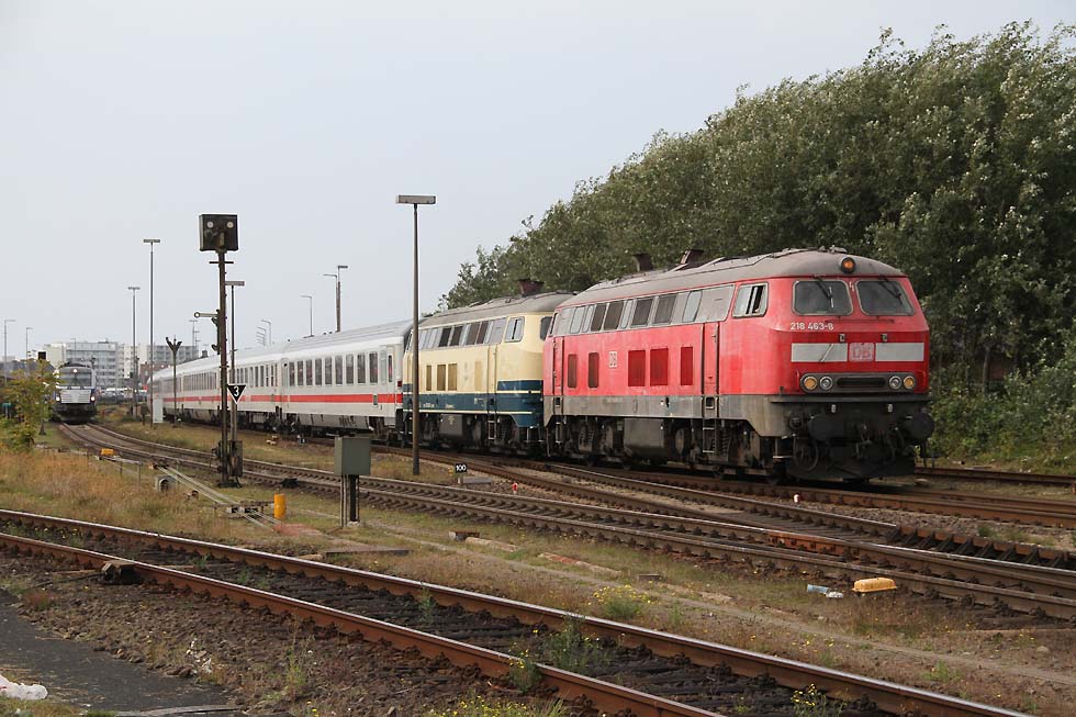 ![]() 218 463+218 490 mit IC 2073 Westerland-Dresden von Westerland kommend in Richtung Damm, 01.09.2021.