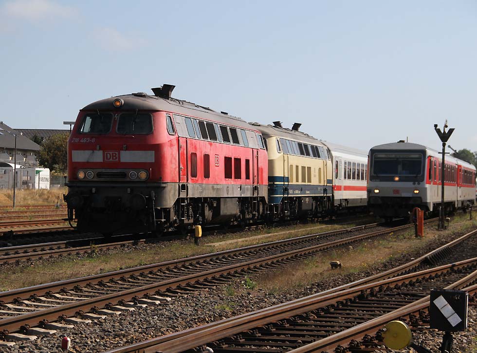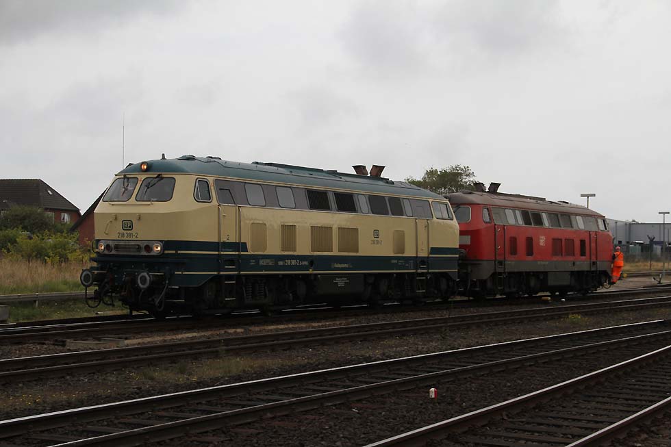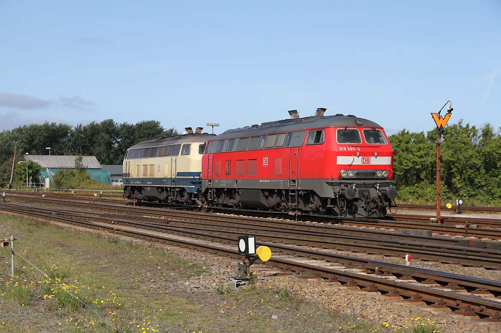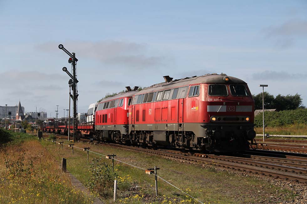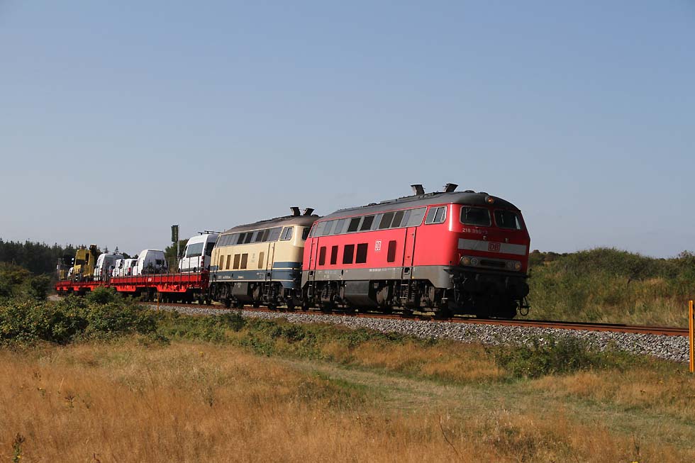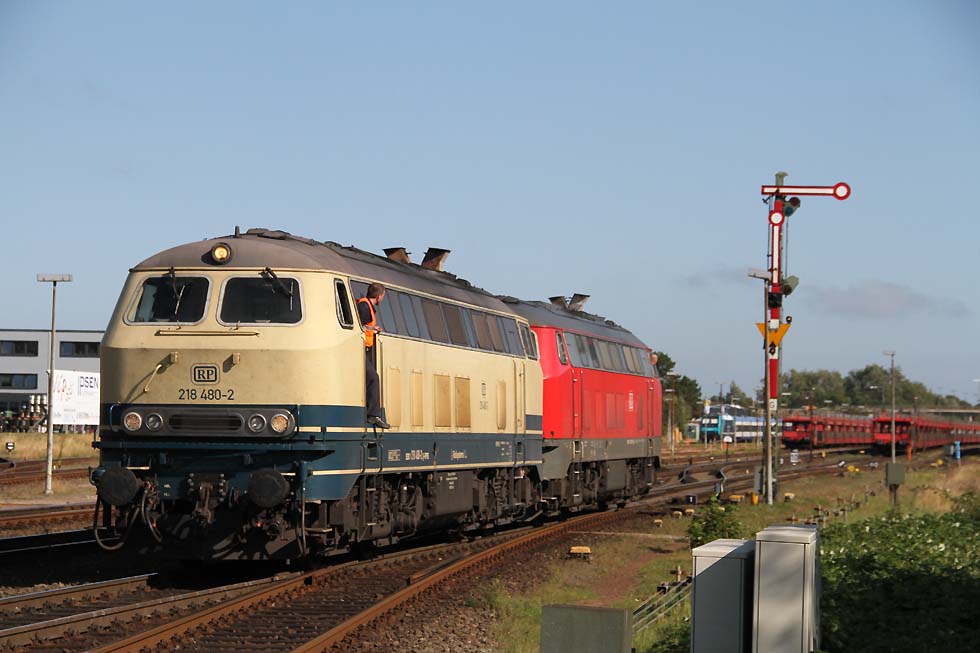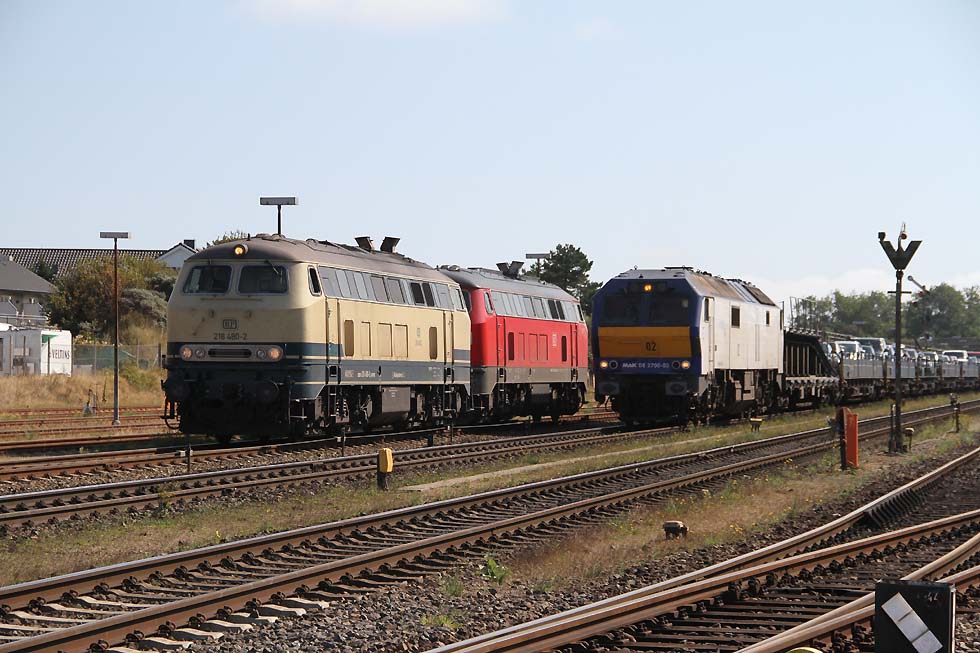 ![]() Railsystems 218 480+ eine 218 der DB beim Rangieren in Westerland, 31.08.2021. ![]() 928/628 502 'Keitum' beim Rangieren in Westerland, 31.08.2021. ![]() Railsystems 218 480+ eine 218 der DB mit Sylt Shuttle bei der Einfahrt in Westerland, 31.08.2021. ![]() 218 380+ eine weitere 218 mit IC bei der Ausfahrt aus Westerland Richtung Niebüll, 31.08.2021. ![]() RDC 251 002 mit Autozug Sylt bei der Einfahrt in Westerland, 31.08.2021. ![]() 218 491+218 838 mit Sylt Shuttle bei der Ausfahrt aus Westerland Richtung Niebüll, 31.08.2021. ![]() 218 834 und eine weiter 218 mit IC bei der Einfahrt in Westerland, 31.08.2021. ![]() 245 213 mit RE6 bei der Bereitstellung zum Bahnsteig, 31.08.2021. ![]() 218 385 neben 245 027 mit Sylt Shuttle in Westerland, 31.08.2021. ![]() RDC 251 002 beim Rangieren in Westerland, 31.08.2021. ![]() 218 463+218 von Railsystems mit IC bei der Einfahrt in Westerland, 31.08.2021. ![]() 628/928 503 'Morsum' beim Rangieren in Westerland, 31.08.2021. ![]() Railsystems 218 480+ 218 385 warten auf neue Aufgaben. Daneben kommt RDC 251 002 mit dem Autozug Sylt rein nach Westerland, 31.08.2021.