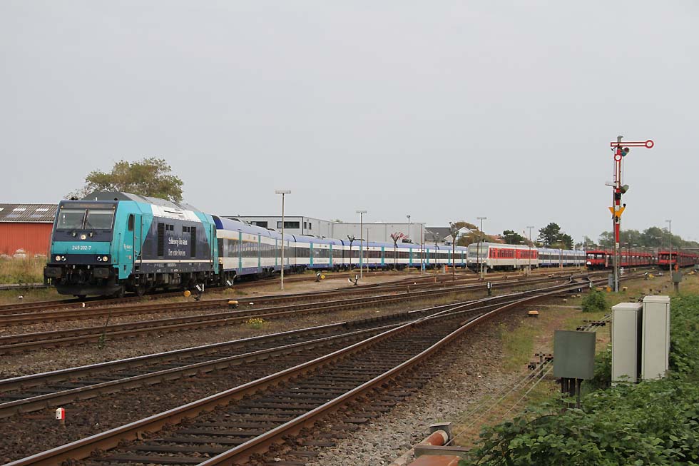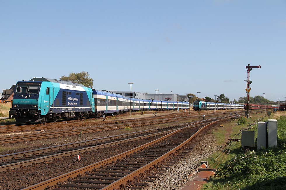 ![]() RDC 247 909 mit Autozug Sylt bei der Ausfahrt in Westerland Sylt Richtung Sylt, 31.08.2021. ![]() Railsystems 218 447+218 390 beim Rangieren in Westerland, 31.08.2021. ![]() Railsystems 218 447+218 390 beim Rangieren in Westerland, 31.08.2021. ![]() RDC 247 909 beim Rangieren mit Autozug Sylt in Westerland, 31.08.2021. ![]() 245 027 mit Sylt Shuttle bei der Ausfahrt aus Westerland Richtung Niebüll, 31.08.2021. ![]() RDC 247 909 beim Rangieren in Westerland, 31.08.2021. ![]() DB 245 209 mit RE6 von Hamburg Altona bei der Einfahrt in Westerland, 31.08.2021. ![]() RDC 247 909 (ANNE) mit Autozug Sylt bei der Einfahrt in Wester, 31.08.2021. ![]() DB Fernverkehr 245 027 beim Bereitstellen des Sylt Shuttle in Westerland, 31.08.2021. ![]() DB Fernverkehr 218 833 und eine weitere 218.8 beim Bereitstellen eines IC in Westerland(Sylt), 31.08.2021. ![]() DB Fernverkehr 218 390+ Railsystems 218 447 beim Rangieren mit Sylt Shuttle in Westerland(Sylt), 31.08.2021. ![]() 245 mit Sylt Shuttle von Keitum kommend in Richtung Morsum-Niebüll, 01.09.2021. ![]() Doppel 218 mit Sylt Shuttle kurz vor Keitum in Richtung Westerland, 01.09.2021.