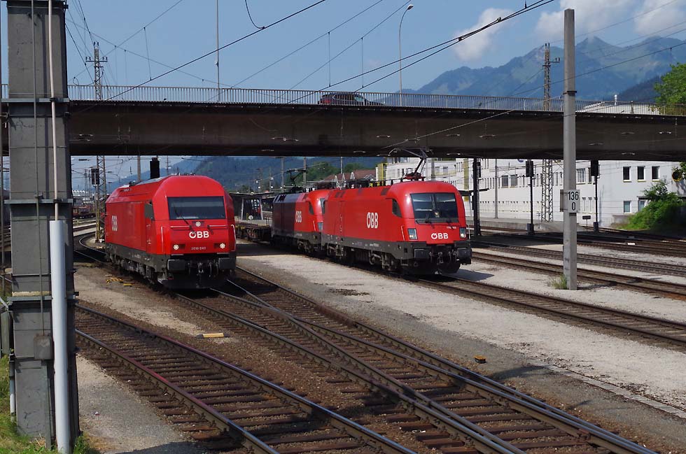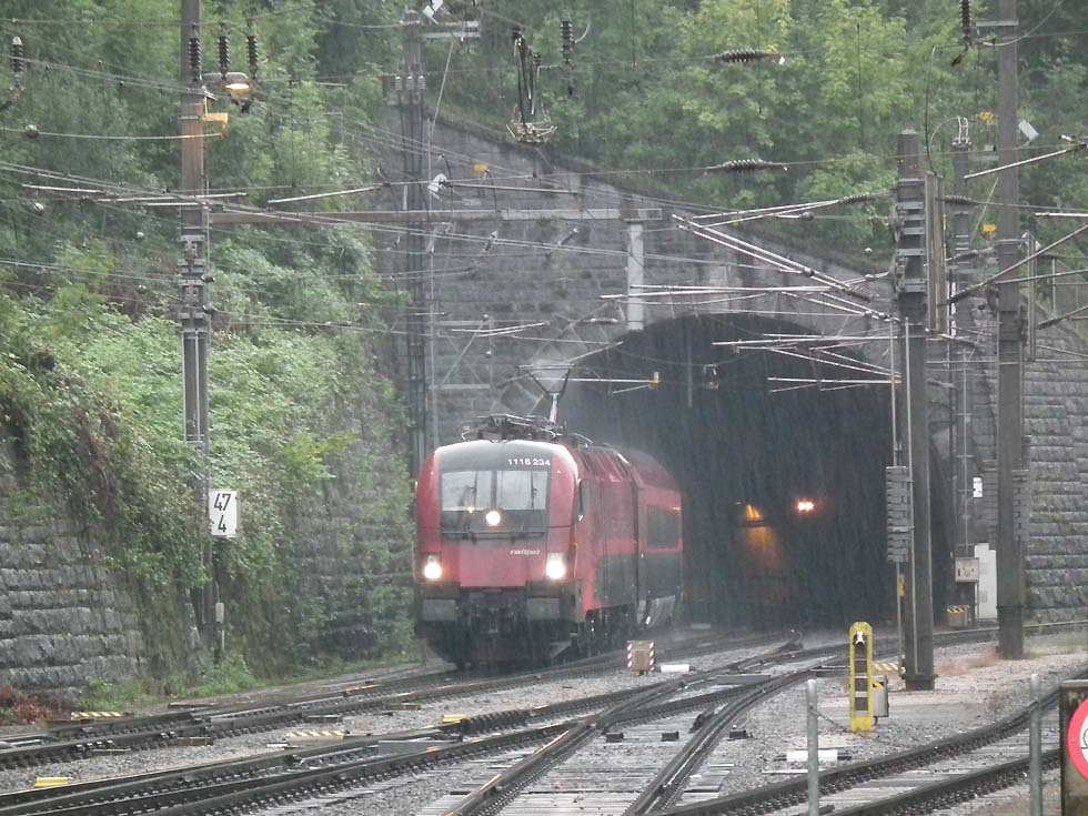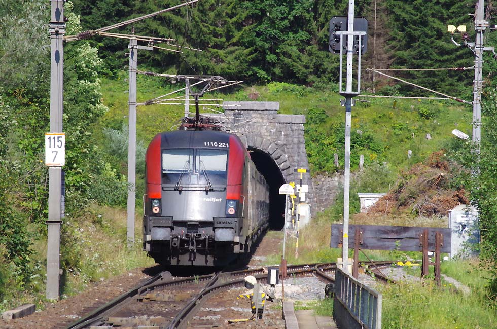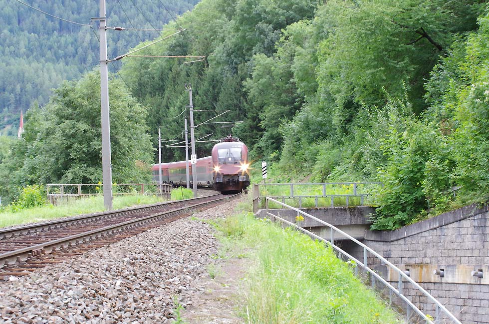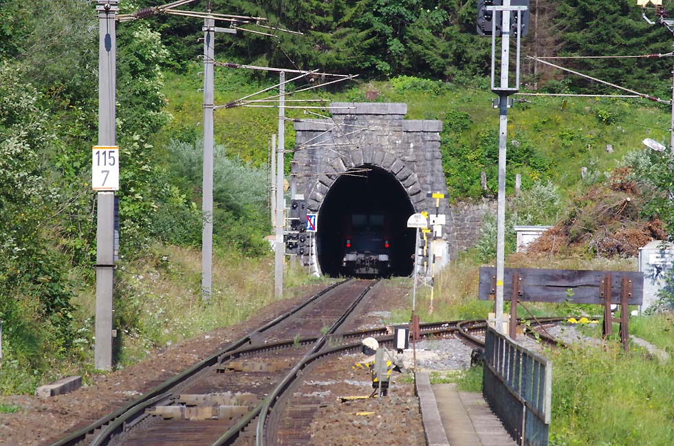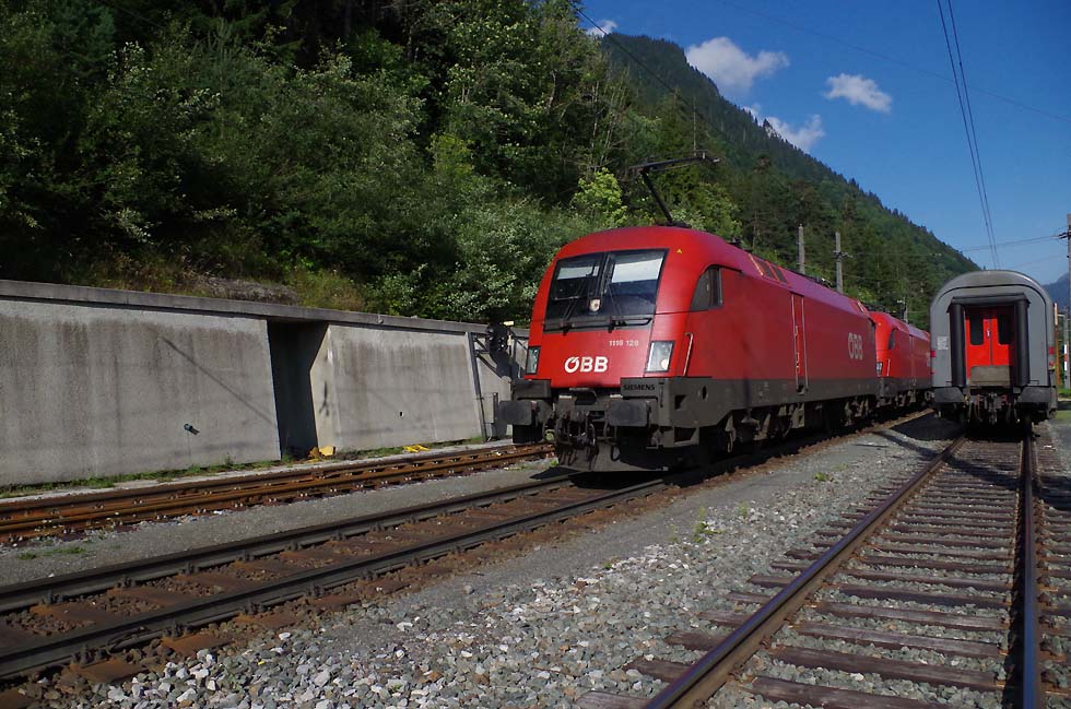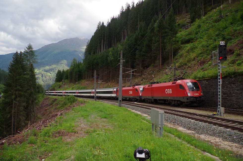 August = Zeit um sich im Paznaun blicken zu lassen. Und sich Zeit für Abstecher zum Arlberg zu nehmen. Dies Jahr sehr Taurus-lastig. Aber wie immer: in der Landschaft in Szene gesetzt.... und für 2021 von West nach Ost sortiert, unabhängig von den Aufnahmetagen ![]() 1116 140 Vorspann und ein unerkannter Taurus beweisen, dass auch Sauwetter gute Fotos ermöglicht, Feldkirch in Richtung Bregenz ![]() Auch 1116 234 setzt sich beim Verlassen des Tunnel unter der Festung ähnlich gut ins Bild. Gott sei Dank der einzige Tag Sauwetter bei Kamerapirsch ![]() Zwar nur Dieselelektrisch, aber mit dem Rangierer in der Tür ein gelungener Schnappschuss im Bahnhof Bludenz: 2016 043 ![]() Und dahinter wartet 1116 097 mit Vorspann 1116 143 und einem Gütezug auf Ausfahrt Richtung Westrampe ![]() Da sie nur selten für Übergaben nach Bludenz kommt, ist V 10.017 der Montafonderbahn beim heimdieseln nach Schruns ein paar MB auf dem Speicherchip wert. ![]() 1116 097 Vorspann (wieder einmal....) und 1116 093 als Zuglok mit schwerer Last bergan bei Stallehr Richtung Arlberg ![]() Nochmal Diesel auf einem Bauzug in Braz Bhf. Als Selbst-Unimogbesitzer musste der U 416 aufs Bild! ![]() Ein Taurus schiebt seinen Railjet bergwärts zum Arlberg, westlich Bhf. Braz ![]() 1116 240 an gleicher Stelle talwärts wenig später ![]() Und die ÖBB schicken unmittelbar danach einen kurzen Gemischtwarenladen bergwärts, der in Braz gewartet hatte. CAT 1016 016 in ganz und gar fremden Gefilden mit 1116 266 als Vorspann ![]() Da er nun mal so schön in die Landschaft passt... ![]() ...noch zweimal hinterherschüsse. ![]() In Hintergasse 1116 212 talwärts im nicht-Stillleben mit EG und Tunnel ![]() 1116 221 schiebt ihren RJ in den Wildentobeltunnel Richtung Langen, oberhalb Bf. Wald ![]() Und weg ist sie (fast...) ![]() Im Bf. Wald keucht 1144 033 mit dem EC Hamburg-Innsbruck bergan. Eine der wenigen Leistungen die 1144 noch im Reisezugdienst erbringen. ![]() Und da zu spät muss sie in Wald den entgegenkommenden EC Wien-Zürich abwarten. 1116 128 macht heute Vorspann, 1116 128 zieht. Zu beachten: die Einhausung als Schutz vor der Materialseilbahn / Baustelle Spullersee ![]() Zuglok blieb leider unerkannt ![]() Schattenspiele mit 1116 218, die einen RJ bergwärts in die Lawinengalerie zwischen Wald und Klösterle schiebt ![]() Mit dem Gegenzug kommt 1116 211 einige Minuten später talwärts wieder ins Tageslicht... ![]() ...und taucht wenige Augenblicke später in den Wildentobeltunnel ![]() 1116 241 fährt gut eine Stunde später mit dem nächsten RJ bergwärts in den Blisadonatunnel... ![]() ...und der Gegenzug (die begegnen sich planmäßig im Arlbergtunnel) mit 1116 234 wenige Minuten später talwärts.... ![]() ...und hinterher -mit ohrenbetäubenden Lärm über Minuten schon im Tunnel zu hören -ein Taurus-Doppelpack mit 1200 t Gemischtwarenladen im Schlepp talwärts ![]() Halbzeit und Zeit für die Ostrampe, A1 1116 231 talwärts im Vorfeld des Bf. Strengen ![]() Schöne Stelle, also noch ein Nachschuss ![]() In Gegenrichtung der EC Wien-Zürich, 1116 190 zieht, Vorspann ist 1116 128 ![]() Direkt am Bü im Bahnhof 1116 222 mit einem talwärts nach Landeck fahrenden RJ ![]() Bergwärts fahrender RJ verlässt den Moltertobeltunnel und fährt auf der Geigertobelbrücke Richtung Strengen ![]() Das Tele mit 500 mm oberhalb von See im Paznaun (!) im Einsatz; RJ auf der Trisannabrücke ![]() Und einer von Nahem... ![]() ...und ganz nah ![]() Glückstreffer, direkt danach ein Güterzug talwärts, man beachte den Robel Rottenkraftwagen der direkt hinter den Loks eingestellt ist ![]() Auf der Burgfriedbrücke zwischen Pians und Trisannabrücke, noch'n RJ ![]() Pians, noch mal ein Güterzug talwärts mit 1016 027 als Vorspann... ![]() ...und die Buchstaben und Zahlen auf der Front haben schon bessere Zeiten gesehen. Zuglok 1016 022 ![]() Scrat nutzt die Pause um mal eben die Bahnhofsseite zu wechseln.... ![]() ...bevor sich 1116 128 und 1116 190 (s. auch Bilder Strengen) am Aquädukt in Pians bergwärts in Szene setzen ![]() 1116 206 hinter Landeck Perfuchs bergwärts überquert die Straße nach Tobadill... ![]() ...Gegenzug talwärts mit 1116 213 ![]() 1116 239 bergwärts hinter der Innbrücke in Landeck kurz vor Perfuchs ![]() Feierabendruhe von 1063 047 und 1144 286 in Landeck ![]() Lz mit zwei 1144 (029 und 258) am Bü unter der Straßenbrücke ins Pitztal / Bf. Imst ![]() Talent bei Einfahrt nach Bf. Imst-Pitztal ![]() In Gegenrichtung ein RJ bei der Einfahrt Richtung Landeck ![]() EC Zürich-Wien in der Innschlucht hinter Imst in Richtung Ötztal, 1116 128 ….und 190 ![]() 4024 075 frisch saniert im Bf. Ötztal Richtung Innsbruck... ![]() ...und Gegenzug 'Old Style' 4024 109. Zum Schluß nochmal zurück und ein Abstecher ins Montafon ![]() In Schruns bewegt sich von der MBS nicht mehr viel. Umso besser, dass die MBS schon mal umräumen muß und ihre arbeitslosen Triebwagen vor die Tür stellt ![]() Und in die Remise nur mit 'Muff' über den Puffern, um Fettflecken an den Klamotten zu verhindern! ![]() Im Hinterhaus stehen die Schätze: Turmtriebwagen, im Hintergrund der letzte Plattformwagen, der schon länger nicht mehr in St. Anton im Montafon hinterstellt ist ![]() Ich muss draußen bleiben.... Für ET 10.108 als ältesten Rentner ist kein Platz in der Remise, er ist in Tschagguns am Kopfgleis der ehem. Güterabfertigung hinterstellt ![]() Die Ferkel hatten ihn leider auch gefunden.... ![]() Eine Woche später - er war nach Schruns in die Werkstatt gekommen - ist das Geschmiere weg. Leider hat der Lack aber arg gelitten. Text und Bilder: Holger Fuhr |