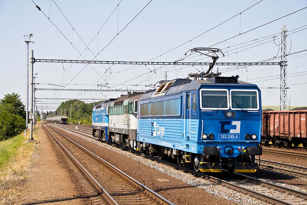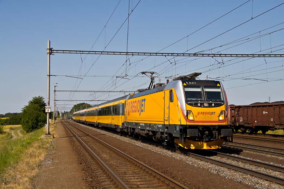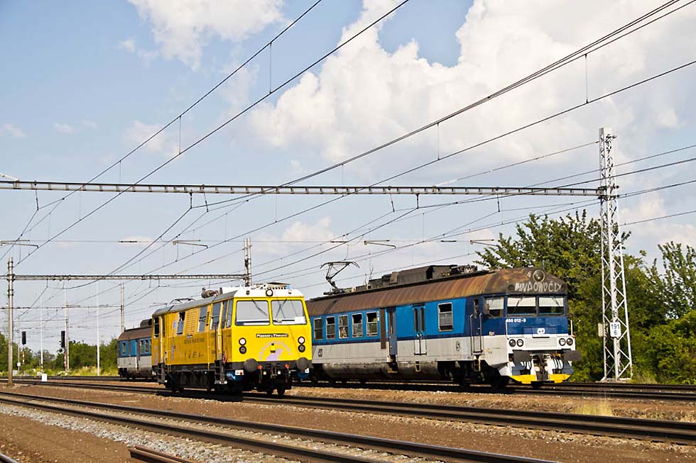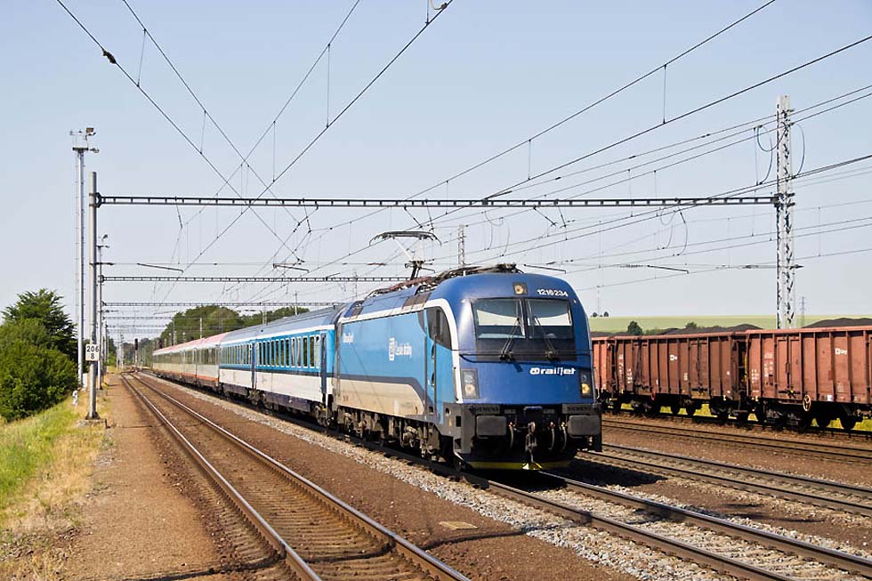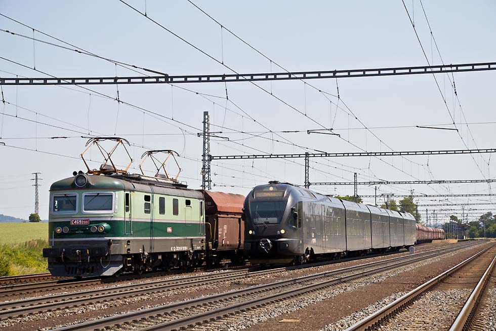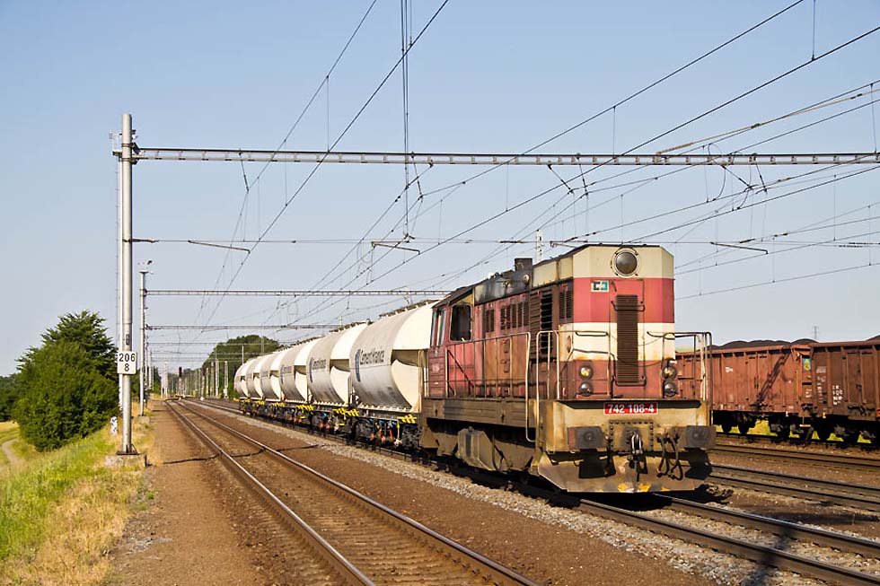 Möglichst nah rund um die Sonnenwende gönnte ich mir auch in diesem Jahr eine Tagesreise nach Mähren, um im örtlichen Gleichstromnetz Ausschau nach lokalen Schönheiten zu halten. Am Weg zum ersten Fotoplatz des Tages hielt ich für ein Foto der dort ausgestellten L610 X01 in der Kleinstadt Stare Mesto an. Das fotogen ausgestellte Flugzeug befindet sich inmitten von weiteren Schönheiten des osteuropäischen Fahrzeugbaus, sofern einem die Namen Liaz oder IFA ein Begriff sind. Erneut unterwegs, kam ich an einer Eisenbahnkreuzung bei Hulin zu einem Zwischenstopp und bemühte mich ob der kurzen Reaktionszeit das Beste aus dem vorbeifahrenden Regioshark Triebwagen zu machen. Danach setzte ich die Fahrt fort und konnte schon bald am östlichen Ende des Bahnhofs Drahotuse loslegen. Die ÖBB bzw. Railcargo Austria war mit den Lokomotiven der Reihe 1293 oft anzutreffen, aber auch CD Cargo war alles andere als inaktiv. Dabei tauchte auch die ins Retrodesign zurückverwandelte 122 001 auf, eine wahre Augenweide! Im Nachhinein wehmütig stimmt das Foto des Pendolino 680 006, welcher keinen Tag später im Bahnhof Bohumin verunglückte und dabei seinen Triebfahrzeugführer aus dem Leben riss. Mit der 1216 952 gab es übrigens auch eine jener 1216 zu sehen, welche die Wiener Lokalbahnen einst an die Tschechischen Eisenbahnen verkauft haben. ![]() L610 X01 am 26.06.22 in Stare Mesto ![]() 844 013 am 26.06.22 in Hulin ![]() 363 049 am 26.06.22 in Drahotuse ![]() 1293 006 am 26.06.22 in Drahotuse ![]() 680 006 am 26.06.22 in Drahotuse ![]() 388 213 am 26.06.22 in Drahotuse ![]() 363 521 am 26.06.22 in Drahotuse ![]() 460 059 am 26.06.22 in Drahotuse ![]() 742 108 am 26.06.22 in Drahotuse ![]() 388 209 am 26.06.22 in Drahotuse ![]() 363 015 am 26.06.22 in Drahotuse ![]() 843 024 am 26.06.22 in Drahotuse ![]() 122 021 am 26.06.22 in Drahotuse ![]() 122 001 am 26.06.22 in Drahotuse ![]() 460 011 am 26.06.22 in Drahotuse ![]() 1293 057 am 26.06.22 in Drahotuse ![]() 680 005 am 26.06.22 in Drahotuse ![]() 742 761 am 26.06.22 in Drahotuse ![]() 680 002 am 26.06.22 in Drahotuse ![]() 388 211 am 26.06.22 in Drahotuse ![]() 350 020 am 26.06.22 in Drahotuse ![]() 388 213 am 26.06.22 in Drahotuse ![]() 363 029 am 26.06.22 in Drahotuse ![]() 1216 234 am 26.06.22 in Drahotuse ![]() 365 002 am 26.06.22 in Drahotuse ![]() 388 210 am 26.06.22 in Drahotuse ![]() 460 069 am 26.06.22 in Drahotuse ![]() 151 007 am 26.06.22 in Drahotuse ![]() 163 245, 754 081 und 754 065 am 26.06.22 in Drahotuse ![]() 193 276 am 26.06.22 in Drahotuse ![]() 8029 003 und 843 024 am 26.06.22 in Drahotuse ![]() 363 067 am 26.06.22 in Drahotuse ![]() 122 001 am 26.06.22 in Drahotuse ![]() 122 001 am 26.06.22 in Drahotuse ![]() 162 112 am 26.06.22 in Drahotuse ![]() 122 001 und 480 003 am 26.06.22 in Drahotuse ![]() 122 001 am 26.06.22 in Drahotuse ![]() 151 016 am 26.06.22 in Drahotuse ![]() 361 130 am 26.06.22 in Drahotuse ![]() 480 002 am 26.06.22 in Drahotuse ![]() 162 119 am 26.06.22 in Drahotuse ![]() 380 001 am 26.06.22 in Drahotuse ![]() 363 012 am 26.06.22 in Drahotuse ![]() 130 025 und 363 525 am 26.06.22 in Drahotuse ![]() 186 370 und 1293 002 am 26.06.22 in Drahotuse ![]() 1293 002 am 26.06.22 in Drahotuse ![]() 680 004 am 26.06.22 in Drahotuse ![]() 363 524 am 26.06.22 in Drahotuse ![]() 388 214 am 26.06.22 in Drahotuse ![]() 151 014 am 26.06.22 in Lipnik nad Becvou ![]() 460 017 am 26.06.22 in Lipnik nad Becvou ![]() Nun, mit den fortlaufenden Vormittagsstunden begann der Winkel am östlichen Ende des Bahnhofs Drahotuse spitz zu werden, somit war es an der Zeit nach Lipnik nad Becvou zu wechseln. Nachdem die wichtigsten Störfaktoren Dank jener im Auto verladenen Heckenschere eliminiert waren, konnte es losgehen. Der erste ÖBB Vectron hat auch hier nicht lange auf sich warten lassen, doch hatte man den Eindruck, wonach zumindest im Augenblick CD Cargo mit seinen Altbauloks der Reihe 130 das Sagen hatte. Schon von weitem zu hören war das Getöse der PKP Cargo Taucherbrille 753 734 vor einem gut ausgelastetem Containerzug: Obwohl ich diesen Loks schon oft begegnete kann ich mich nicht erinnern eine solche Maschine dermaßen laut wahrgenommen zu haben, als es hier der Fall gewesen ist. Die ZSSK waren mit den abweichend gestalteten 350 001 und 350 002 unterwegs und wie schon zuvor in Drahotuse waren auch die 'Leichenwagen' von Leo Express sowie Regiojet oft zu sehen. 388 201 am 26.06.22 in Lipnik nad Becvou ![]() 130 012 am 26.06.22 in Lipnik nad Becvou ![]() 1216 952 am 26.06.22 in Lipnik nad Becvou ![]() 388 210 am 26.06.22 in Lipnik nad Becvou ![]() 350 002 am 26.06.22 in Lipnik nad Becvou ![]() 480 002 am 26.06.22 in Lipnik nad Becvou ![]() 361 126 am 26.06.22 in Lipnik nad Becvou ![]() 680 004 am 26.06.22 in Lipnik nad Becvou ![]() 1293 007 und 2016 012 am 26.06.22 in Lipnik nad Becvou ![]() 388 208 am 26.06.22 in Lipnik nad Becvou ![]() 361 110 am 26.06.22 in Lipnik nad Becvou ![]() 350 001 am 26.06.22 in Lipnik nad Becvou ![]() 130 037 am 26.06.22 in Lipnik nad Becvou ![]() 386 204 am 26.06.22 in Lipnik nad Becvou ![]() 130 040 am 26.06.22 in Lipnik nad Becvou ![]() 1216 954 am 26.06.22 in Lipnik nad Becvou ![]() 753 734 am 26.06.22 in Lipnik nad Becvou ![]() 480 004 am 26.06.22 in Lipnik nad Becvou ![]() 460 012 am 26.06.22 in Lipnik nad Becvou ![]() 130 026 am 26.06.22 in Lipnik nad Becvou ![]() 1293 048 am 26.06.22 in Lipnik nad Becvou ![]() 388 201 am 26.06.22 in Lipnik nad Becvou ![]() 742 108 am 26.06.22 in Lipnik nad Becvou ![]() 162 116 am 26.06.22 in Lipnik nad Becvou ![]() 163 083 am 26.06.22 in Lipnik nad Becvou ![]() 186 353 am 26.06.22 in Lipnik nad Becvou ![]() 480 001 am 26.06.22 in Lipnik nad Becvou ![]() 680 001 am 26.06.22 in Lipnik nad Becvou ![]() 480 005 am 26.06.22 in Lipnik nad Becvou ![]() 380 001 am 26.06.22 in Lipnik nad Becvou ![]() 130 005 am 26.06.22 in Lipnik nad Becvou ![]() Mit dem Bahnhof Prosenice wurde der dritte und zugleich letzte Fotoplatz des Tages erreicht. Zu Beginn bezog im an östli