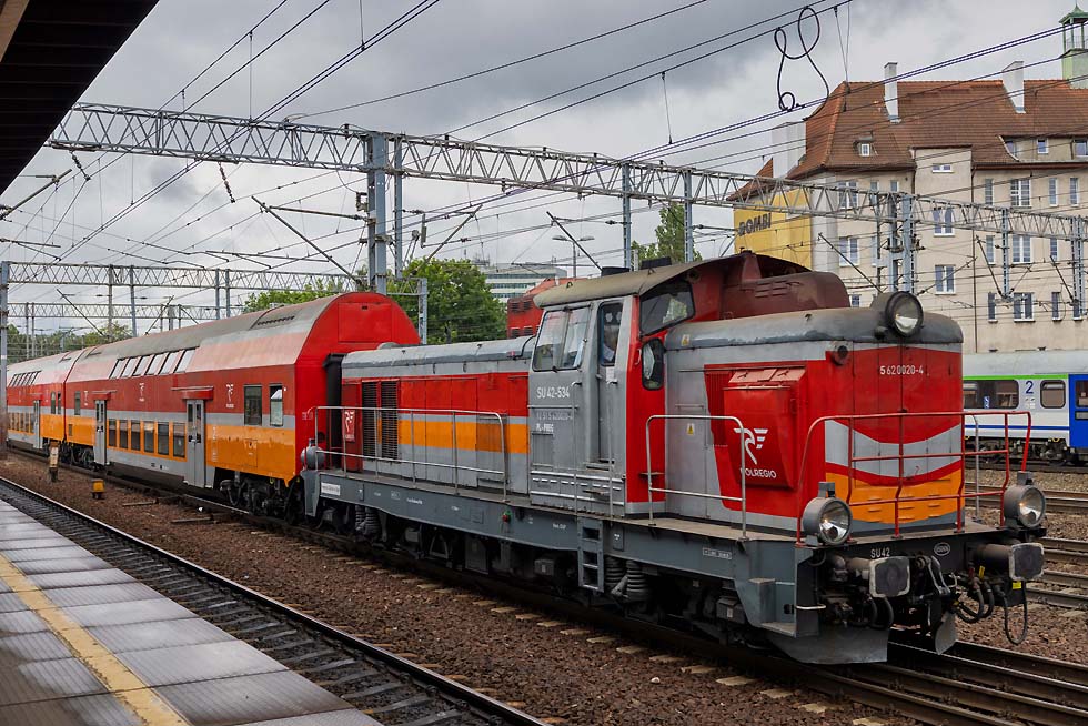 ![]() Während des Wartens auf den EC nach Gdansk schob in Berlin-Gesundbrunnen 112 112 den RE3 nach Falkenberg/Elster.05.07.2022. ![]() EU160-018 mit IC nach Gdynia in Gdansk-Glowny. Das Empfangsgebäude in preussischer Architektur wird saniert und die einzelnen Bereiche neu gestaltet. Die Bahnsteige mit den Lampen und Überdachungen passen dazu. 06.07.2022. ![]() EIP (Express-Intercity-Premium) von Gdynia nach Krakow fährt in Gdansk-Glowny ein am 06.07.2022. ![]() 5 170 132 von RCP für Lotos mit einem der zahlreichen Containerzüge zu den Häfen Gdansk und Gdynia in Pruszcz Gdanski am 06.07.2022. ![]() EP09-018 mit IC durch Pruszcz Gdanski Richtung Bydgoszcz am 06.07.2022. ![]() 3 160 460 Dragon2 von Lotos mit einem der zahlreichen Kesselwagenzüge von Gdansk Port Richtung Süden durch Rozyny, 06.07.2022. ![]() 5 370 045 von DBSRPL mit Container nach Gdansk-Port am 06.07.2022 durch Rozyny.. Es war mir vergönnt, eine weitere Werbe-Vectron zu erhaschen. ![]() EU07-1520 mit Container nach Süden durch Rozyny am 06.07.2022. ![]() EP07-411 mit IC begegnet EN57-678rb in Rozyny am 06.07.2022. ![]() 186 246 PCC mit täglicher Leistung nach Gdansk-Port am 06.07.2022 durch Rozyny. ![]() 181 081 CargoUnit begegnet EP07-1035 und IC in Rozyny am 06.07.2022. ![]() E6ACTa-014 für CiechCargo mit schönem Kalk-Silowagenzug durch Rozyny nach Gdansk-Port am 06.07.2022. ![]() EP07-401 mit IC von Gdynia nach Olsztyn am 06.07.2022 durch Rozyny. ![]() 183 014 mit einer SU42 und Ea-Wagenzug von den Häfen Richtung Süden durch Rozyny am 06.07.2022. ![]() EN57-1395rb im Nahverkehr nach Tczew und Elblag unterwegs durch Rozyny am 06.07.2022. ![]() E6ACTa-005 mit Kesselwagenzug nach Gdansk-Port durch Rozyny am 06.07.2022. ![]() EN71-006 in alter Preg-Farbgebung nach Malbork am 06.07.2022 durch Rozyny. ![]() EP08-046 in dieser Farbgebung der 90-iger Jahre ein Einzelstück mit IC nach Gdynia durch Rozyny am 06.07.2022. ![]() Die S-Bahnen der Linie S1 fahren von Wejherowo nach Gdansk.Srodmiescie, hier EN57 AKM-1693ra in Gdansk-Glowny am 07.07.2022. ![]() Was mich erstaunte, waren die zahlreichen ZSSKC und CDC-Loks, die bis an die polnische Ostseeküste unterwegs waren, hier die ZSSKC-Doppellok 131 068+067 mit Leerkohle durch Gdansk-Glowny Richtung Süden am 07.07.2022. ![]() Bei einem Ausflug nach Malbork kam beim Warten auf den Nahverkehr die 233 970 von Oxar Rail Rent mit leeren Kohlenwagen nach Tczew durch Malbork am 07.07.2022. ![]() 232 446 von ECCO-Rail-PL mit einer Art Innofreight-Containern kam von Olsztyn durch Rozyny nach Gdynia-Port am 07.07.2022. ![]() 5 170 001 von KM mit Desto-Garnitur durch Rozyny Richtung Poznan. Laut einer Meldung sind das Testfahrten für einen Betrieb auf der Verbindung von Gdynia nach Krakow. 07.07.2022. ![]() 3 160 414 mit 182 128 und Kesselwagenzug nach Gdansk-Port durch Rozyny am 07.07.2022. ![]() SM42-401 durch Rozyny Richtung Gdansk am 07.07.2022. ![]() 3 650 022 Tram-Diesel mit Kesselwagenzug nach Gdansk-Port am 07.07.2022 durch Rozyny. ![]() Eine weitere tschechische Lok war 163 035 mit einigen Schadwagen durch Rozyny Richtung Süden am 07.07.2022. ![]() Die Zugvielfalt von Gdynia nach Hél: SU42-534 von Elblag nach Hél mit Görlitzer Dosto bei der Einfahrt in Gdynia-Glowna am 08.07.2022. ![]() 2 720 076 mit Fahrradwagen rangiert in Gdynia-Glowna am 08.07.2022. ![]() 2 720 063 ist von Hél in Gdynia -Glowna eingefahren am 08.07.2022. ![]() 2 720 058 mit Fahrrad-Halberstädter und weiterer Garnitur fährt nach Hél in Gdynia-Glowna aus am 08.07.2022. ![]() Eine weitere Garnitur von/nach Hél ist SA133-027 mit Fahrradwegen und weiterer SA133-Garnitur bei der Einfahrt Gdynia-Glowna am 08.07.2022. ![]() EN57AL-1464rb von Hél nach Elblag fährt in Gdynia-Glowna ein am 08.07.2022. ![]() Der Starzug ist natürlich TLK 2551 von Warschau nach Hél. 754 025 mit PKP-IC fährt in Gdynia-Glowna nach Hél am 08.07.2022 aus. ![]() Und nochmal die schöne Garnitur von Preg mit SU42-534 und vier Görlitzer Dosto, dazwischen ein Halberstädter als Fahrradwagen abfahrbereit in Gdynia-Glowna am 08.07.2022. Text und Bilder: Andreas Pusch |