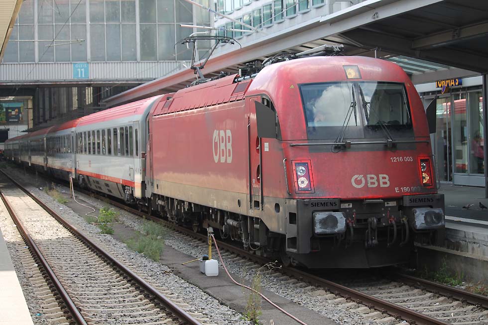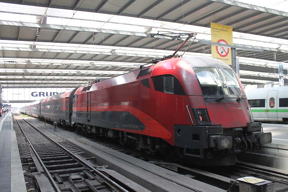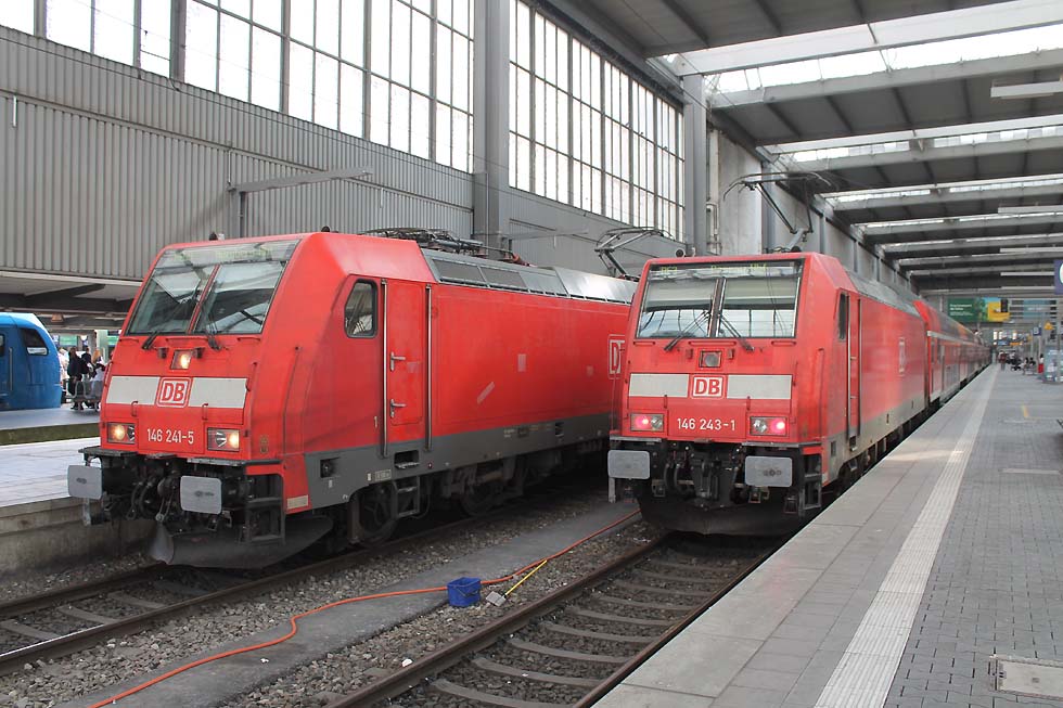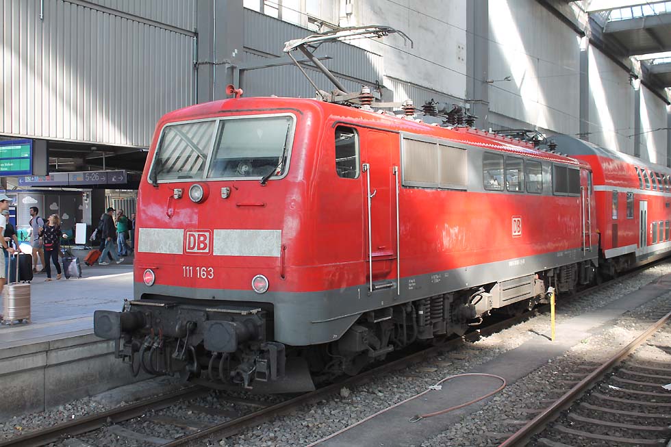![]() In München Ost war am 29.08.2022 die Smartrail 111 057-6 auf Gleis 577 abgestellt und wartet nun auf die nächste Zugleistung. ![]() Auch die Doppelstockwagen der Südostbayernbahn werden in der Abstellung von München Ost abgestellt oder warten auf die nächste Bereitstellung. Am 29.08.2022 war D-DB 5080 86-75083-5 DBpbzfa in München Ost abgestellt. ![]() Auch die Fernverkehrszüge kommen mehrmals nach München Hbf und verlassen die Landshauptstadt nach einem kleinen Aufenthalt wieder sowie am 29.August.2022 der ICE mit dem Deutschlandzierstreifen ![]() Mehrmals am Tag kommen die Mehrsystem Lokomotiven der Baureihe 1216 mit ihren EC mehrmals nach München und wenden dort. Am 29.08.2022 wartet 1216 003-4 auf die Ausfahrt. ![]() 111 110-3 hatte am 29.08.2022 eine Regionalbahn 16 nach München Hbf geschoben und wird in wenigen Minuten zurück nach Ingolstadt fahren. ![]() Das sieht man auch nicht alle Tage in München Hbf das sich gleich zwei Drehstromlokomotiven der Baureihe 146 sich treffen. Am Montag des 29.08.2022 hatte 146 241-5 ihren RE 4856 nach Nürnberg Hbf bespannt und 146 243-1 hatte ebenso einen Regionalexpress 4065 aus Wörth an der Isar in die Landeshauptstadt von München gebracht. Da es bis zum 29.08.2022 Gleisbauarbeiten waren zwischen Plattling und Wörth wendeten die Regionalzüge aus München Hbf in Wörth an der Isar. ![]() Auf Gleis 25 wartet nun 146 243-1 auf die Rückfahrt nach Wörth an die Isar. ![]() Am 29.08.2022 hatte die Nürnberger 146 232-4 mit ihrem RE 4857 Einfahrt in den Starnberger Flügelbahnhof und wartet nun auf die Rückfahrt nach Nürnberg Hbf mit ihrem RE 4858 ![]() In wenigen Minuten wird dieser Railjet die Landeshauptstadt München verlassen. ![]() Am 29.08.2022 war 111 121-0 aus Dortmund zu Gast in München Hbf und wartet nun mit einer Reserve Garnitur auf die nächsten Einsätze. ![]() Fertig aufgerüstet wartet nun 111 057-6 in München Ost auf die Lz Fahrt nach Passau um dort einen leeren Holzzug abzuholen der weiter nach Marburg gebracht wurde. ![]() Die nun seit einiger Zeit bei der Smartrail im Betrieb stehende 111 057-6 erhielt bei der Deutschen Bundesbahn am 01. April.1976 ihre Abnahme und wurde dem Betriebshof München zugeteilt. Ihre mechanische Ausstattung hatte sie von der Firma Henschel & und Sohn in Kassel erhalten. 18 Jahre war sie in München beheimatet bevor sie nach Frankfurt am Main 1 umbeheimatet wurde. Doch nach kurzer Zeit in Frankfurt kehrte sie am 09.06.2001 wieder zurück in die Landeshauptstadt von München. Nürnberg West erhielt die Lokomotive am 09.12.2007 und war dort bis zum Großen Fahrplanwechsel der am 13.12.2014 stattfind zuhause. Mit der Indienstellung neueren Fahrzeugen gab man die 111 057 nach München zurück wo sie bis zu ihrer Ausmusterung beheimatet war. Ihre Ausmusterung erfolgte bei der Deutschen Bahnb am 16.04.2018. Doch schonbald wurde sie wieder Reaktiviert und fand einen neuen Eigentümer. Das neu gegründete Eisenbahnunternehmen Smartrail das ihren Sitz in München hat erwarb diese Lok und spendierte ihr einen neuen Lack. Seit Juni.2021 ist 111 057-6 im purpurrot/beige zustand unterwegs. ![]() 212 097-0 ist nun bei der Bahnbaugruppe im aktiven Dienst und rangierte am 29.08.2022 in München Ost zu ihrem neuen Aufgaben. ![]() 111 057-6 verlässt am 29.08.2022 den Bahnhof von München Ost um als Lz nach Passau Hbf zu fahren. Dort wartet ein leerer Holzzug auf Sie der nach Marburg gebracht werden muss. ![]() Auf nach Passau Hbf um die leeren Holzwagen nach Marburg zu holen. ![]() Auch die Baureihe 218 der Südostbayernbahn kommen mehrmals nach München Hbf. Am Montag des 29.08.2022 hatte die Mühldofer 218 426-5 einfahrt mit ihrer Regionalbahn 27031 in den Münchner Ost Bahnhof. ![]() Dass die Fernverkehrs 101 107-1 nun in den Überführungsverkehr degradiert worden ist kein Zufall. Viele Maschinen dieser Baureihe 101 haben ihr Leben bei der Firma Bender verloren oder werden nur noch zu PbZ (Personenzug für besondere Zwecke) eingesetzt. Am 29.08.2022 überführte 101 107-1 zwei Doppelstockagen und einen Steuerwagen vermutlich in ein Ausbesserungswerk oder in ein anderes Bundesland. ![]() Hier verlassen die beiden Doppelstockwagen und der Steuerwagen den Bahnbof München Ost. ![]() Am frühen Nachmittag hatte ein Güterzug mit der 193 582-4 Durchfahrt durch den Bahnhof von München Ost. ![]() Ein VT 628 der Südostbayernbahn rangiert in München Ost. ![]() Am 29.08.2022 waren in München Ost der VT 628 686-7, 628 483-9 628 575-2 und der 628 426-8 von der Südostbayernbahn in der Abstellung abgestellt. ![]() Am späten Nachmittag wurde der Blaue Bahnlandbayern Steuerwagen für die Regionalbahn nach Simbach am Inn nach München Hbf bereitgestellt. Diese Bereitstellung erfolgt unter einer Leerzugfahrt bis zum Münchner Hbf. Von dort an verkehrt er als Regionalexpress 27001 nach Simbach am Inn. ![]() 218 425-7 wird ihren RE 27001 dann von München Hbf nach Simbach am Inn ziehen und verlässt München Ost. ![]() Auch diese Triebwagen der Baureihe 628 kommen zweimal oder mehrmals nach München Hbf. Am 29.08.2022 hatten 628 584-4 und 628 618-0 die Regionalbahn 27035 nach Mühldorf. ![]() Die beiden Mühldorfer 628 584-4 und 628 618-0 verlassen nun München Ost in Richtung Markt Schwaben. ![]() Im München-Pasing hatte 294 661-4 einen kleinen Aufenthalt vor einem Rot zeigenden Signal. ![]() Ein Elektrotriebwagen der Baureihe 420 462-4 verlässt mit der S 20 nach Grefrath den München-Pasinger Bahnhof. ![]() Auch nach Höllriegelskreuth werden diese ET Triebwagen der Baureihe 420 täglich eingesetzt. Am 29.08.2022 hatte ET 420 431 und 420 463 einfahrt in den Bahnhof von München-Pasing. ![]() Am 29.08.2022 hatten 111 194-7 und 111 188-9 ihren Regionalexpress 4862 für die Reisenden nach Regensburg auf Gleis 24 bereitgestellt. ![]() 111 188-9 wird in wenigen Minuten den Münchner Hbf in Richtung Regensburg verlassen. ![]() 111 163-2 hatte ihren RE 4082 nach Passau Hbf bespannt. Da es aber zwischen Platt