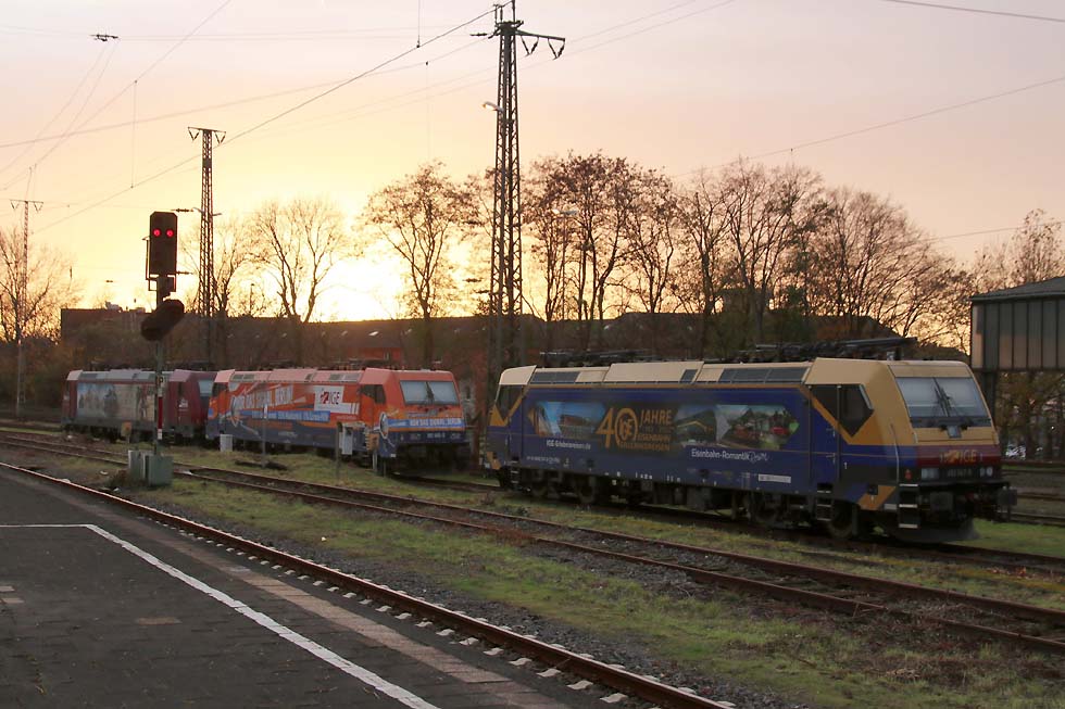 ![]() 26.11.22 Dortmund Hbf: 147 579 mit IC 2332 + 147 567 mit IC 2329 ![]() 26.11.22 Dortmund Hbf: 3429 014 ![]() 26.11.22 Wanne-Eickel Hbf: 189 080 - 152 153 -187 186 ![]() 26.11.22 Wanne-Eickel Hbf: 152 131 - 152 072 - 152 153, links 189 080 ![]() 26.11.22 Wanne-Eickel Hbf: 482 047- 185 665 - 482 046 ![]() 26.11.22 Wanne-Eickel Hbf: 482 047 ![]() 26.11.22 Wanne-Eickel Hbf: 275 904 mit einen EAOS Ganzzug ![]() 27.11.22 Düsseldorf, Vennhauser Allee: Auch in dieser E-Story etwas zur Straßenbahn. Heute zum neusten Stadbahnwagen der Rheinbahn Düsseldorf, dem Flexity HF6 HF6 (Hochflur, 6 Achsen) von Bombardier. Bestellt wurden 42 Fahrzeuge in 2017. Der erste HF6 traf im Juli 2018 in Düsseldorf ein. Statt der geplanten schnellen Inbetriebnahme gab es immer wieder Verzögerungen. Neben Problemen mit der der Abnahme und der Zulassung gab Verzögerungen mit der Serienfertigung und Qualitätsmängel, worauf die Auslieferung temporär gestoppt wurde. Letztendlich erfolgte die Inbetriebnahme am 30.05.22. Tw 4311 + 4302, links Tw 2010 auf der Straßenbahnlinie 705. Man beachte den Größenunterschied zwischen Straßenbahn- und U-Bahnfahrzeug. ![]() 27.11.22 Neuss Hbf: 423 252 + 423 250 auf der S 11 ![]() 27.11.22 Neuss Hbf: 609 117 trifft 609 116 auf der S28. Was ist für einen (Ober) Bayer Höchststrafe? Die Versetzung ins Rheinland! ![]() 27.11.22 Neuss Hbf: 1440 306 + 1440 321 ![]() 28.11.22 Krefeld Hbf: 187 012 - 186 264 ![]() 28.11.22 Krefeld Hbf: 193 999 ![]() 29.11.22 Duisburg Hbf: 275 007 mit einem Güterzug ![]() 29.11.22 Duisburg Hbf: 155 196, dahinter ![]() 29.11.22 Duisburg Hbf: 143 848 ![]() 29.11.22 Essen Hbf: 146 118 mit einem RE 2 ![]() 29.11.22 Essen Hbf: 3429 001 auf der S 9 ![]() 29.11.22 Essen Hbf: 462 044 + 462 069 als ein RE 6 ![]() 29.11.22 Essen Hbf: 422 020 auf Betriebsfahrt ![]() 29.11.22 Essen Hbf: 422 034 + 038 auf der S 1. Die aus Düsseldorf kommenden Züge der S 1 enden wegen Bauarbeiten in Essen Hbf. Bis Bochum wird in SEV gefahren. ![]() 29.11.22 Essen Hbf: MAN Lion`s City 18 G als SEV nach Bochum ![]() Allen Lesenden der E-Story wünsche ich eine besinnliche Adventszeit, frohe Weihnachten und ein gesundes neues Jahr. Die Zug Illumination steht auf dem Dortmunder Weihnachtsmarkt. Text und Bilder: Uwe Pfeiffer |