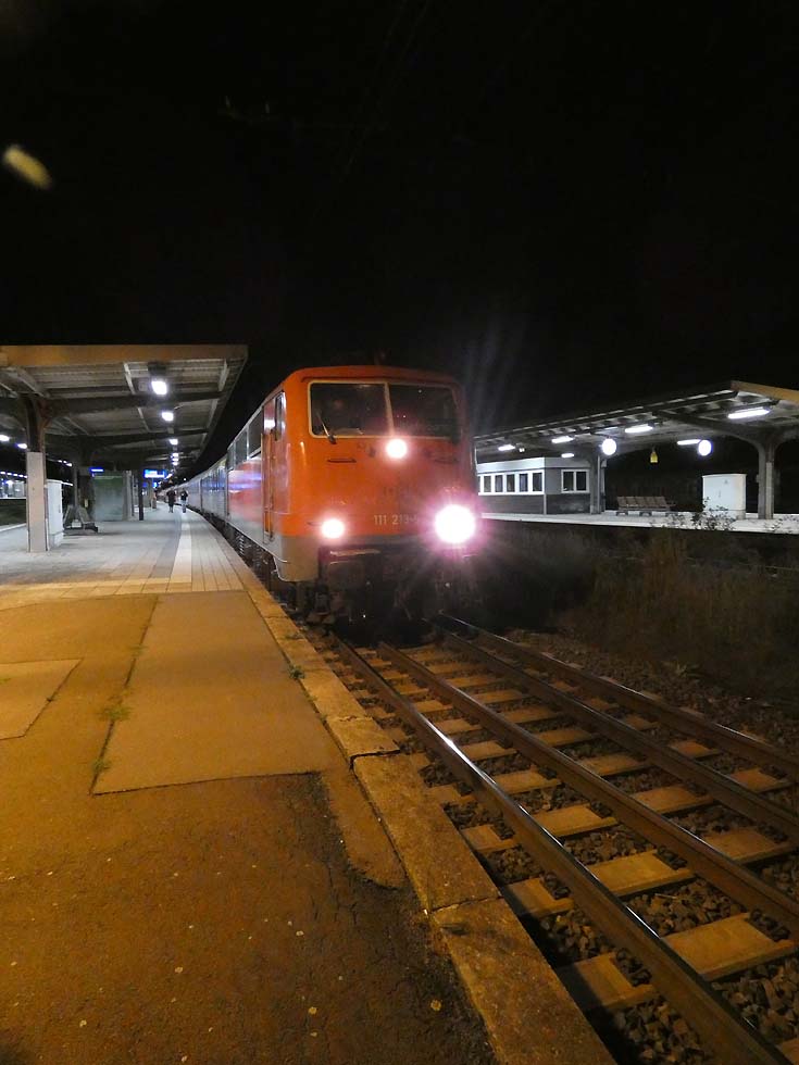 Letzten Sommer/ Herbst besuchten verschiedene 111 er Göttingen mit einem UEX nach Innsbruck oder Villach. ![]() Die 111 057-6 und die 111 223-4 (Smart Rail) waren am 24.06.22 als Doppeltraktion vor dem UEX nach Insbruck mit Halt in Göttingen. ![]() ?Am 23. ?September ?2022, ??23:21:06 hielt die 111 107-9 RBL mit dem UEX 1393 nach Insbruck in Göttingen. ![]() 111 057-6 mit 111 223-4 von Smart Rail waren als Doppeltraktion am 24.06.22 um 22:15 mit Zwischenhalt in Göttingen auf dem Weg nach Insbruck. ![]() Die 111 067-5 kahm als Mieten oder Kauf Lok am 08.07.22 um 22:17 Uhr zum Zwischenhalt mit dem UEX durch Göttingen. ![]() Die Doppeltraktion von 111 108-7 + 111 212-7 UEX war am 01.07.22 um 23:22 mit Zwischenstop in Göttingen. ![]() Und am ?8. ?Oktober ?2022 um ??17:39 fuhr die 111 108-7 mit dem UEX nach Villach durch Göttingen durch. ![]() 10.06.22 um 22:17 war der UEX mit der 111 212-7 Mieten oder Kauf. ![]() Auch die 111 213-5 schließt sich mit dem Besuch in Göttingen am 09.09.22 um 22:18 an. ![]() Die 111 223-4 Smart Rail war auch alleine mit dem UEX am 17.06.22 beim Halt in Göttingen. ![]() 111 226-7 war am 16.09.22 um 22:36 Uhr mit dem UEX nach Insbruck in Göttingen. ![]() 182 519-9 MRCE mit UEX fähhrt am 27. ?Mai ?2022 um ??23:00 Uhr durch, statt zu halten, da kein Fahrgast in Göttingen zusteigt, und der Zug Verspätung hat. Text und Bilder: Klaus Günther |