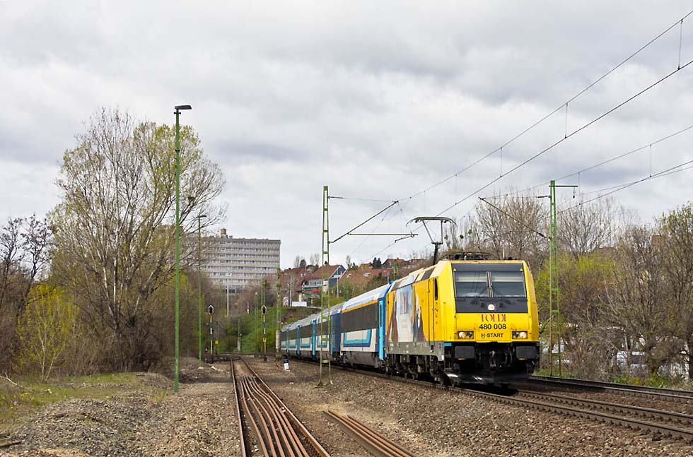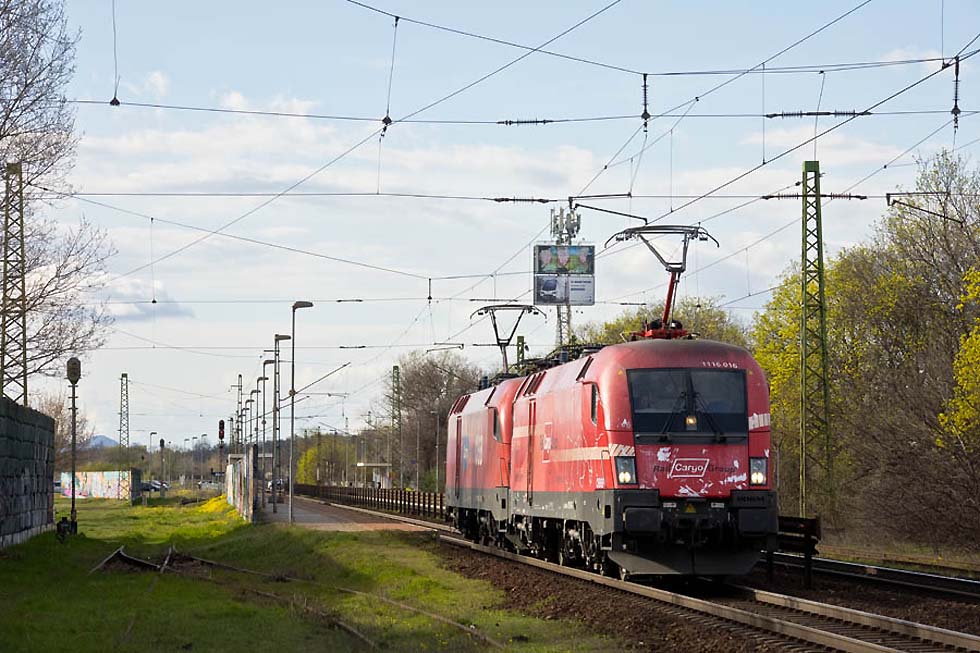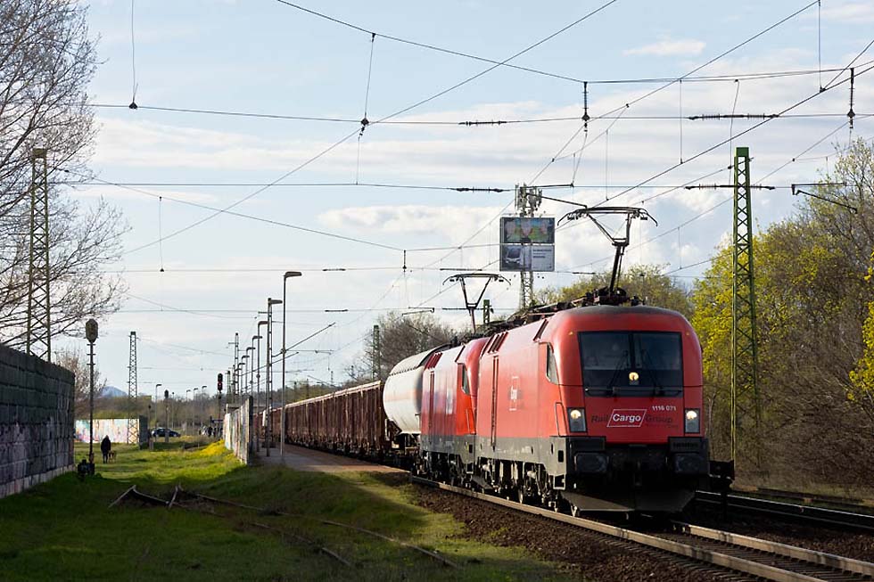 Nach langer Zeit ging es von 1.4 auf 2.4.2023 wieder in meine alte Heimat. An diesen Tagen wollte ich mich erneut um das Geschehen in der ungarischen Hauptstadt kümmern und starte aufgrund dessen zu einer sehr unchristlichen Zeit los. Aufgrund von privaten Umständen musste ich einen großen Umweg via Celldömölk fahren, doch auch am sehr frühen Morgen gab es dort etwas zu sehen: Eine Brotdose nebst einer remotorisierten M41 mit Klasse waren der „Hauptgewinn“, der Rest war unauffällig. Gespannt sein darf man auf den für Herbst ausserhalb von Celldömölk angekündigten Eisenbahnpark und dessen Exponate, dem Vernehmen nach ist auch eine Schmalspurbahn angedacht. ![]() 117 274 am 01.04.23 in Celldömölk ![]() 117 274 am 01.04.23 in Celldömölk ![]() 630 007 + 433 313 + 430 334 am 01.04.23 in Celldömölk ![]() 275 052 am 01.04.23 in Celldömölk ![]() 418 305 am 01.04.23 in Celldömölk ![]() Nun, anschliessend ging es zumnächsten Zwischenstopp weiter: Dort gibt es ein Stück der Wiener Straßenbahngeschichte zu sehen! Nach seiner Ausmusterung bei den Wiener Linien gelangte der E1 4724 nach Miskolc, wo er noch für viele Jahre gute Dienste geleistet hat. Als er aber auch dort überflüssig und nunmehr endgültig abgestellt wurde, gelangte er nunmehr in private Hände: Seiner B-Sektion und vieler weiteren Komponenten entledigt dient er dort als Verkaufslokal eines Imbissgeschäftes und wurde obendrein mit einem gewöhnungsbedürftigen Farbgebung versehen. Aber seht am Besten einfach mal selbst… 4724 184 am 01.04.23 in Bicske ![]() 4724 184 am 01.04.23 in Bicske ![]() Nachdem ich das Ziel erreichte und mich körperlich und seelisch gestärkt habe, ging es auch schon los: Im Vorbeifahren an der Straßenbahnremise Kelenföld nahm ich den dort beheimateten Messwagen 7476 der Budapester Straßenbahn wahr, welcher sich für eine Ausfahrt bereit machte. Das Auto bei der nächstbesten Gelegenheit eingeparkt, musste ich keine Minute bis zum Eintreffen des Triebwagens warten wobei der Fahrer sehr fotografenfreundlich (sprich extra langsam) an mir vorbei fuhr. 7476 am 01.04.23 in Budapest Karolina ut ![]() Gut gelaunt ging es also zum nächsten Stopp weiter, der stadtseitigen Ausfahrt von Budapest Kelenföld. Personennah- und fernverkehre unterschiedlichster Art wechseln sich mit verschiedenen Güterzügen ab wobei der Anteil an privaten Verkehren sehr hoch ist. Hier traf ich auf die Ludmilla 648 103, welche trotz ihres langsamen Tempos ein schönes Lüftergetöse und eine ordentliche Portion Feinstaub spendierte. Ebenso erfreulich war die 480 001 welche noch immer ihre Teilwerbung des berühmten ungarischen Fahrzeugkonstrukteurs Kálmán Kandó trägt. 1116 007 am 01.04.23 in Budapest Kelenföld ![]() 431 123 am 01.04.23 in Budapest Kelenföld ![]() 470 007 am 01.04.23 in Budapest Kelenföld ![]() 630 027 am 01.04.23 in Budapest Kelenföld ![]() 415 044 am 01.04.23 in Budapest Kelenföld ![]() 471 005 am 01.04.23 in Budapest Kelenföld ![]() 630 038 am 01.04.23 in Budapest Kelenföld ![]() 415 036 am 01.04.23 in Budapest Kelenföld ![]() 470 004 am 01.04.23 in Budapest Kelenföld ![]() 187 520 am 01.04.23 in Budapest Kelenföld ![]() 8090 707 + 1116 207 am 01.04.23 in Budapest Kelenföld ![]() 430 333 am 01.04.23 in Budapest Kelenföld ![]() 415 013 am 01.04.23 in Budapest Kelenföld ![]() 1116 118 am 01.04.23 in Budapest Kelenföld ![]() 1116 012 + 1116 011 am 01.04.23 in Budapest Kelenföld ![]() 1116 071 am 01.04.23 in Budapest Kelenföld ![]() 1116 257 am 01.04.23 in Budapest Kelenföld ![]() 415 036 am 01.04.23 in Budapest Kelenföld ![]() 470 504 am 01.04.23 in Budapest Kelenföld ![]() 648 103 am 01.04.23 in Budapest Kelenföld ![]() 415 006 am 01.04.23 in Budapest Kelenföld ![]() 8055 821 + 433 159 am 01.04.23 in Budapest Kelenföld ![]() 431 083 + 630 053 am 01.04.23 in Budapest Kelenföld ![]() 1116 072 am 01.04.23 in Budapest Kelenföld ![]() 1116 014 am 01.04.23 in Budapest Kelenföld ![]() 470 505 am 01.04.23 in Budapest Kelenföld ![]() 386 027 am 01.04.23 in Budapest Kelenföld ![]() 1116 129 am 01.04.23 in Budapest Kelenföld ![]() 480 001 am 01.04.23 in Budapest Kelenföld ![]() 1116 026 am 01.04.23 in Budapest Kelenföld ![]() 1116 022 am 01.04.23 in Budapest Ferihegy ![]() 415 025 am 01.04.23 in Budapest Kelenföld ![]() 480 008 am 01.04.23 in Budapest Kelenföld ![]() 415 117 + 415 035 am 01.04.23 in Budapest Kelenföld ![]() Die vierte und letzte Etappe an diesem Tag führte mich an den Stadtrand von Budapest. Nächst dem dortigen Flughafen gibt es einen auch für Autofahrer extrem einfach zu erreichenden Fotoplatz mit regem Verkehr und einen hohen Anteil an privaten Leistungen. So dauerte es auch nicht lange, bis es zu „rascheln“ begonnen hat: Die Nohab M61 020, eine 2068 der ÖBB (Fährt nun für die ungarische Tochterfirma Railcargo Hungaria) sowie der bunte Flirt 415 061 liessen das Fotografenherz höher schlagen! 431 274 am 01.04.23 in Budapest Ferihegy ![]() 815 020 am 01.04.23 in Budapest Ferihegy ![]() 415 061 am 01.04.23 in Budapest Ferihegy ![]() M61 020 am 01.04.23 in Budapest Ferihegy ![]() 240 033 am 01.04.23 in Budapest Ferihegy ![]() 630 055 am 01.04.23 in Budapest Ferihegy ![]() 193 697 am 01.04.23 in Budapest Ferihegy ![]() 1116 005 + 1116 019 am 01.04.23 in Budapest Ferihegy ![]() 431 372 am 01.04.23 in Budapest Ferihegy ![]() 630 014 am 01.04.23 in Budapest Ferihegy ![]() 815 024 am 01.04.23 in Budapest Ferihegy ![]() 415 061 am 01.04.23 in Budapest Ferihegy ![]() 431 126 am 01.04.23 in Budapest Ferihegy ![]() 240 134 am 01.04.23 in Budapest Ferihegy ![]() 431 135 am 01.04.23 in Budapest Ferihegy ![]() 630 032 + 431 129 am 01.04.23 in Budapest Ferihegy ![]() 386 026 am 01.04.23 in Budapest Ferihegy ![]() 630 043 am 01.04.23 in Budapest Ferihegy ![]() 602 001 am 01.04.23 in Budapest Ferihegy ![]() Erfreulich war auch die 431 010: Laut einem ungarischen Fotokollegen war die Lok nach einem Brandschaden zur Ausmusterung vorgesehen und wurde trotz