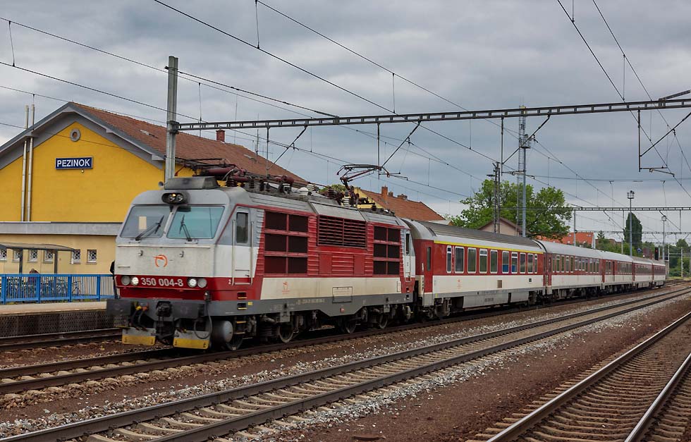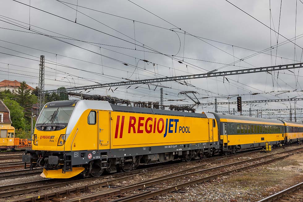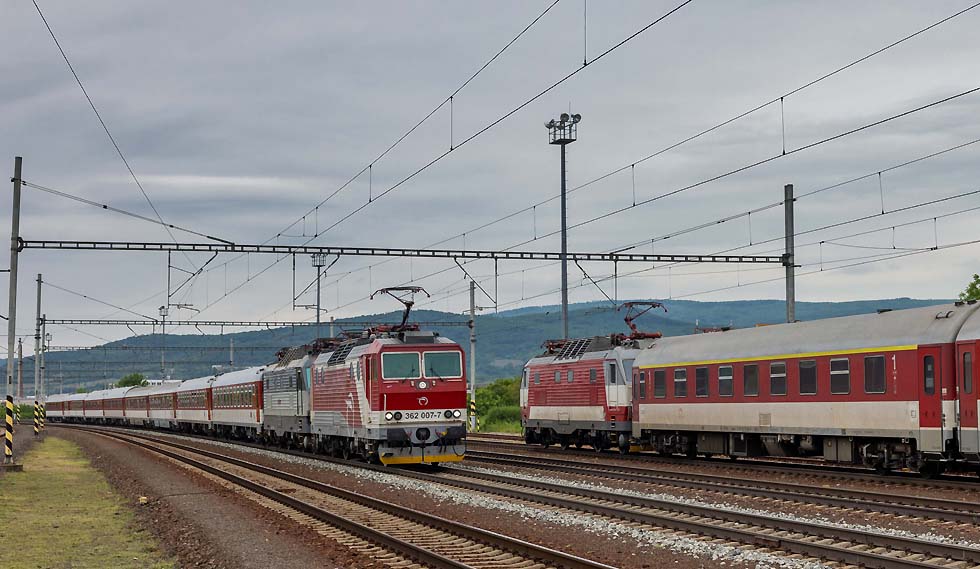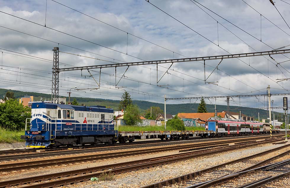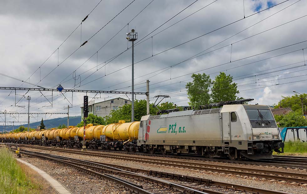 ![]() 162 020 und 380 001 bereiten sich auf neue Einsätze in Praha hlavni nadrazi vor am 16.05.2023. Wie ich aus Meldungen erfuhr, sind beide Baureihen wegen ETCS nicht nachrüstbar und werden wohl verkauft(?). Sie wissen da bestimmt mehr. ![]() In Bratislava angekommen bei miesem Wetter konnte ich 390 001, jetzt mit ZOS-Zvolen-Beklebung und Ea-Wagen Richtung Ungarn ablichten. Sie hatte ja ursprünglich Express-Rail-Beklebung gehabt. 16.05.2023, Bratislava hlavni stanica. ![]() Im Blockabstand folgte 230 024 CDC-Slovakia mit Duslo-Getreidewagen ebenfalls Richtung Ungarn. ![]() Am 17.05.2023 begab ich mich nach Sala, an der Trat 130 von Bratislava nach Nova Zamky und Sturovo: .380 001 mit EC-Metropolitan von Budapest nach Prag. ![]() 736 015 und Messwagen von Sprava Zeleznic Richtung Bratislava. ![]() 361 122 mit Rex von Banska Bystrica nach Bratislava. ![]() 710 606 steht vor altem Lokschuppen in Sala und ist noch betriebsfähig. ![]() 381 001 war mit Wendezuggarnitur von Bratislava nach Nove Zamky eingeteilt. ![]() Laminatka-Doppel mit 240 141 RTI und 240 xxx Budamar vor Gaskesselzug durch Sala am 17.05.2023 Richtung Bratislava. ![]() Und Retro-362 020 mit Rex von Banska Bystrica nach Bratislava. ![]() Schönes Laminatka-Doppel der ZSSK mit 240 031 und 240 128(?) mit Kesselwagenzug Richtung Ungarn durch Sala am 17.05.2023. ![]() 240 083 mit REX von Nove Zamky nach Bratislava am 17.05.2023 beim Halt in Sala. ![]() DBC 193 378 mit DBSRO-Zug nach Bratislava durch Sala am 17.05.2023. ![]() Am 18.05.2023 weilte ich u. a. in Kuty, wo ich Glück hatte mit den neuesten Budamar-Vectrons. 383 223 Krasna Horka rangiert in Kuty, um sich an den Walter-KLV mit 193 580 als Zuglok zu setzen. ![]() Seitenprofil 383 223 Krasna Horka ![]() Abfahrt der 383 223 Krasna Horka und 193 580 in Kuty mit dem Walter_KLV Richtung Bratislava-HU-CorticiRO. ![]() Abstecher nach Pezinok an der Trat 120 von Bratislava nach Zilina: 350 020 mit IC nach Kosice durch Pezinok am 18.05.2023. ![]() 350 004 mit Rychlik von Zilina nach Bratislava am 18.05. durch Pezinok. ![]() 362 007 musste der untauglichen 350 001 als Vorspannlok und IC nach Kosice aushelfen. Pezinok, 18.05.2023. ![]() Die Laminatkas sind einfach schöne Loks und ich freute mich, einige davon eingefangen zu haben: 230 024 mit neuen Duslo-Getreidewagen am 18.05.2023 durch Bratislava Richtung Ungarn. ![]() 240 033 von Lokotrain mit Schrottzug durch Bratislava Richtung Kuty am 18.05.2023. ![]() 388 217 mit RegioJetPool-Beklebung in Bratislava hl. st. am 18.05.2023 mit RJ nach Prag. ![]() 186 352 PSZ mit wunderschönen gelben Kesselwagen Richtung Zilina durch Bratislava-Raca am 19.05.2023. ![]() YOSAR 700 582 und T334 0785/ 710 785 abgestellt in Raca. ![]() YOSAR 700 582 und T334 0785/ 710 785 abgestellt in Raca. ![]() 240 116 LTB vor der kleinen Werkstatt in Raca, man führte kleine Reparaturen durch. ![]() 363 141 als Zuglok vor 240 126 und Stahlzug durch Bratislava-Raca Richtung Zilina am 19.05.2023. ![]() 742 046 mit Triebwagen-Mittelteil für JMK(Jiho Moravske Kraj) durch Bratislava-Raca nach Bratislava-Vychod. Die Triebzüge sind für die Region Brno bestimmt. Auf meiner Rückfahrt nach D standen in Brno-Kralove Pole einige abgestellt und einen hatte ich in Betrieb gesehen. ![]() 742 046 mit Triebwagen-Mittelteil für JMK(Jiho Moravske Kraj) durch Bratislava-Raca nach Bratislava-Vychod. Die Triebzüge sind für die Region Brno bestimmt. Auf meiner Rückfahrt nach D standen in Brno-Kralove Pole einige abgestellt und einen hatte ich in Betrieb gesehen. ![]() RTI 044 115 mit 193 725+742 xxx und leeren Autotransportwagen Richtung Zilina durch Bratislava-Raca am 19.05.2023. ![]() 757 019 mir Rychlik nach Bratislava hl. stan. durch Raca am 19.05.2023. ![]() 383 221 Bratislavsky Hrad leider mit Grafitty verunziert mit Walter-KLV durch Bratislava hl. stan. Leider wurde der Zug zugefahren, sodass nur ein Seitenbild möglich war. ![]() 193 215 ELL mit Petrol-Sped-Sticker Lz durch Bratislava hl. stan.19.05.2023. ![]() 210 017 mit 748 536 durch Bratislava hl. Stan. ![]() Paralleleinfahrt von 383 101 mit IC von Kosice und 383 062 Bratislava Hl. Stan. 19.05.2023. ![]() Am 20.05.2023 konnte ich beim Umsteigen in Praha hl. nad. 362 161 ablichten, die auf ihren nächsten Einsatz wartet. Text und Bilder: Andreas Pusch |